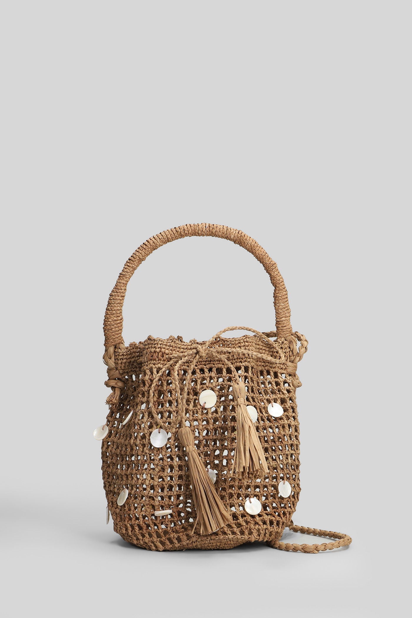 Shoulder bag in brown raffia