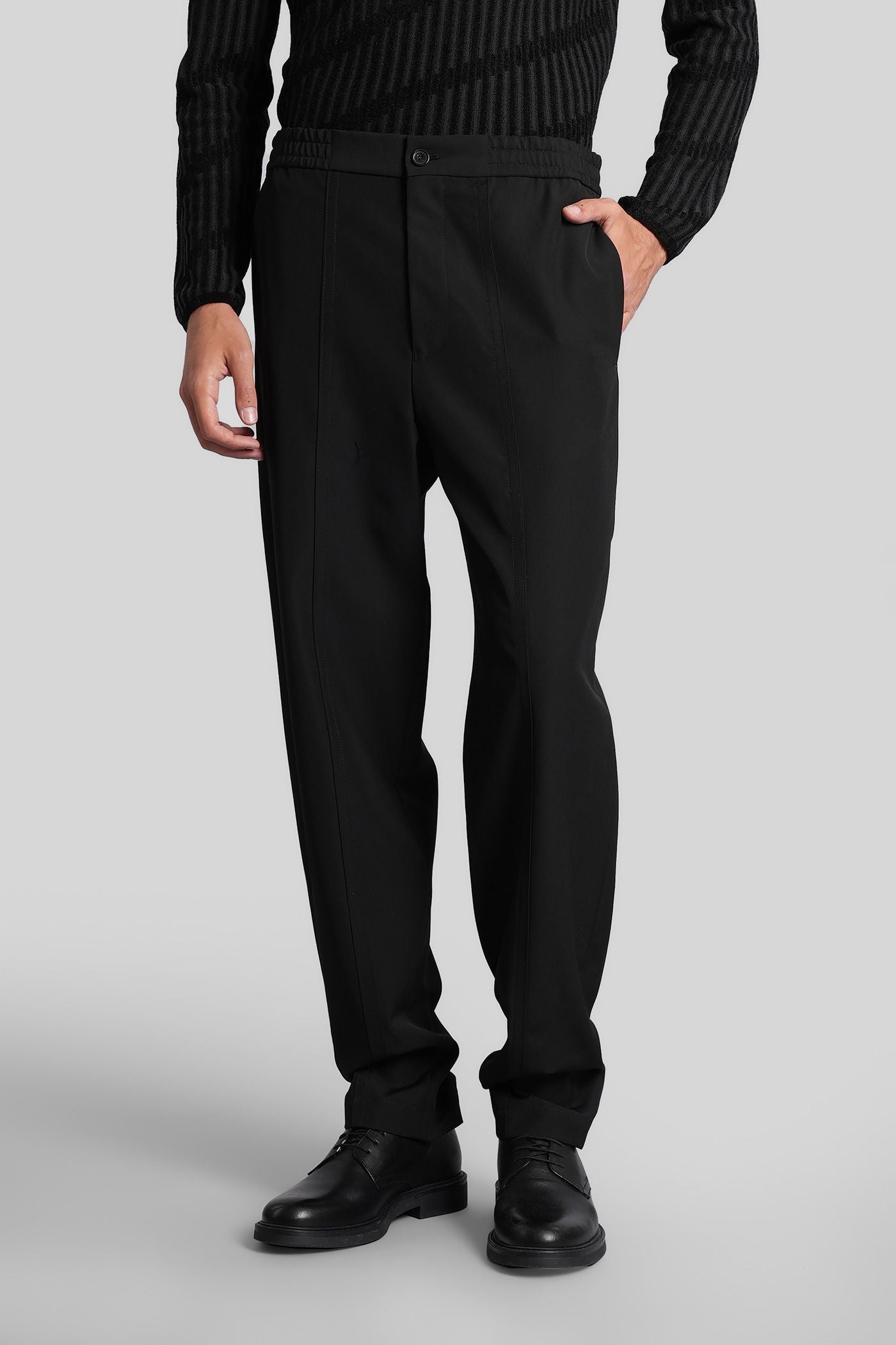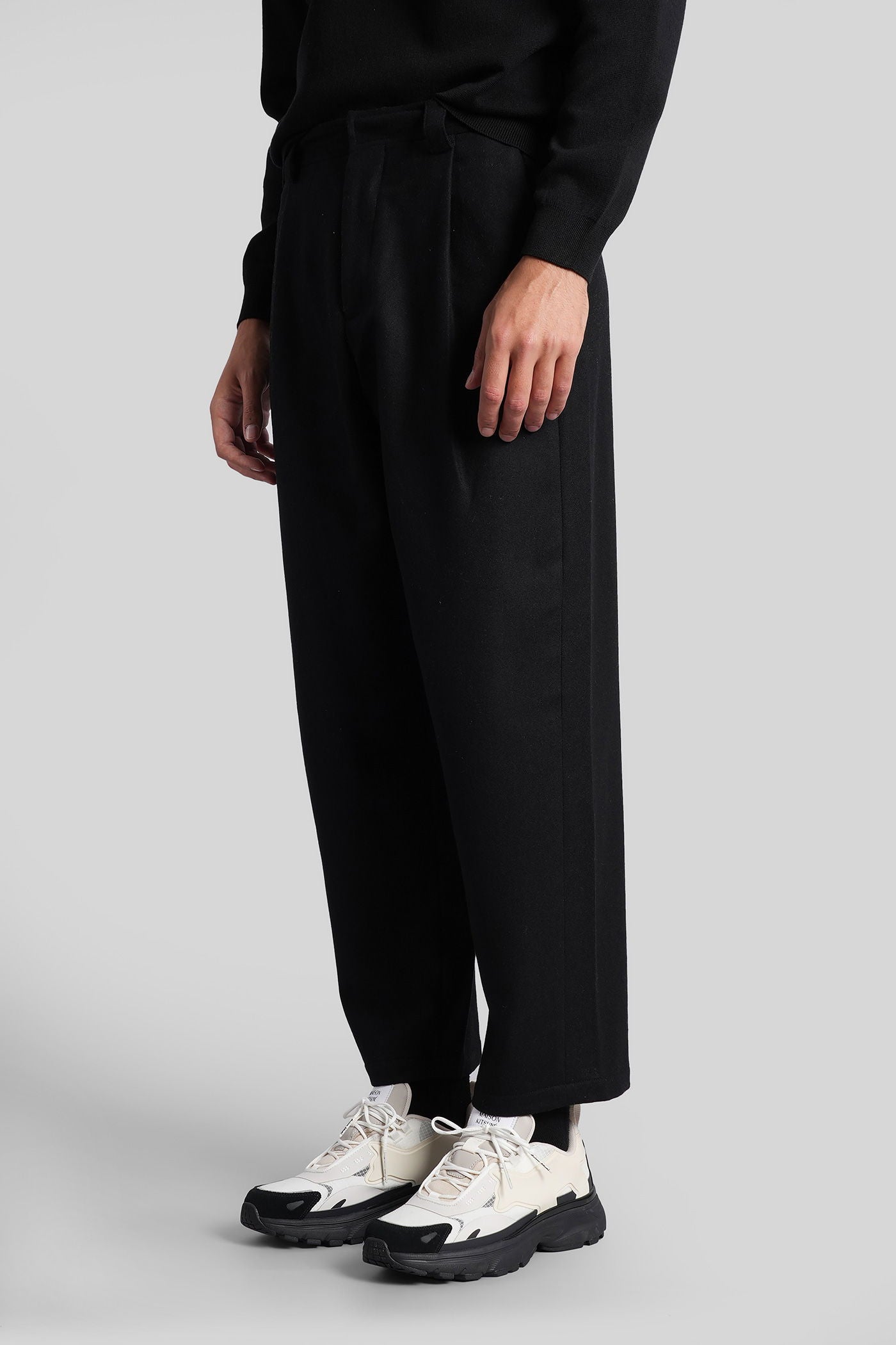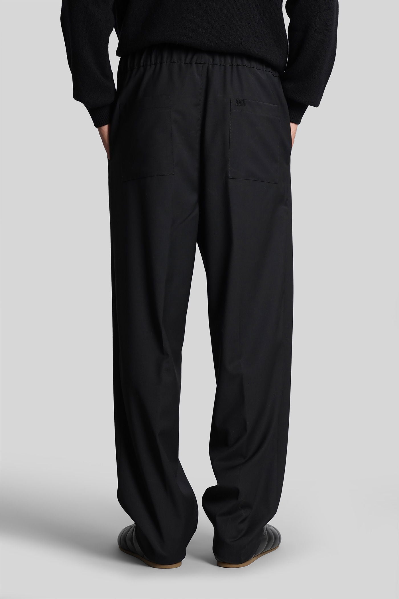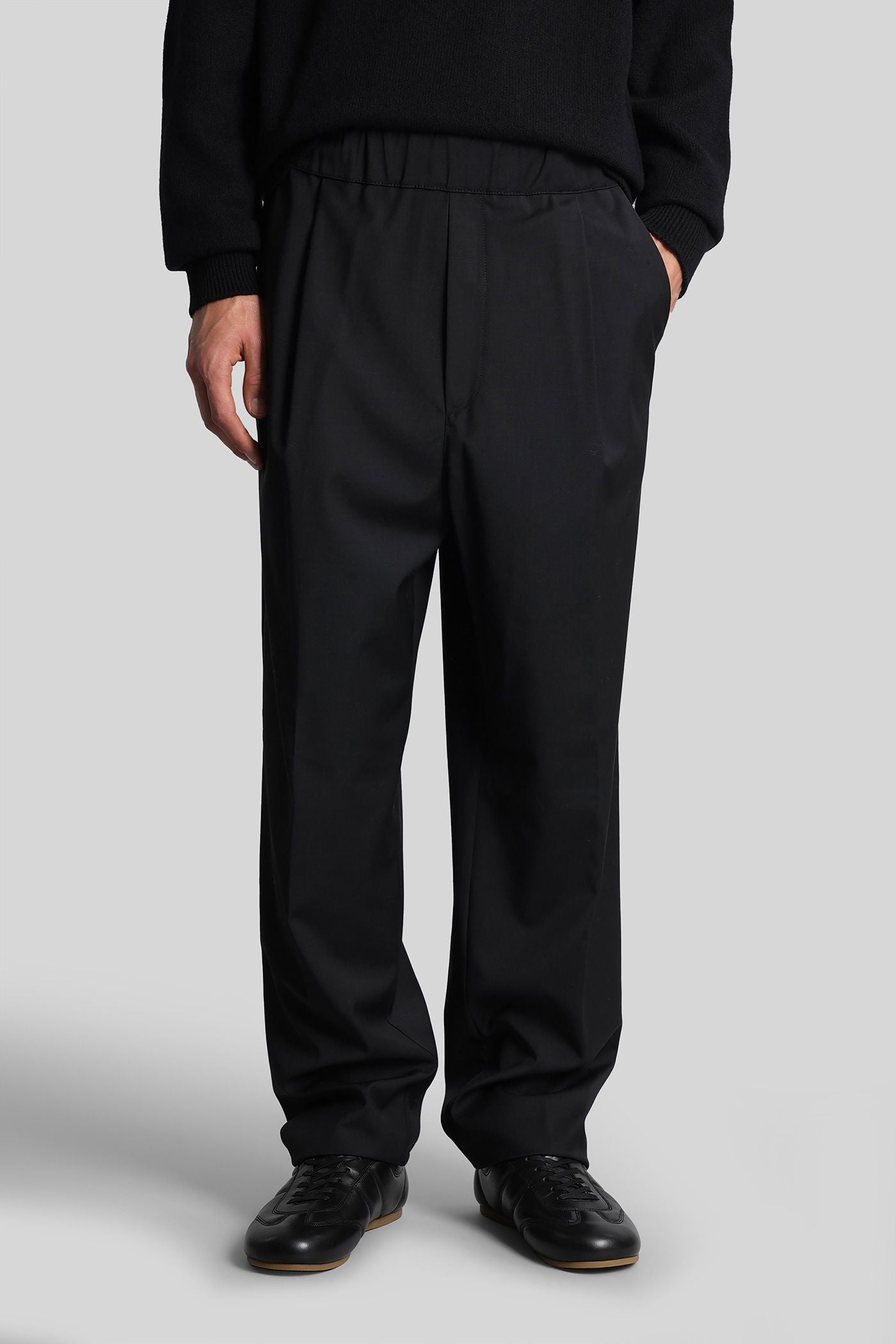Pants in black wool and polyester