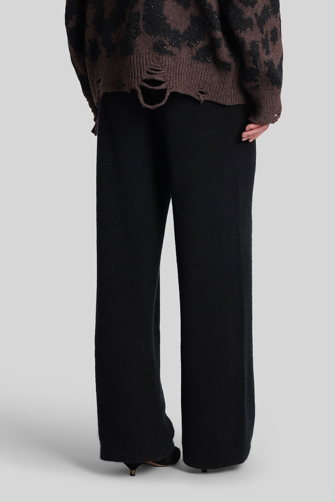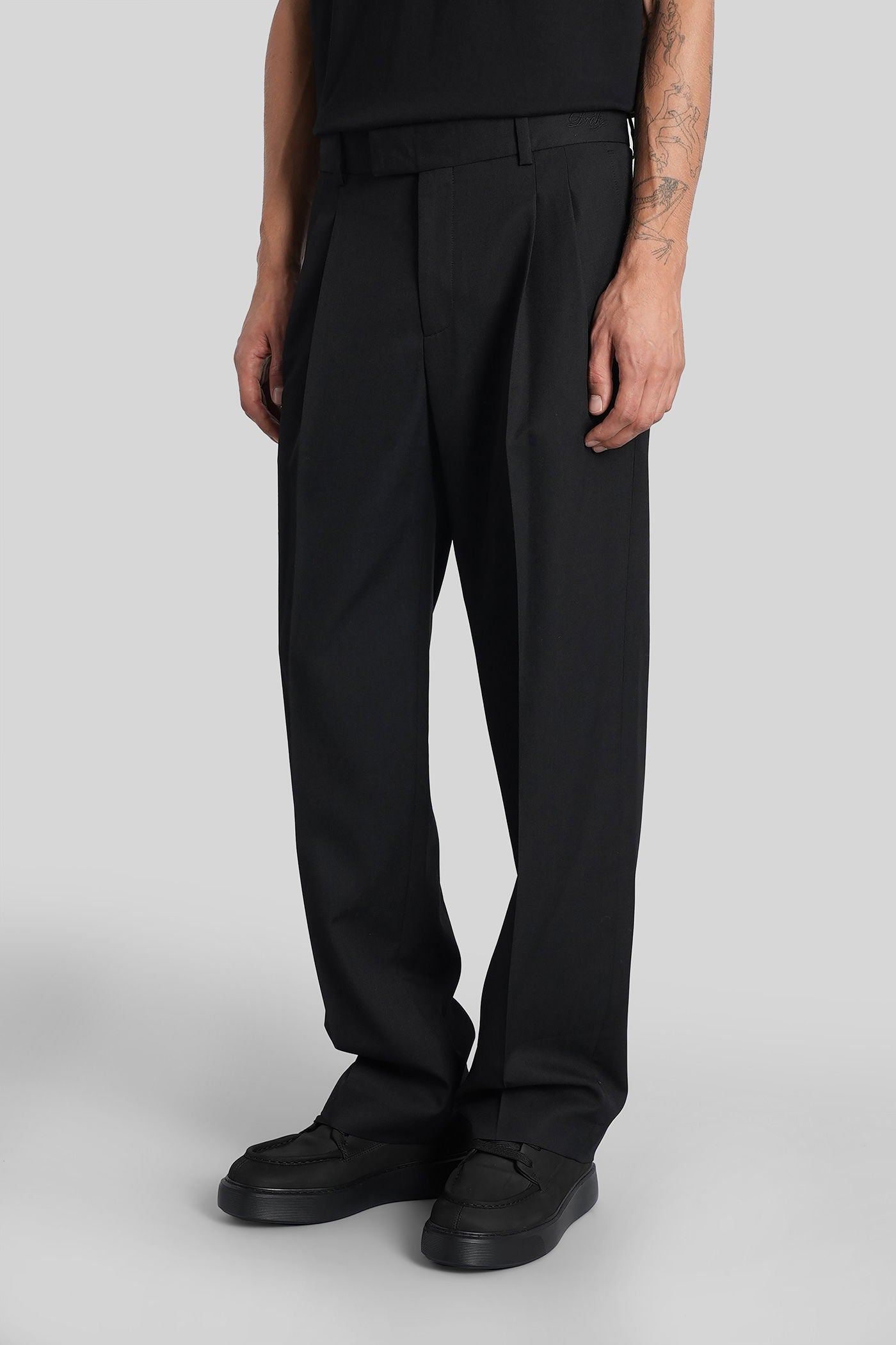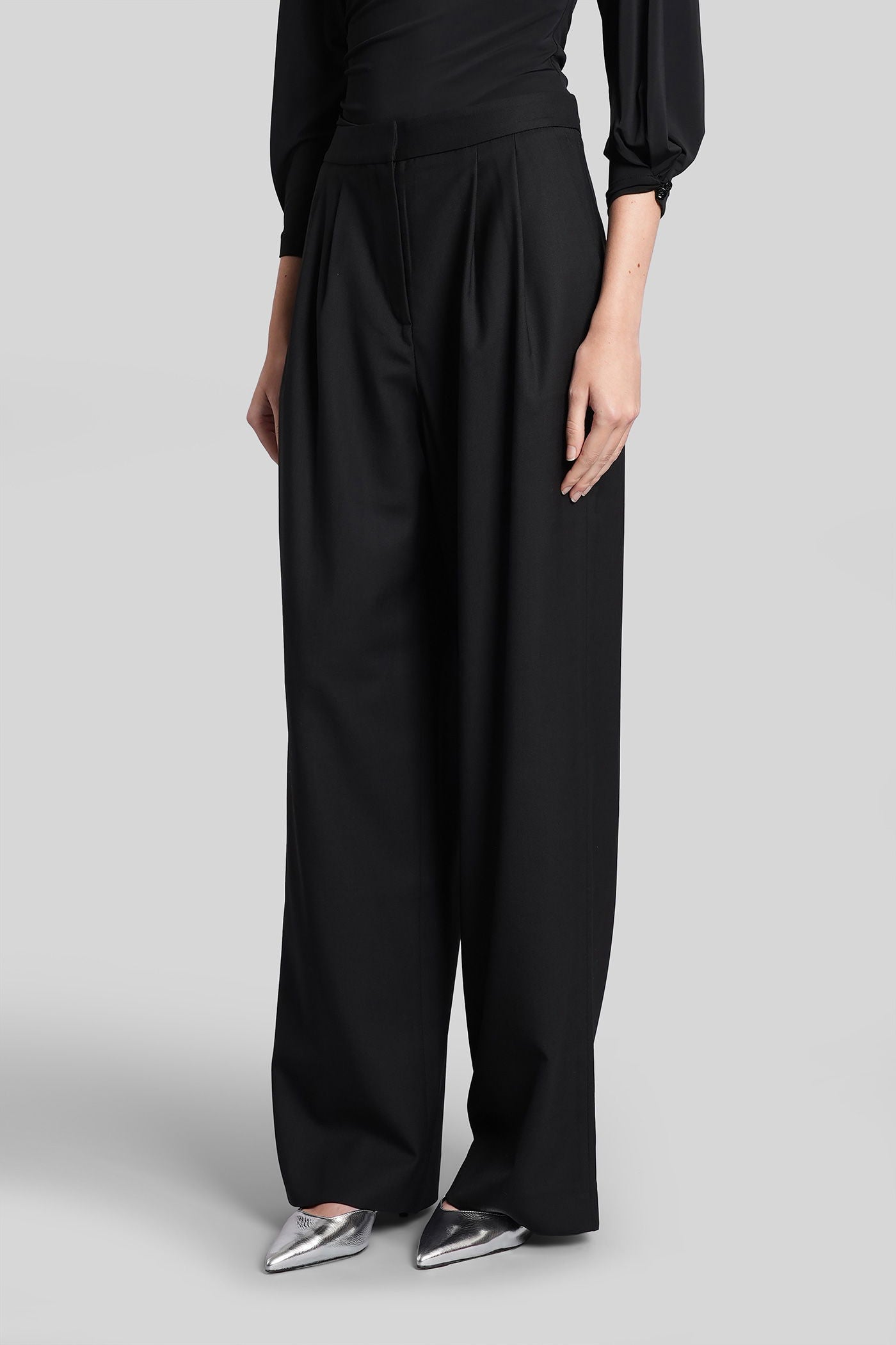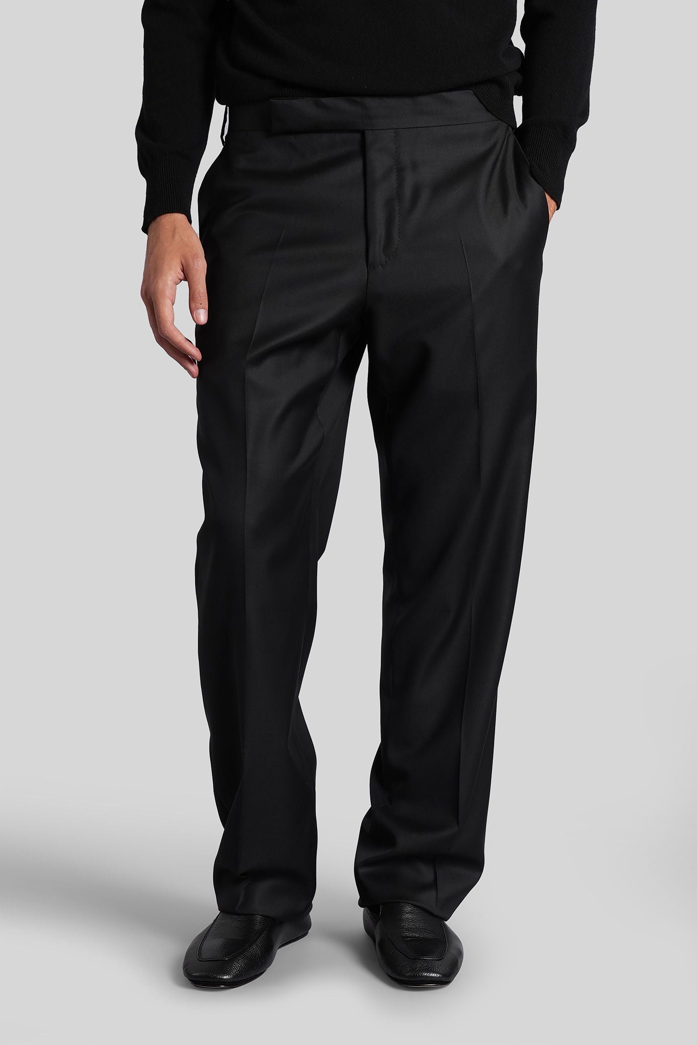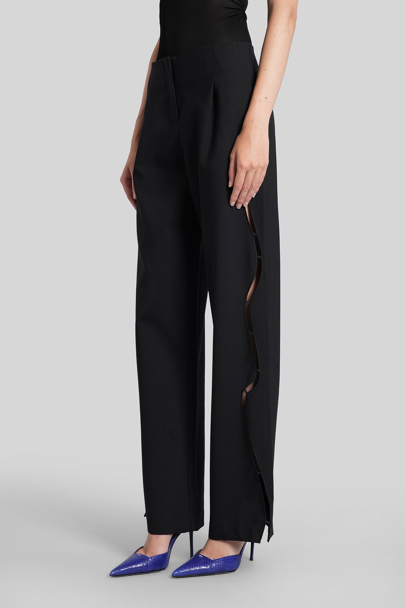 Pants in black wool and polyester