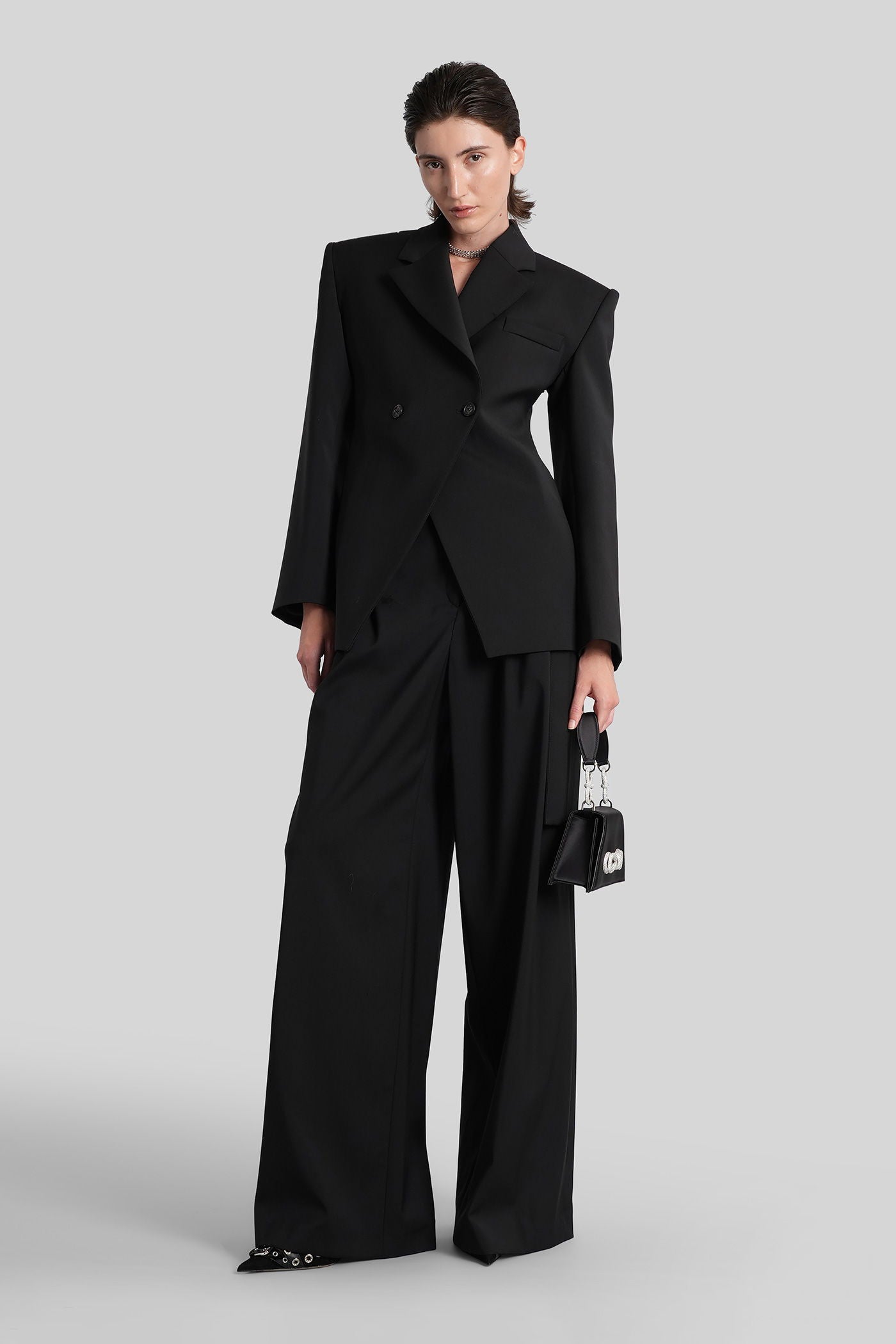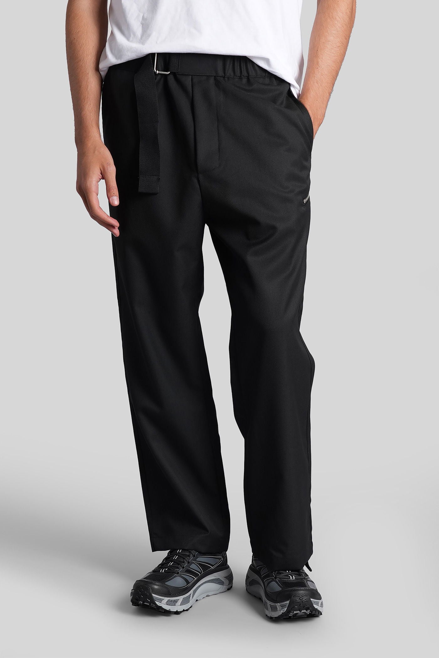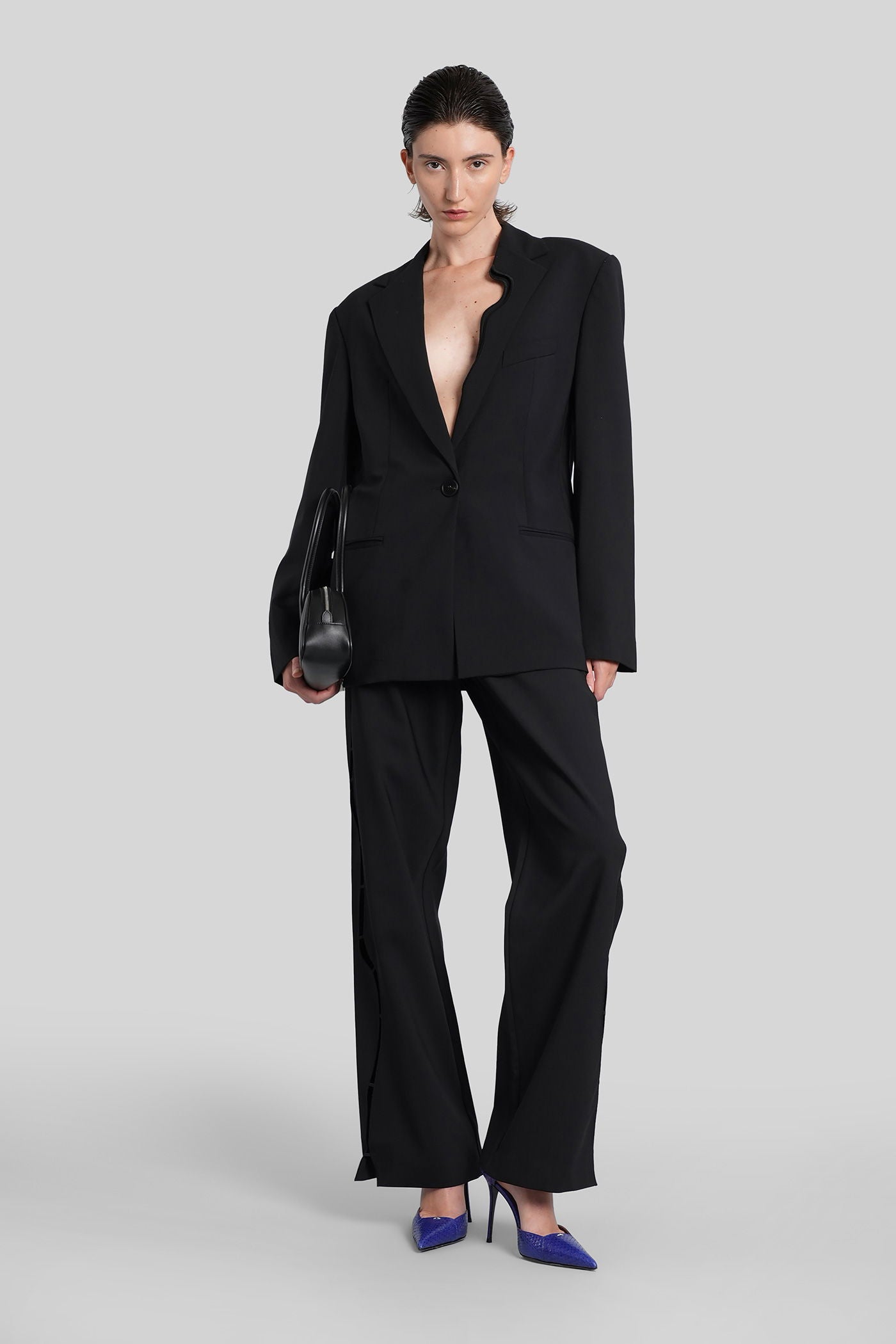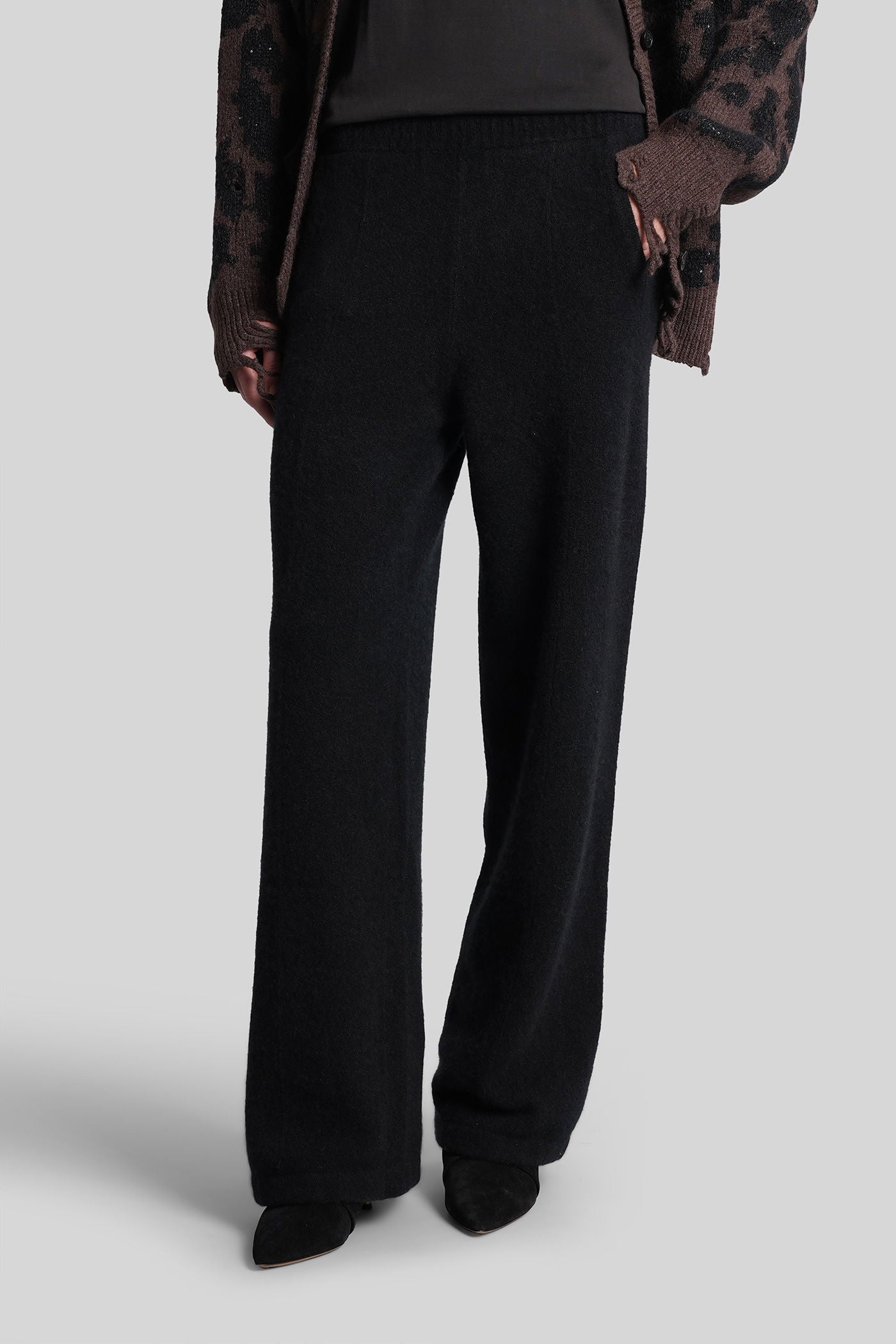 Pants in black wool and polyester