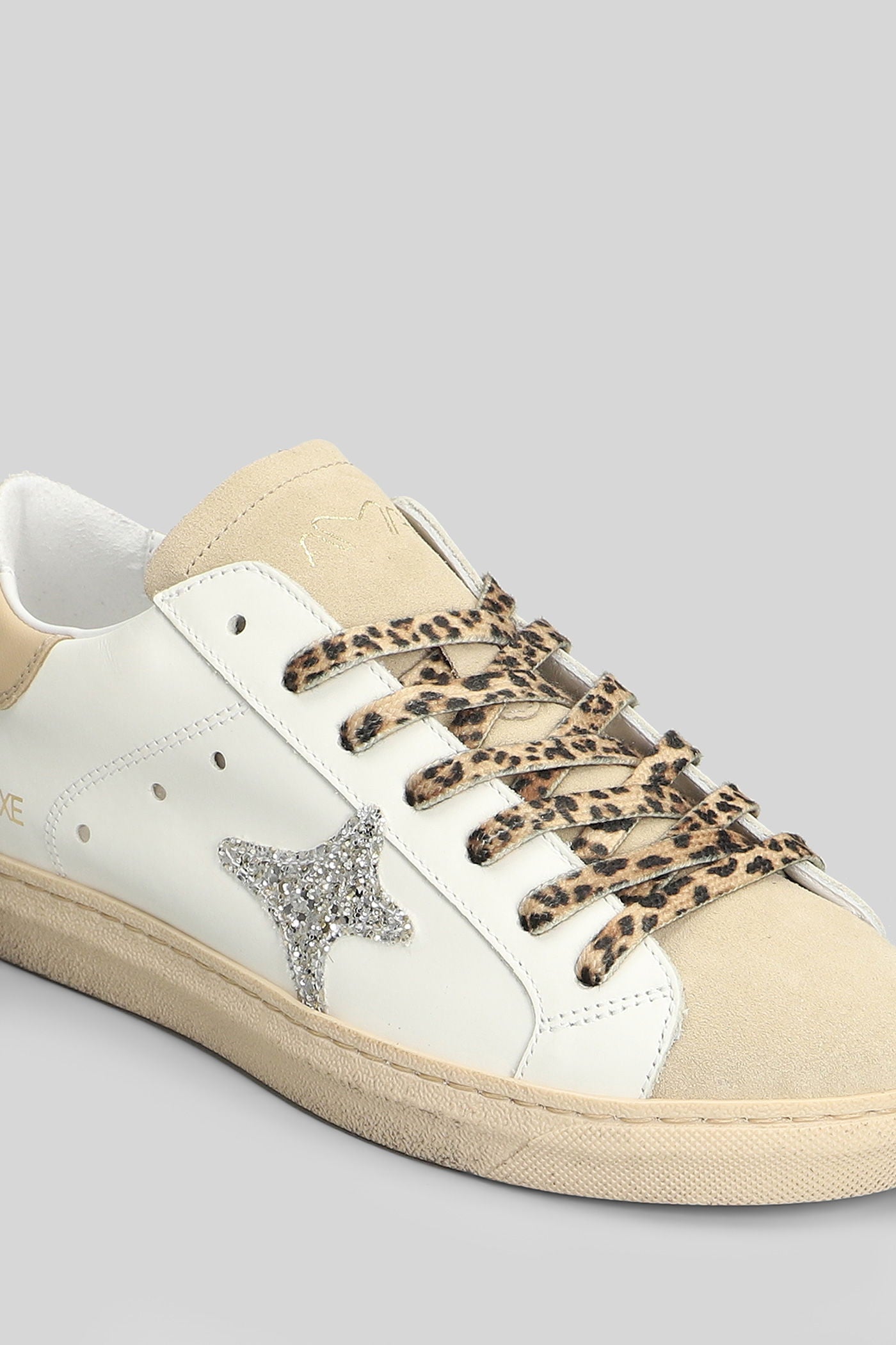 Sneakers in white suede and leather