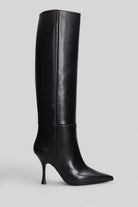 High heels boots in black leather