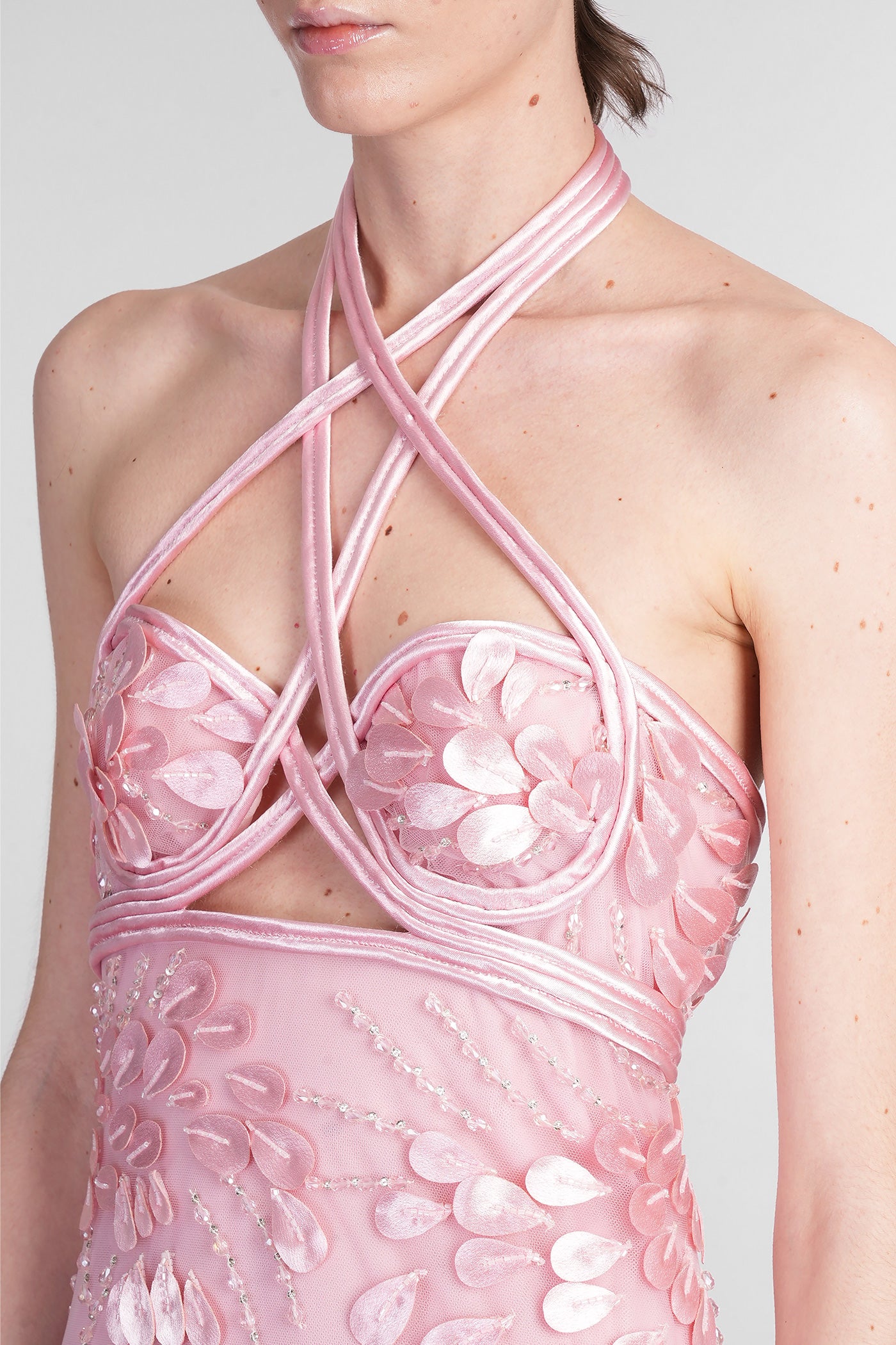 Mini dress in beige polyamide