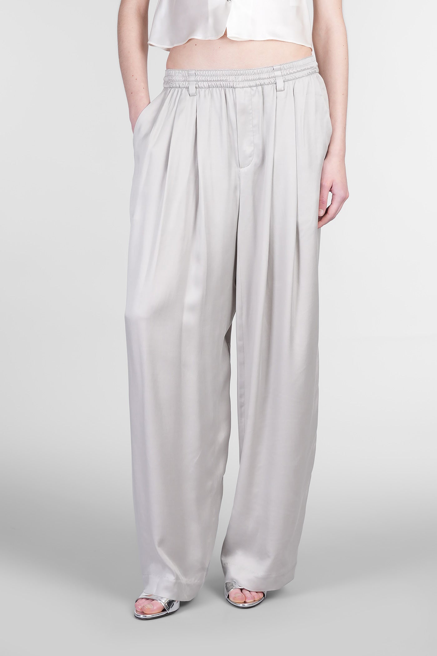 Pants in green silk
