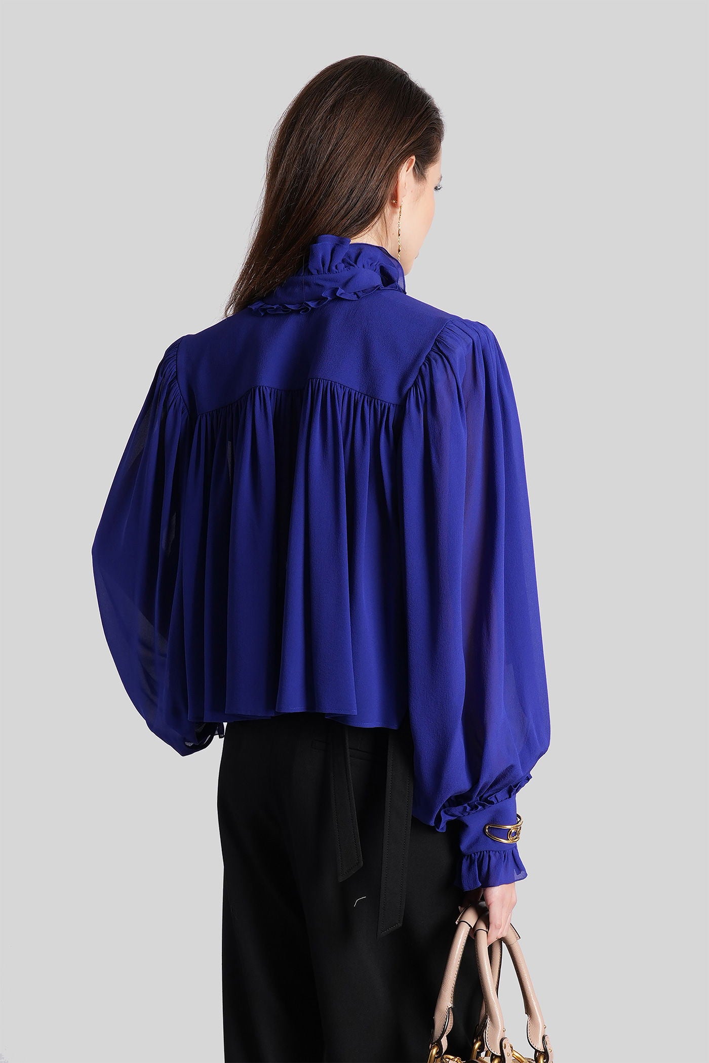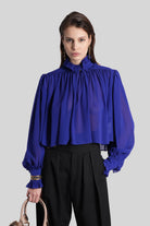 Blouse in blue silk