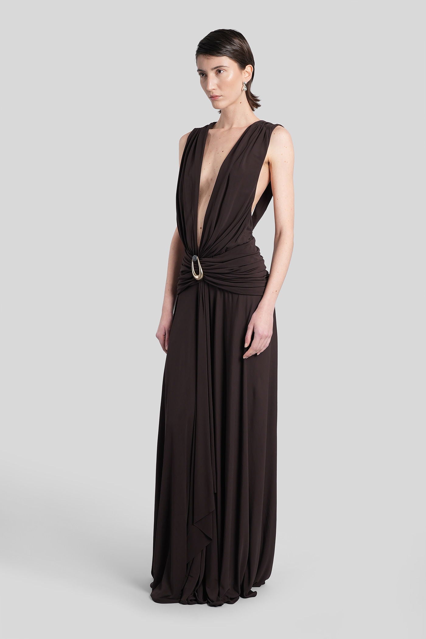 Long dress in brown viscose