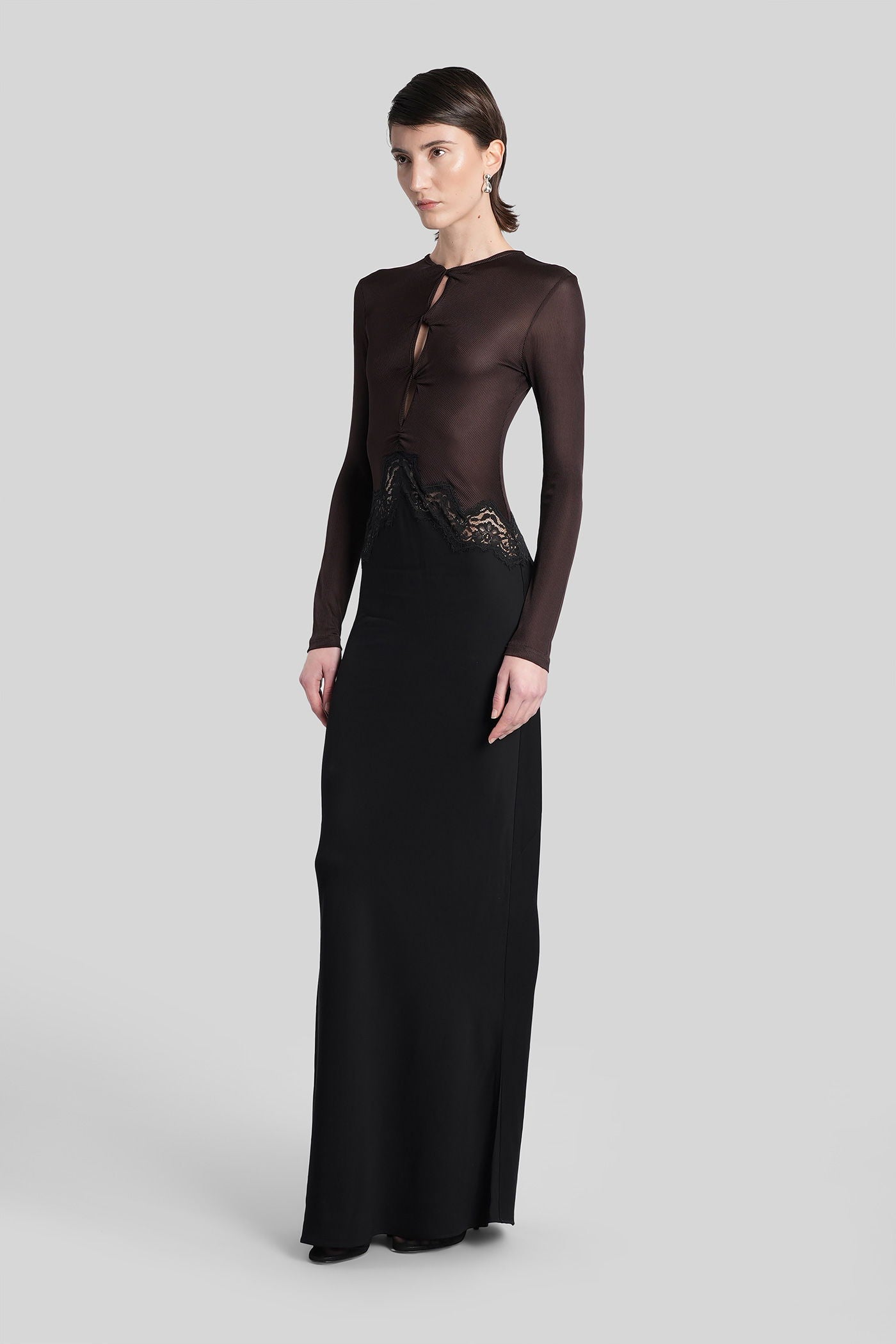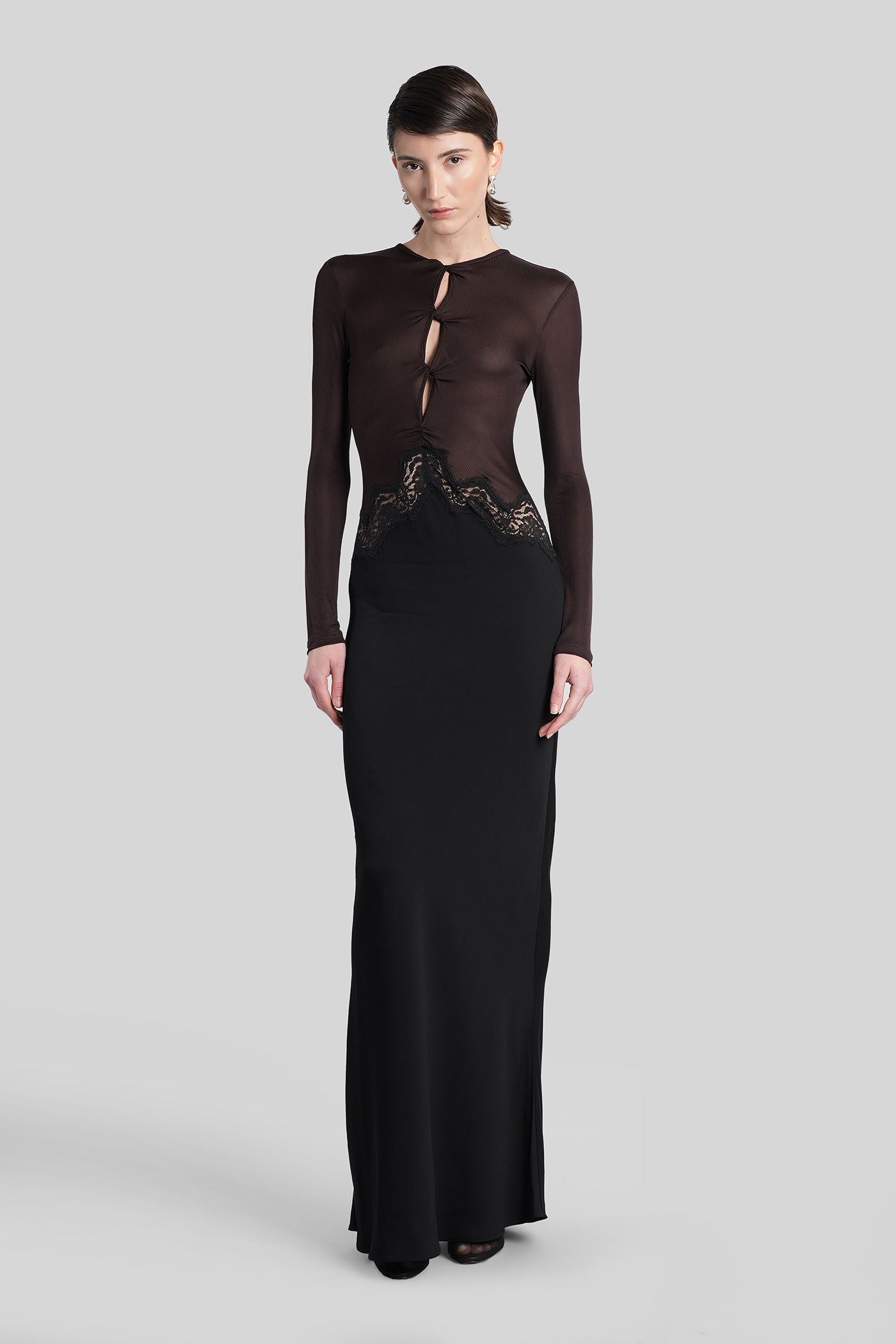 Long dress in brown viscose