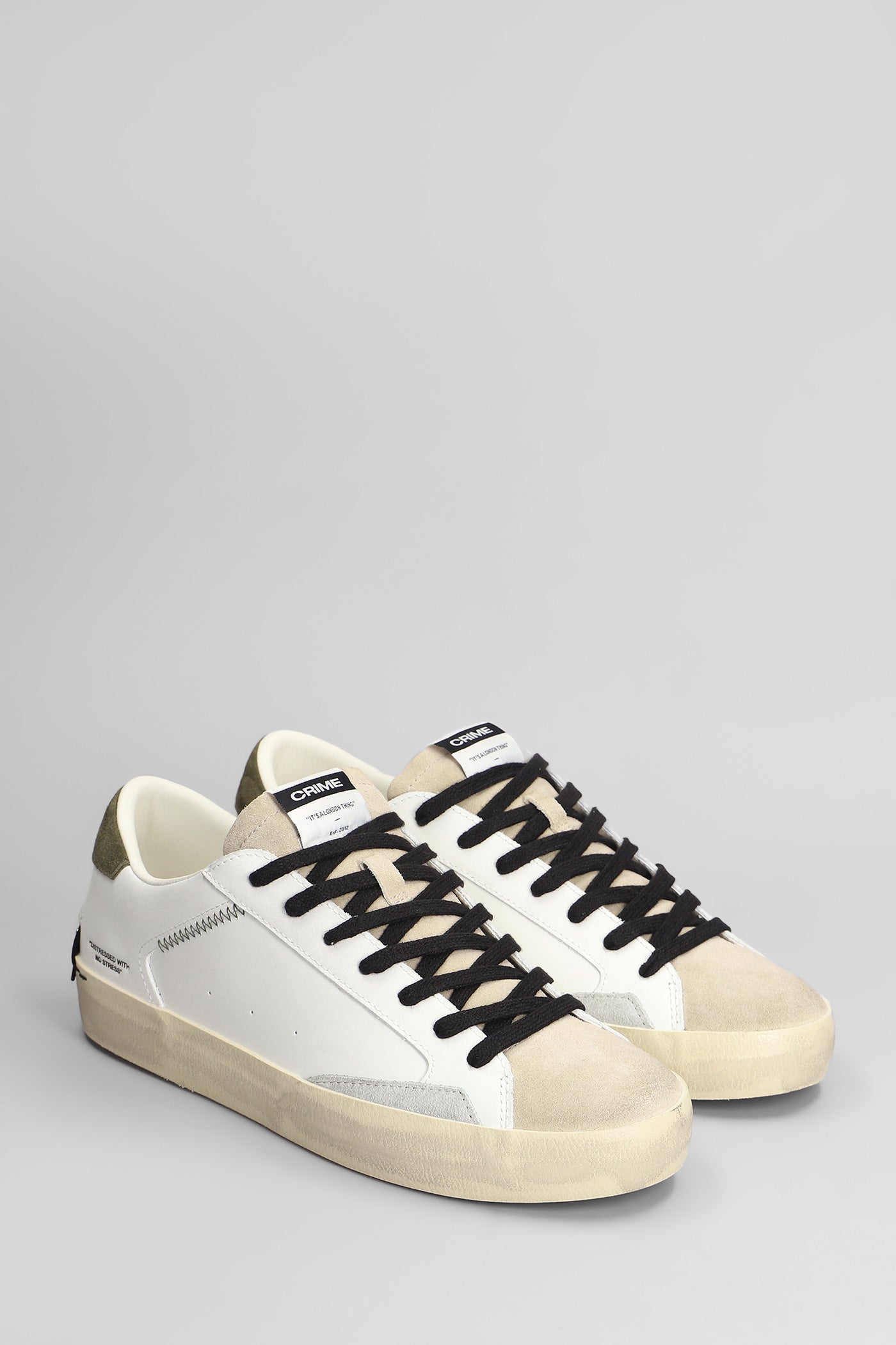 Distressed Sneakers in white suede and leather