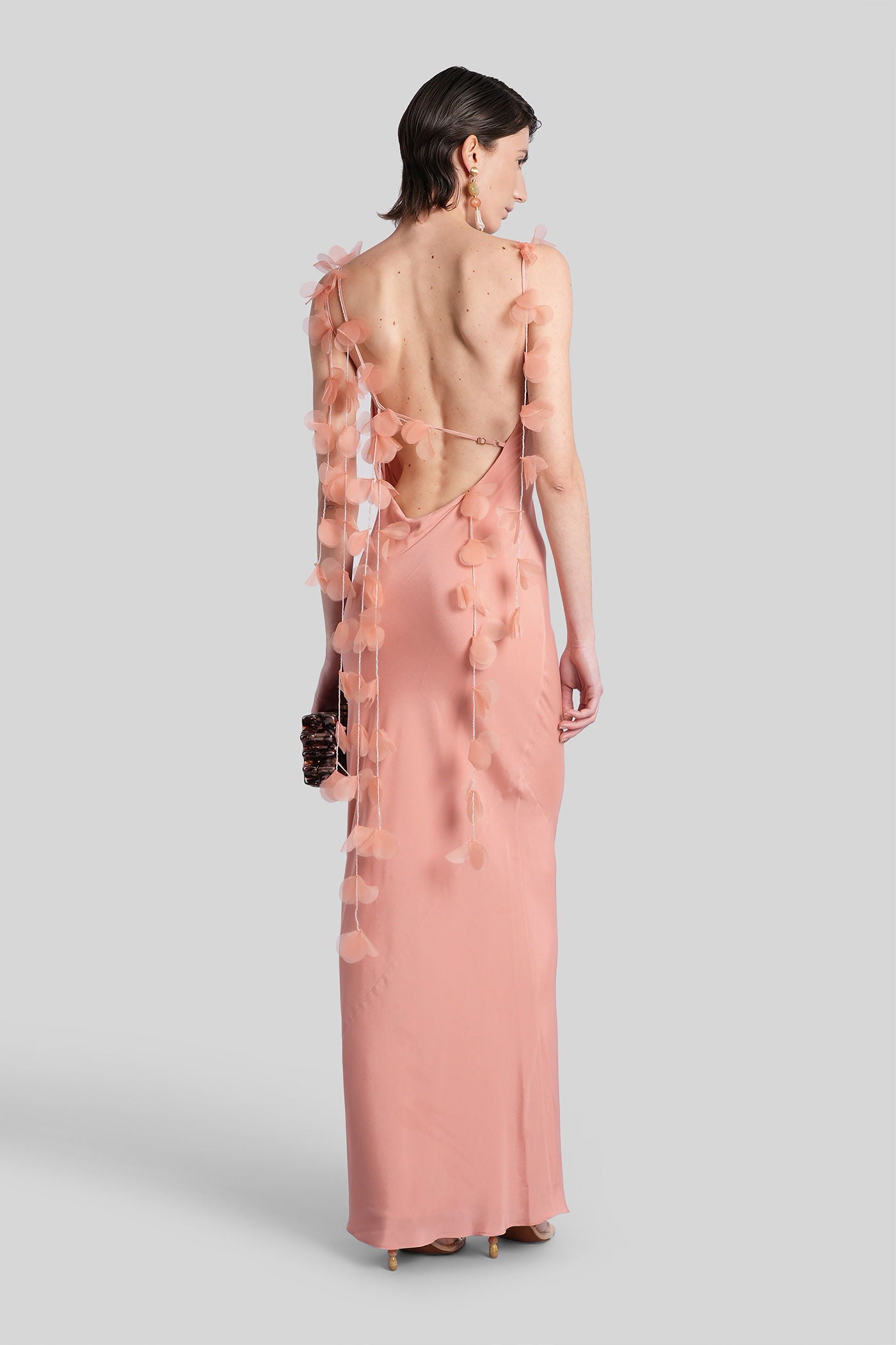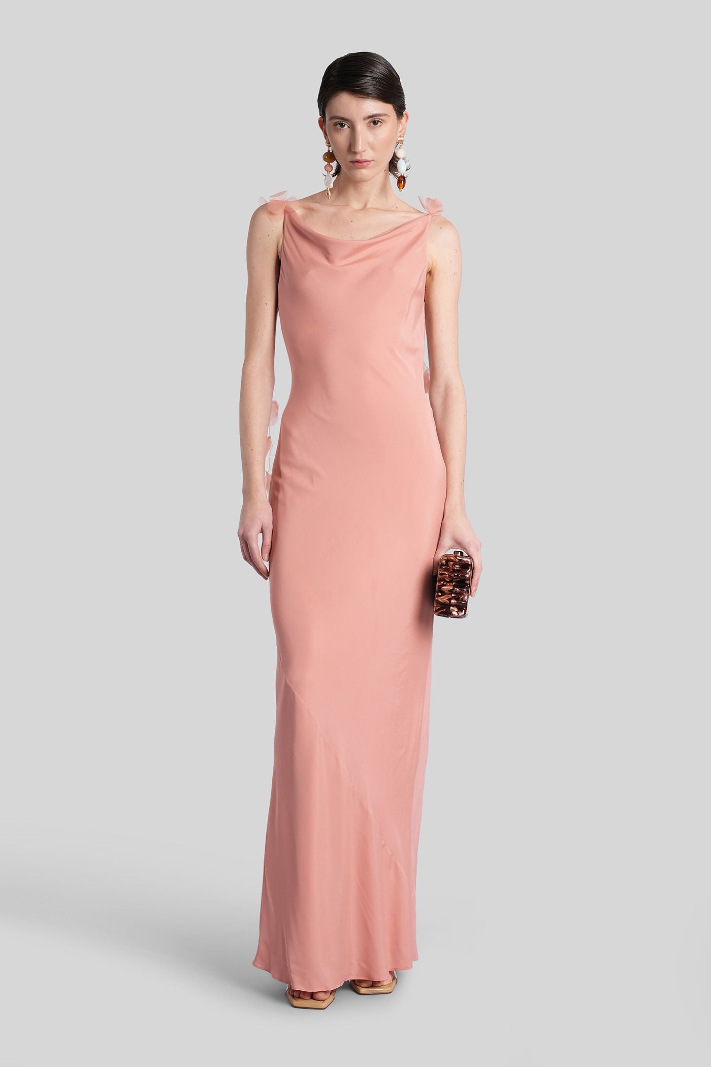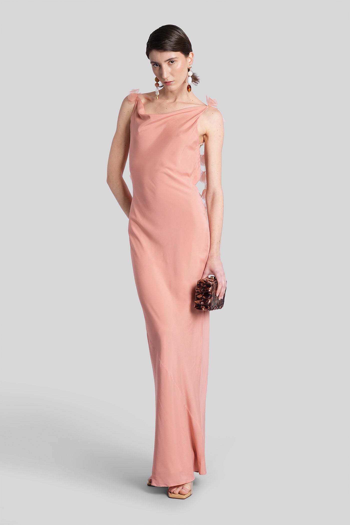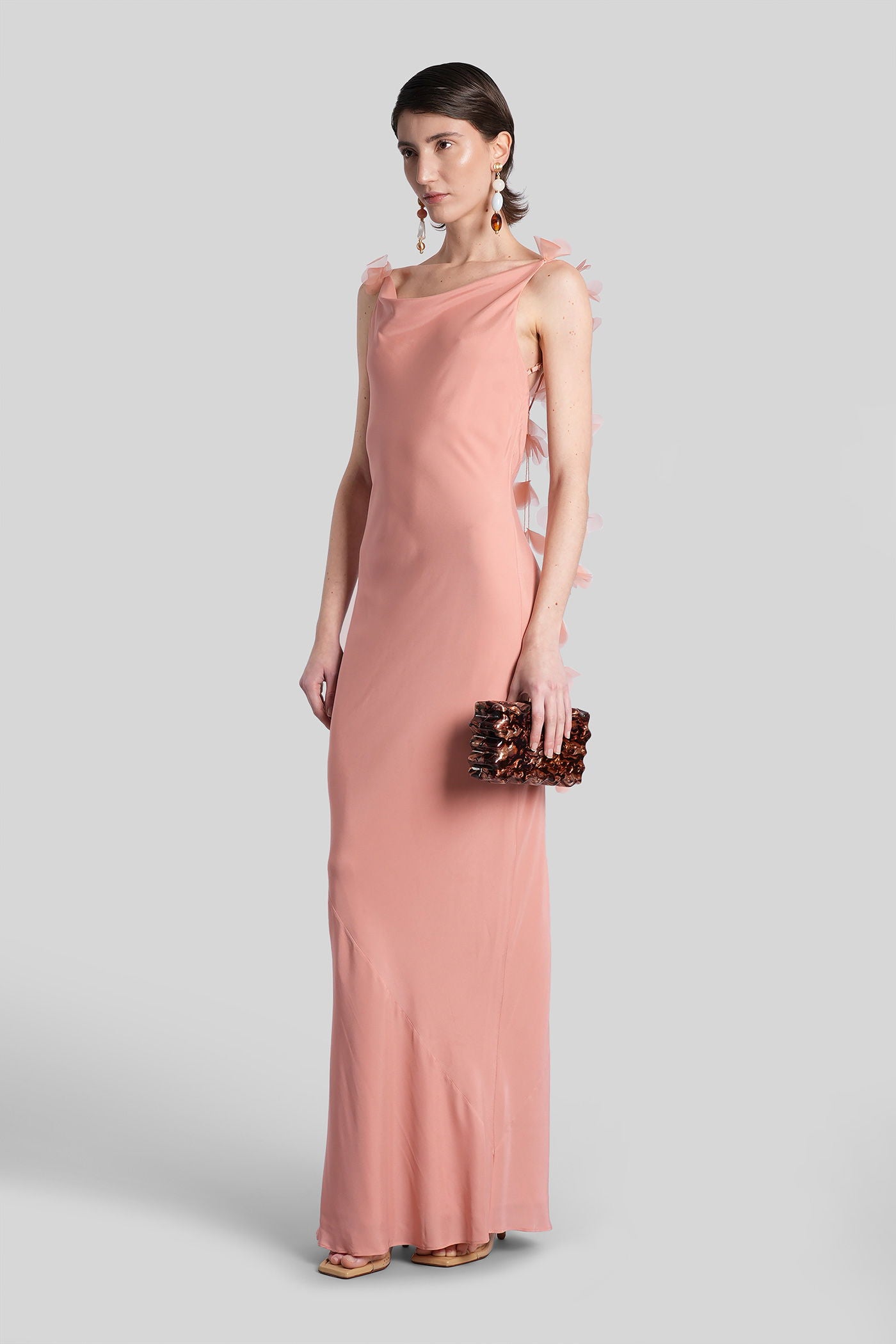 Nymeria Long dress in rose-pink silk