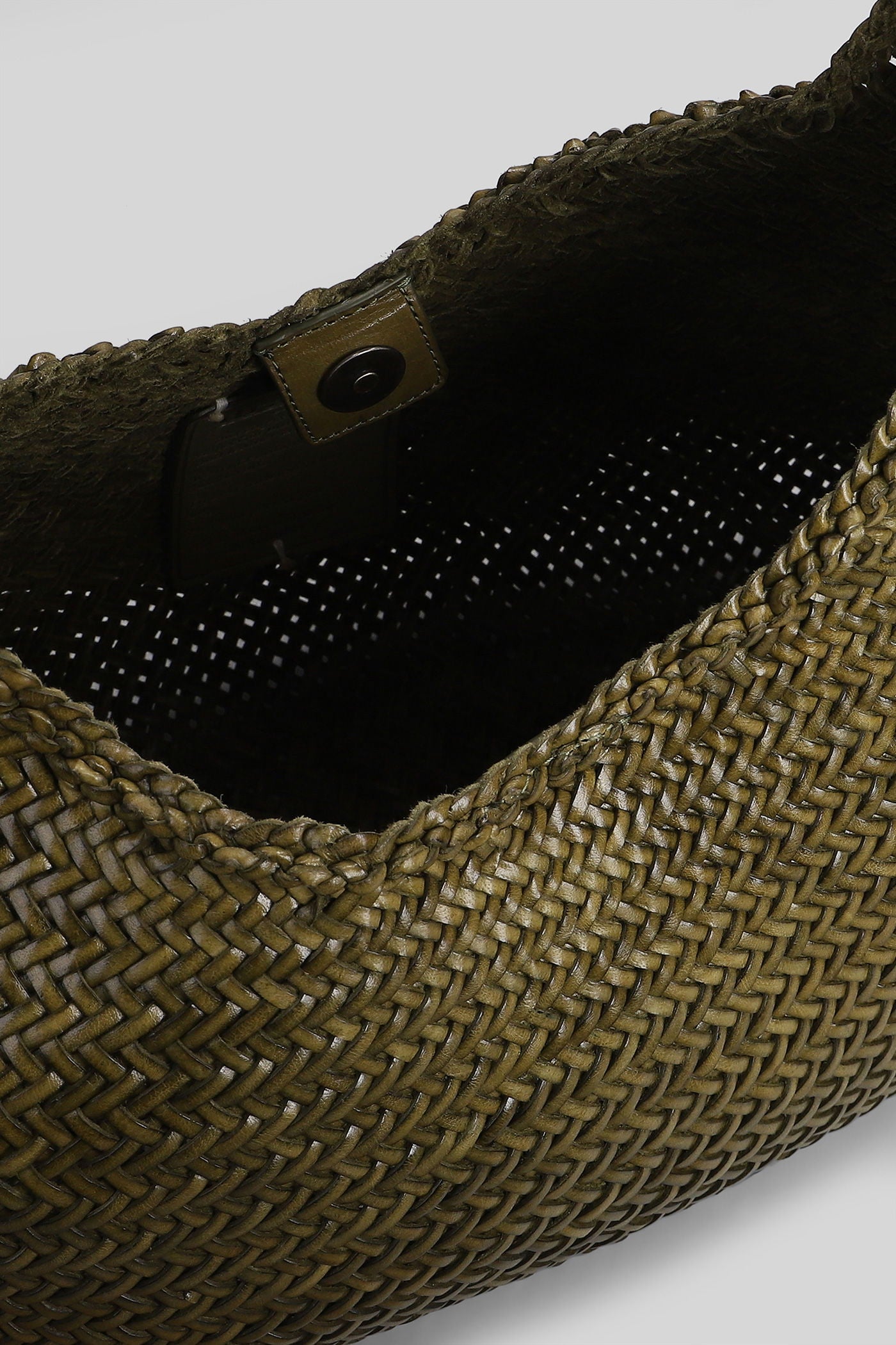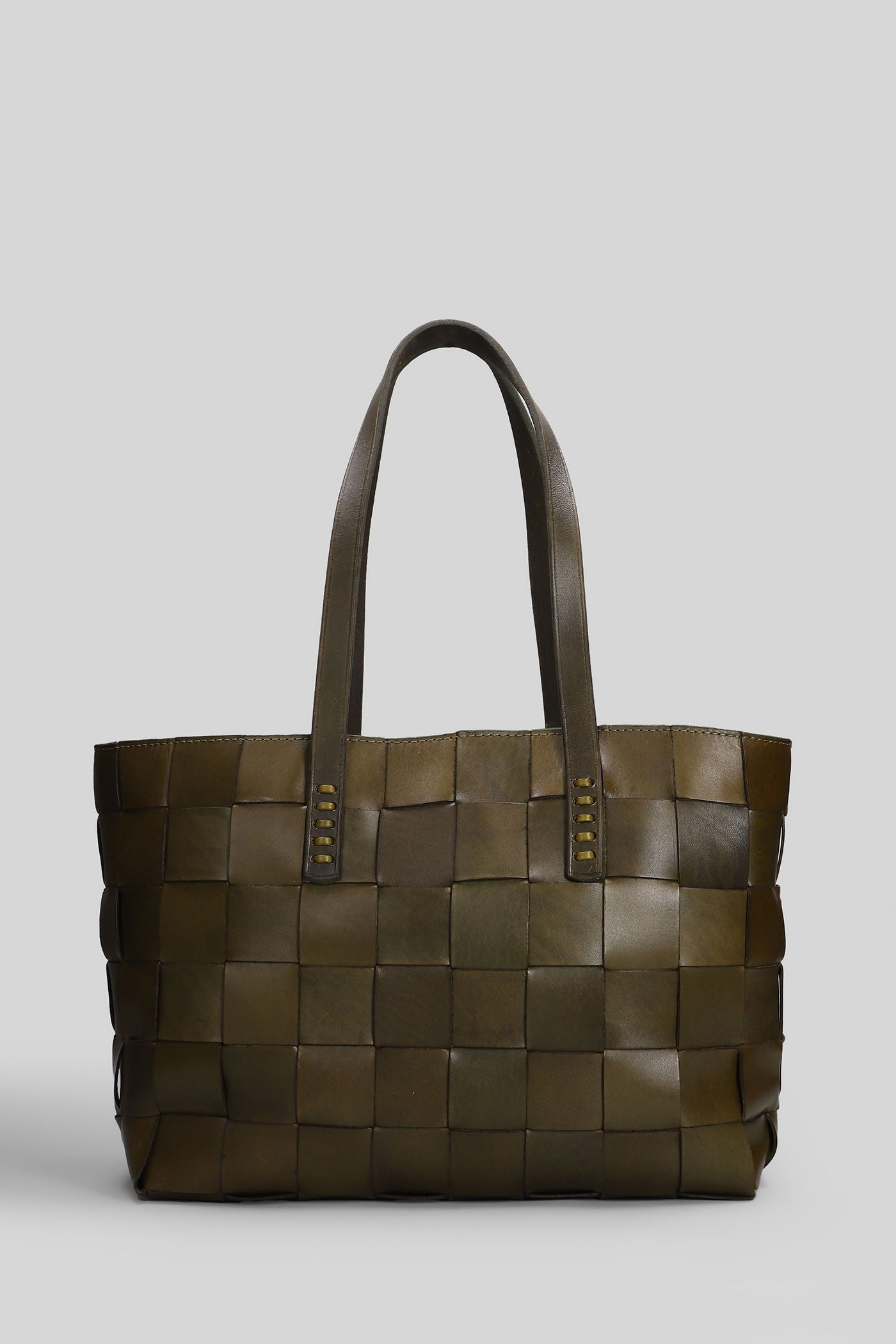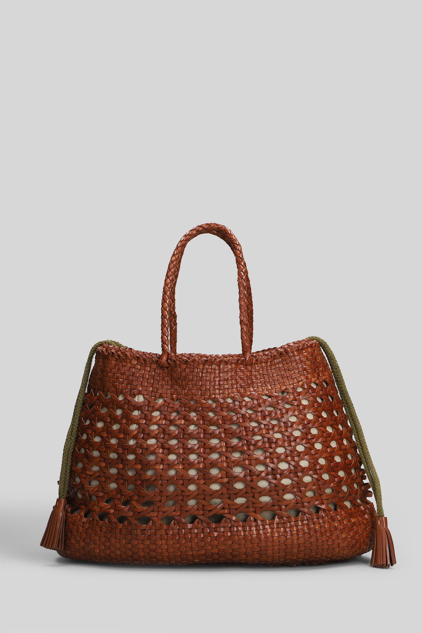 Box Weave Basket Tote in khaki leather