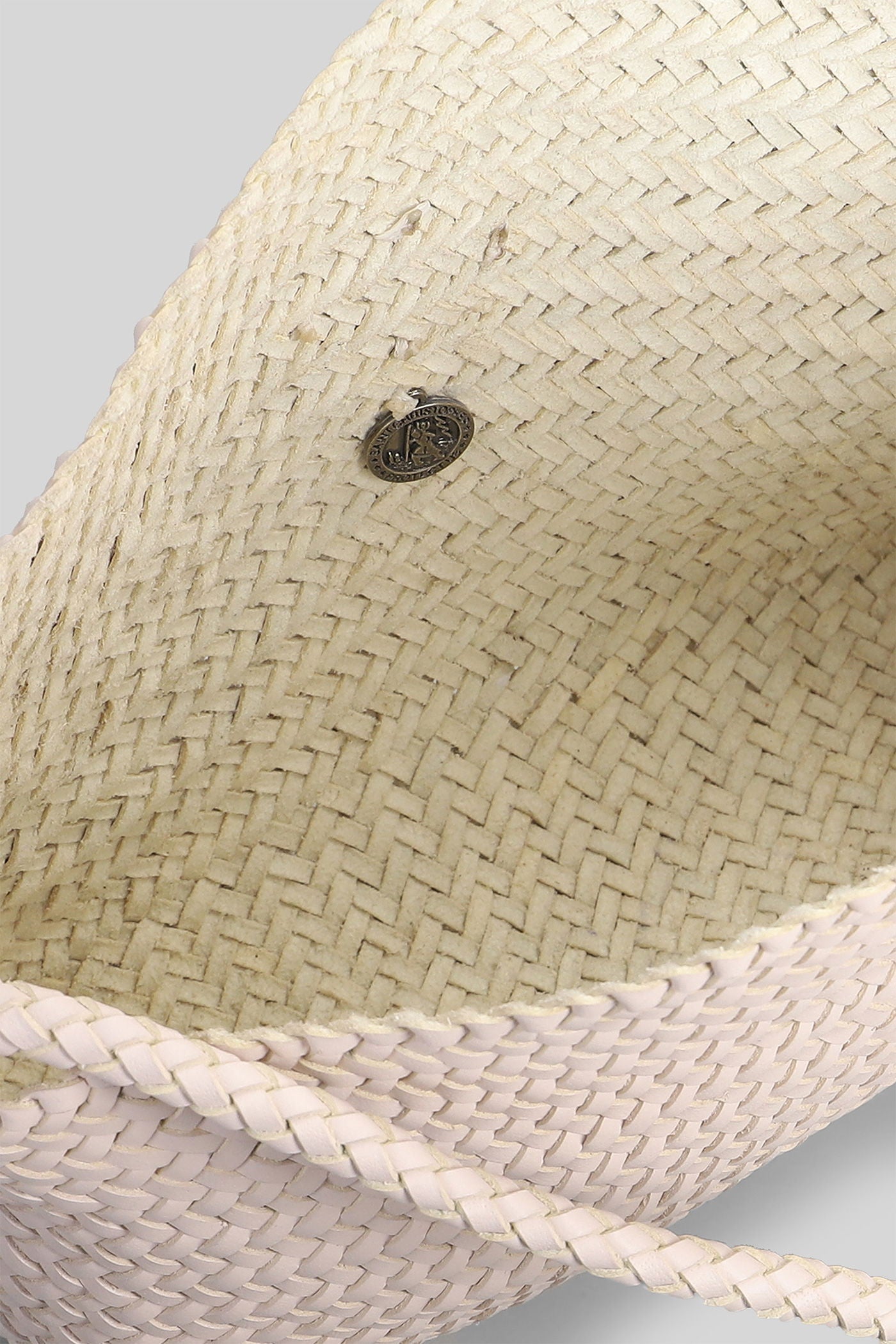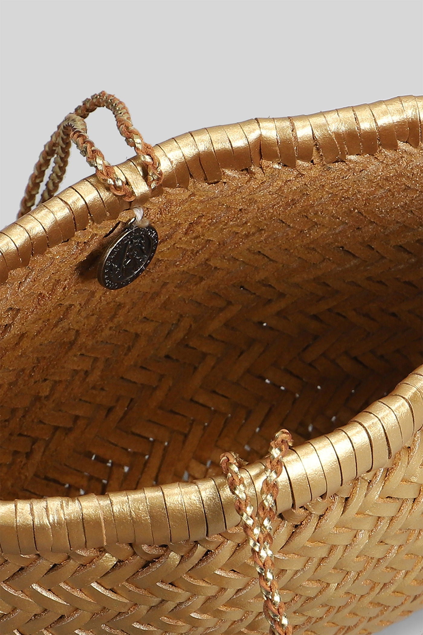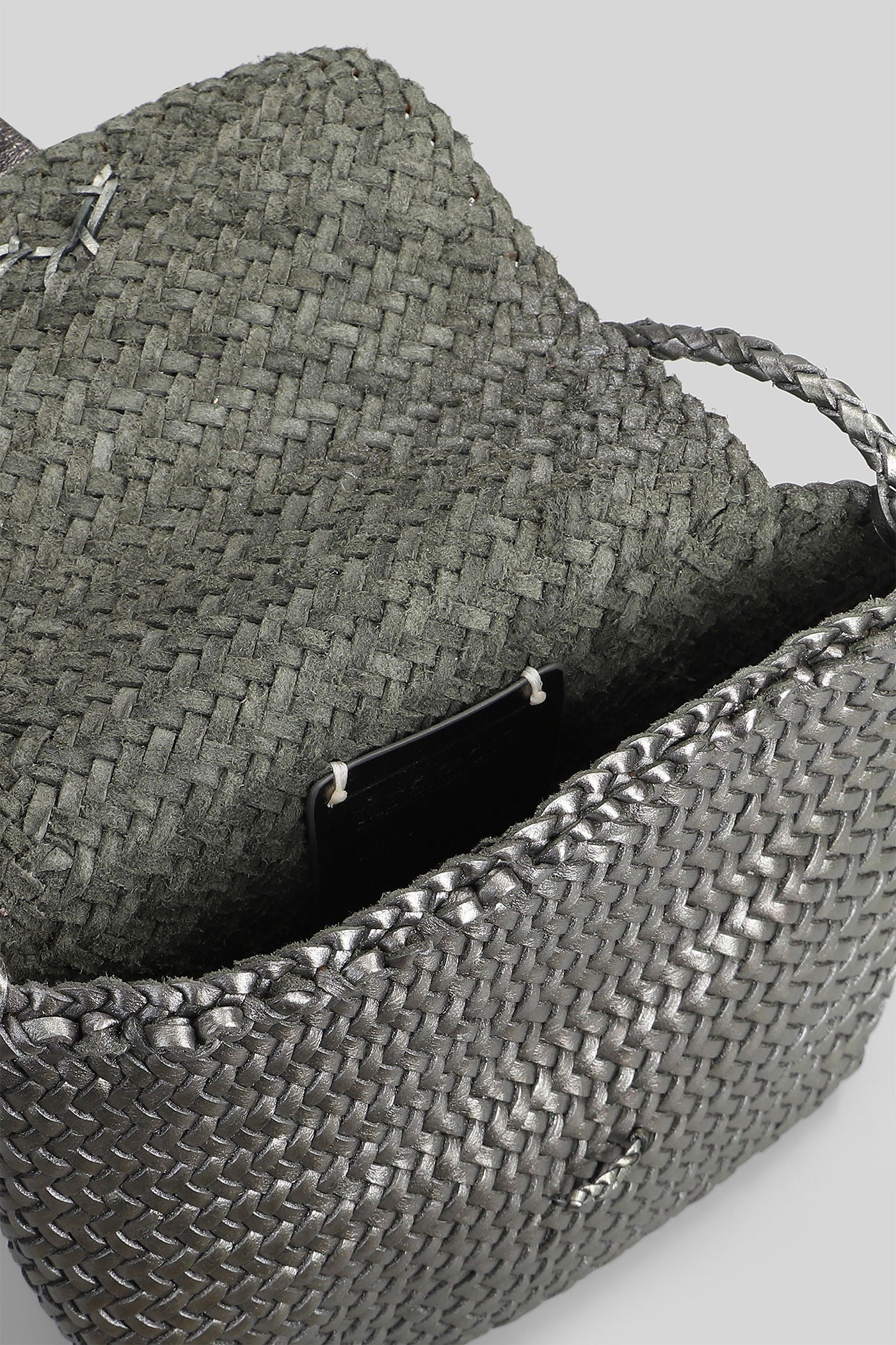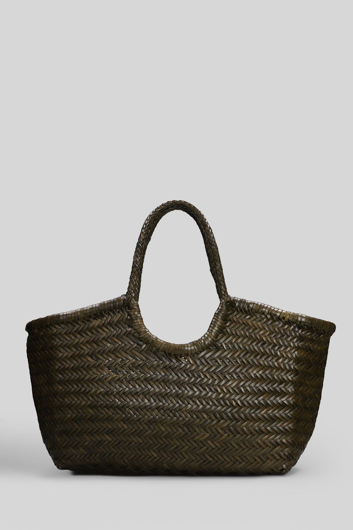 Box Weave Basket Tote in khaki leather