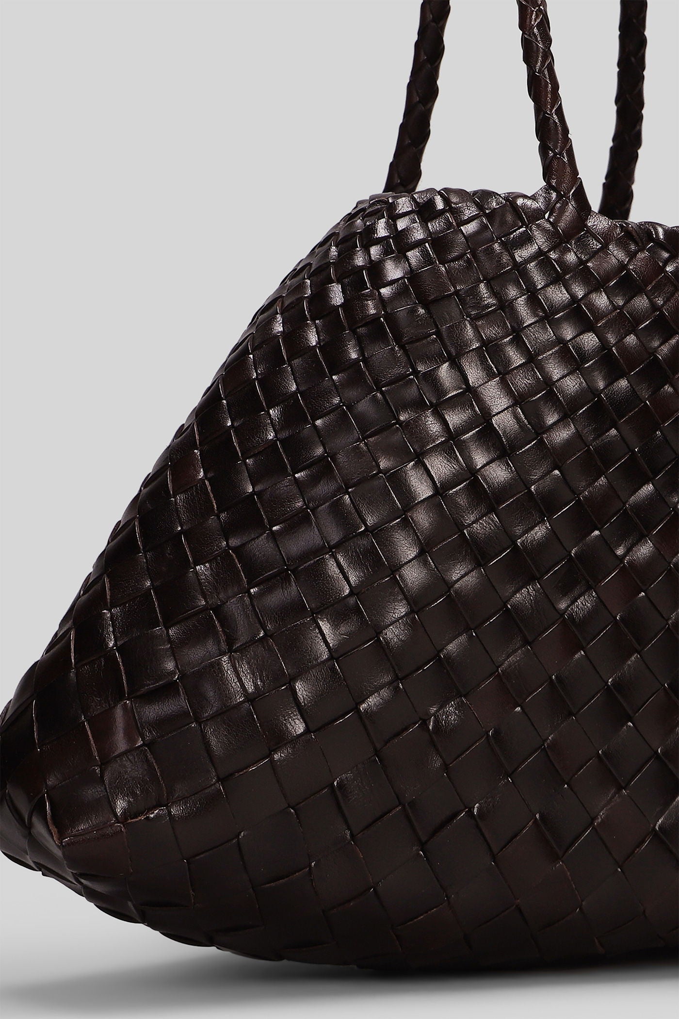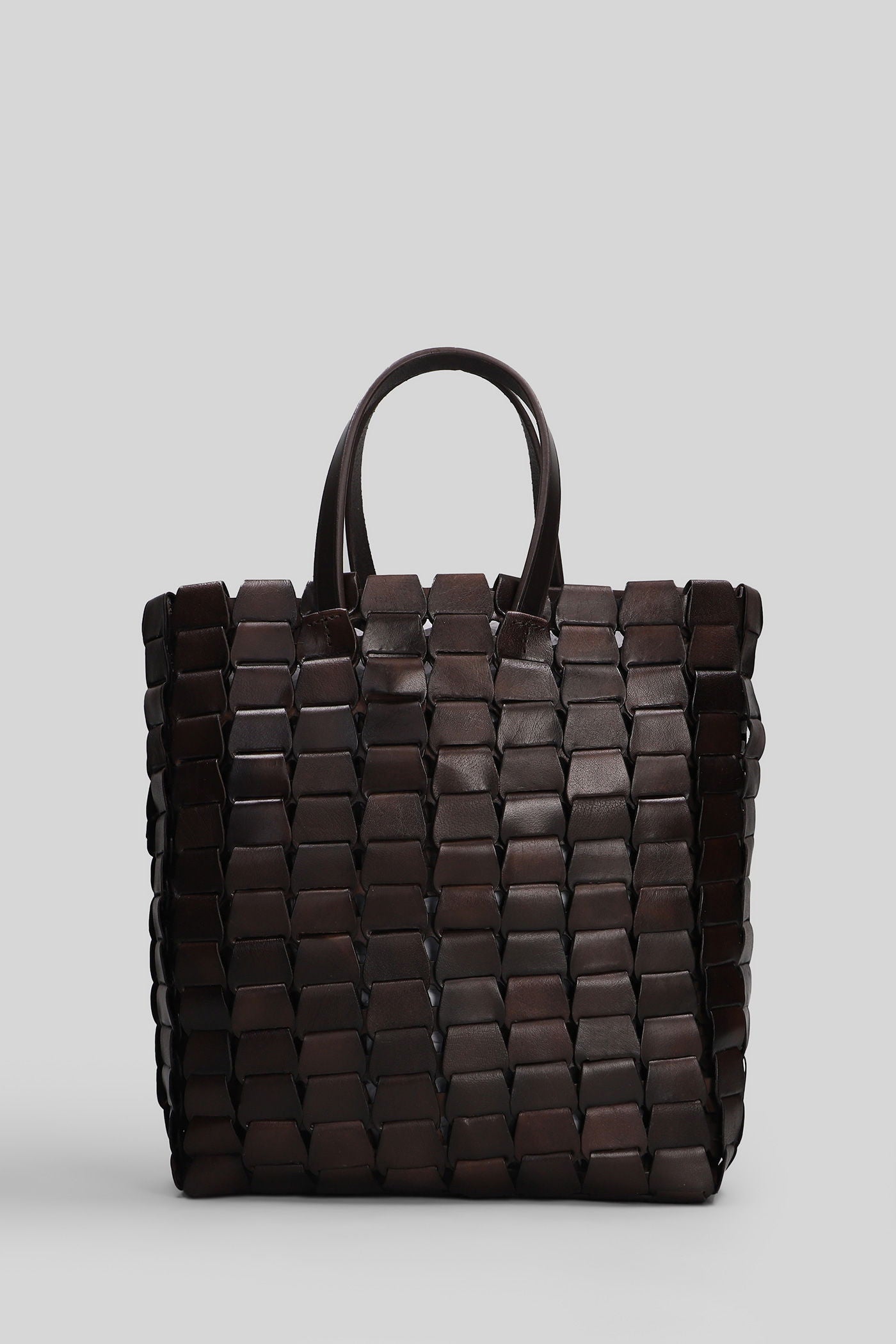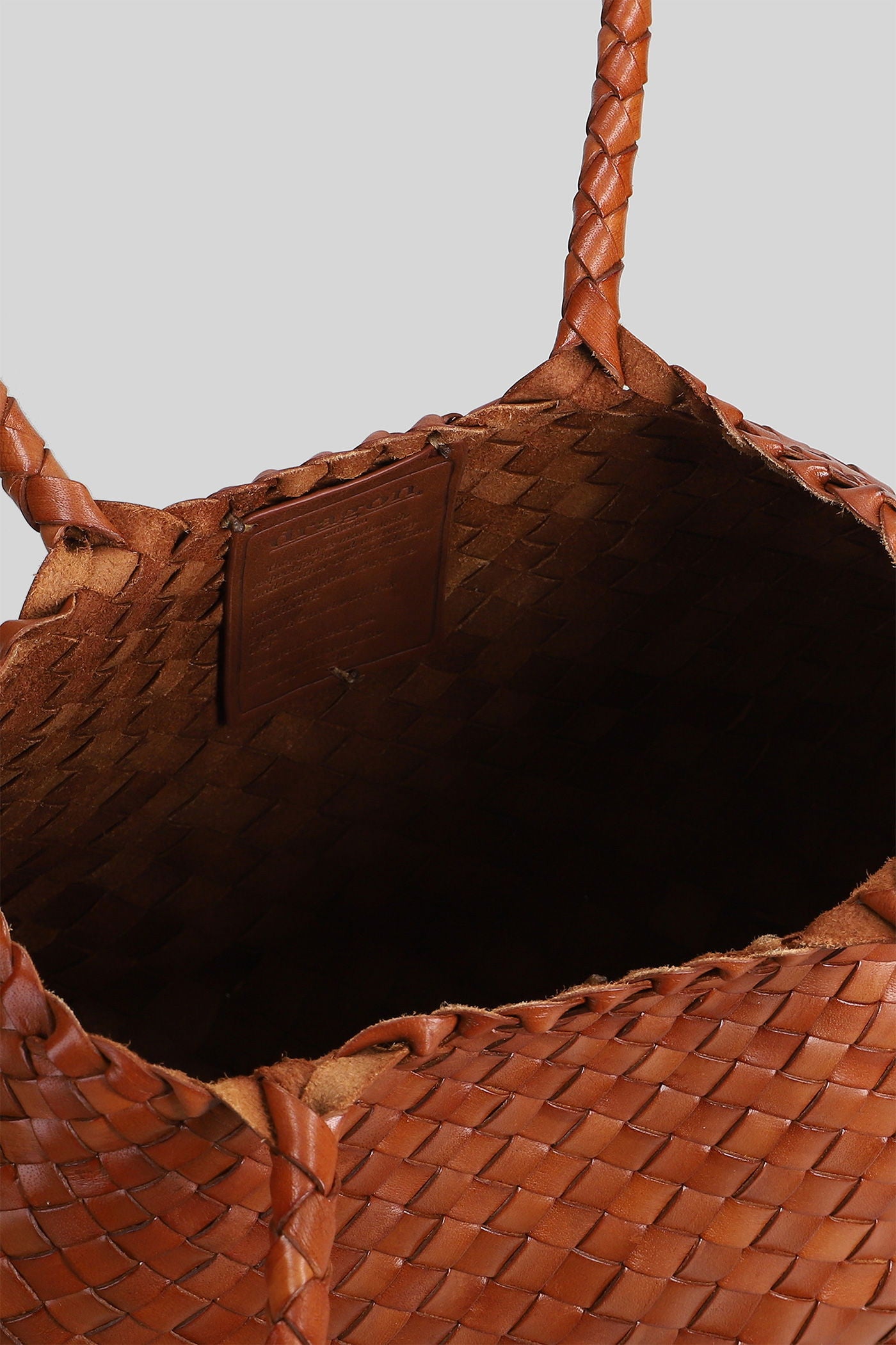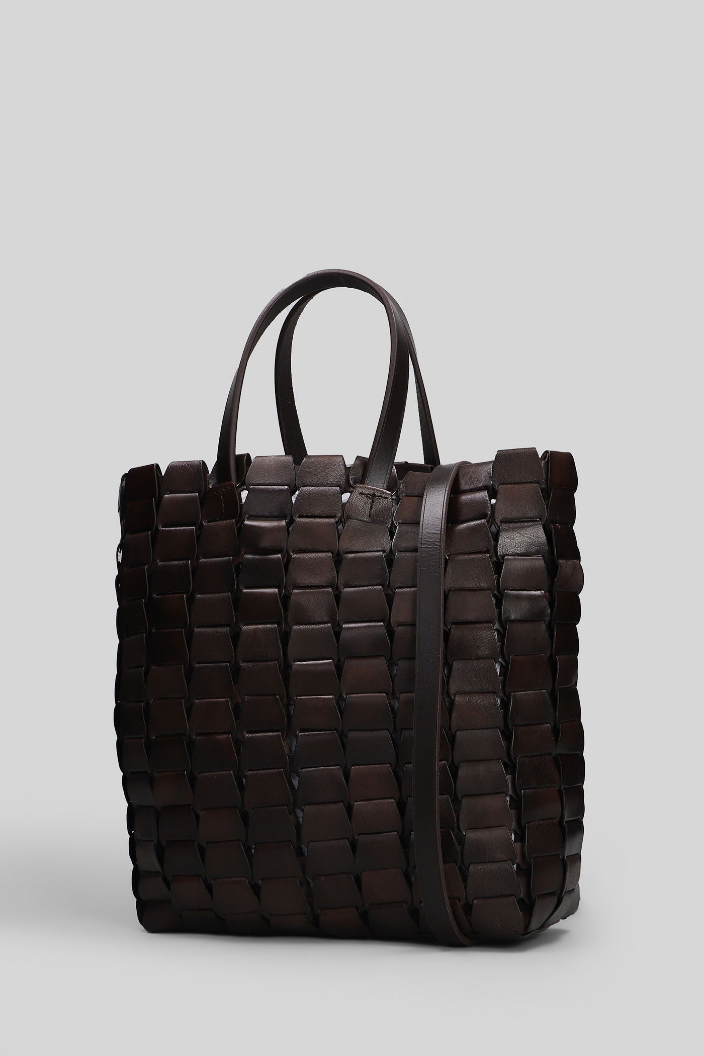 Box Weave Basket Tote in brown leather