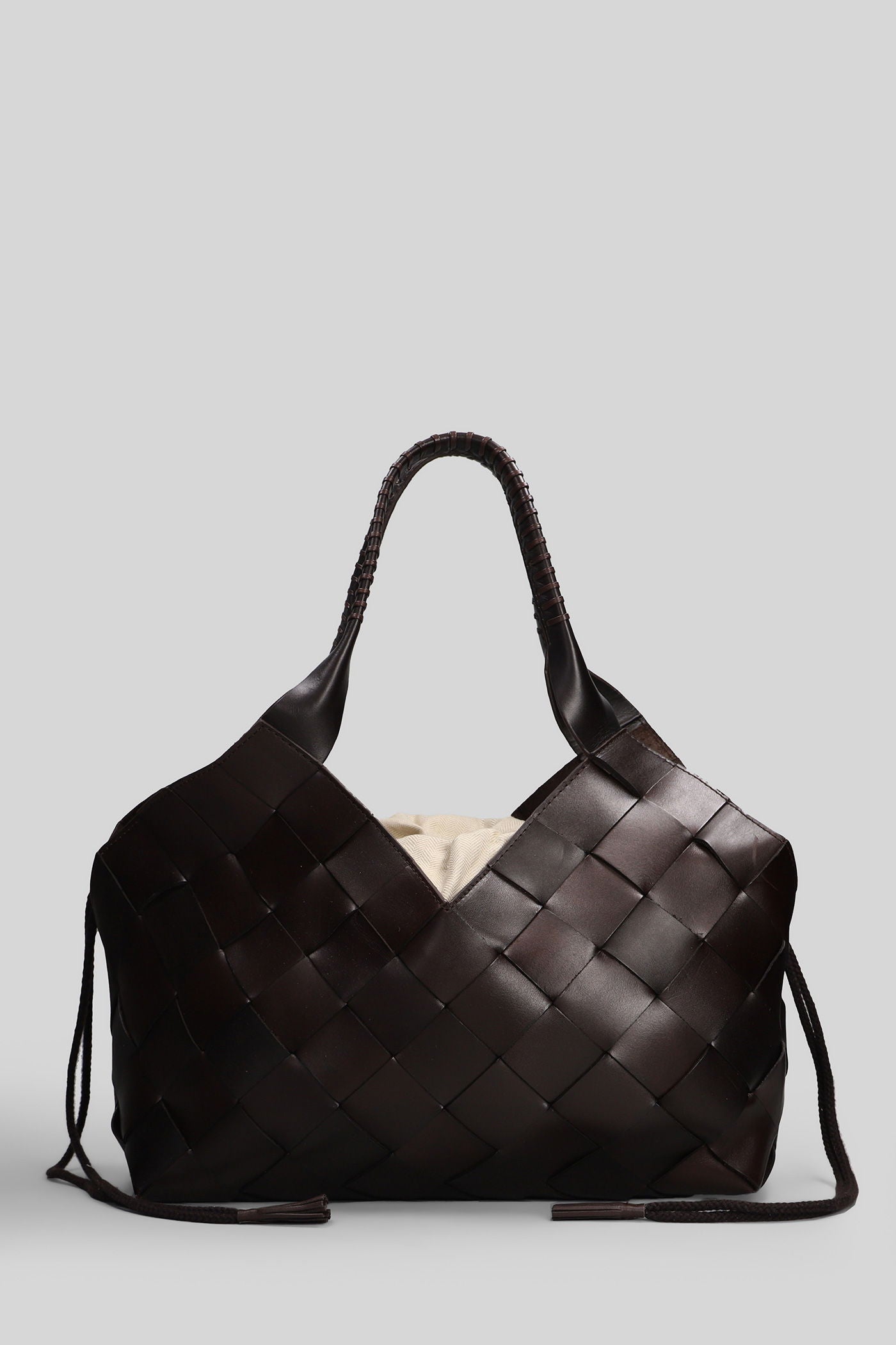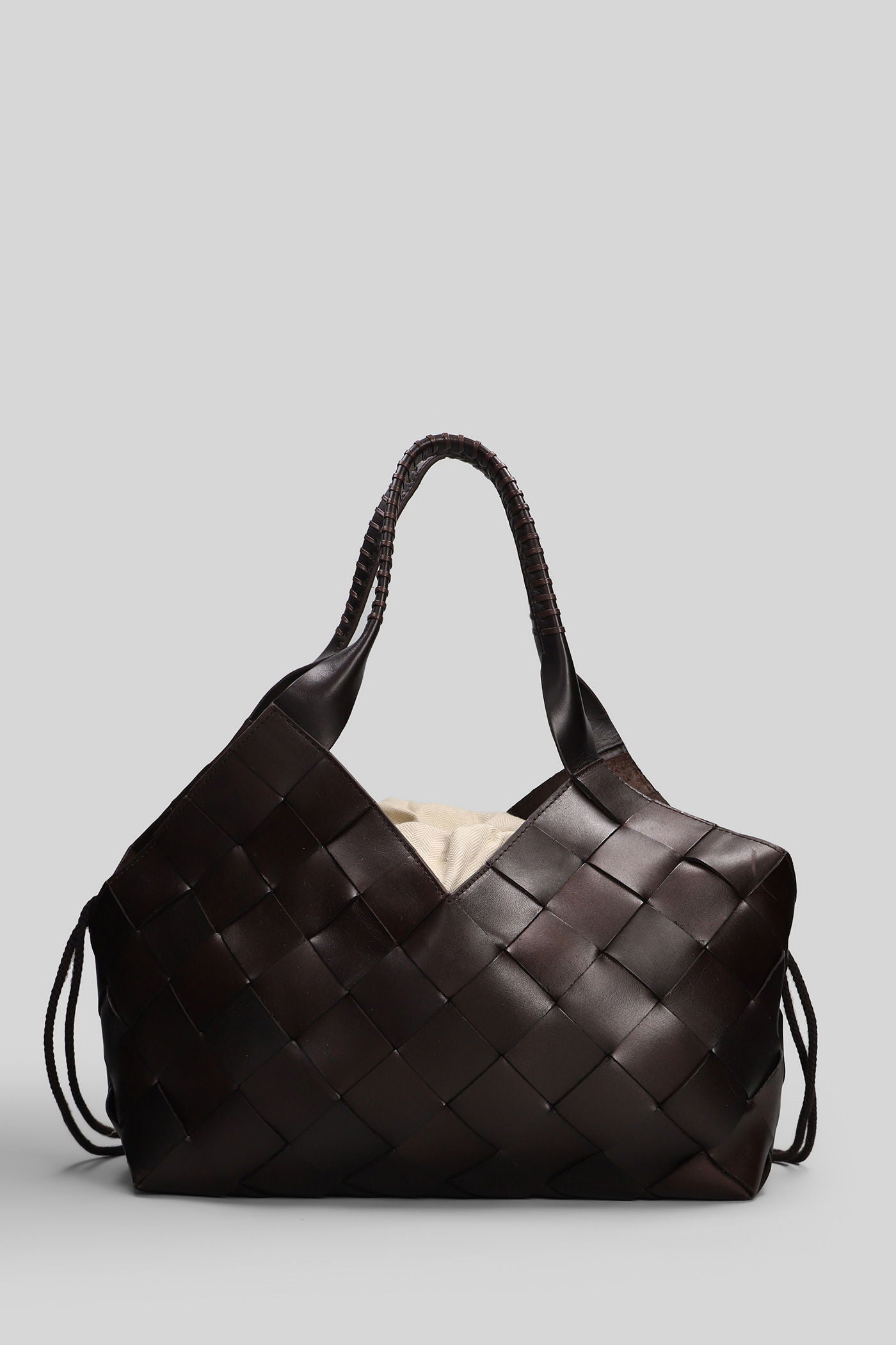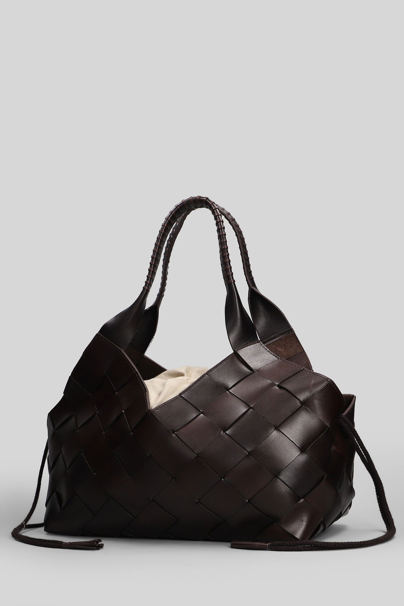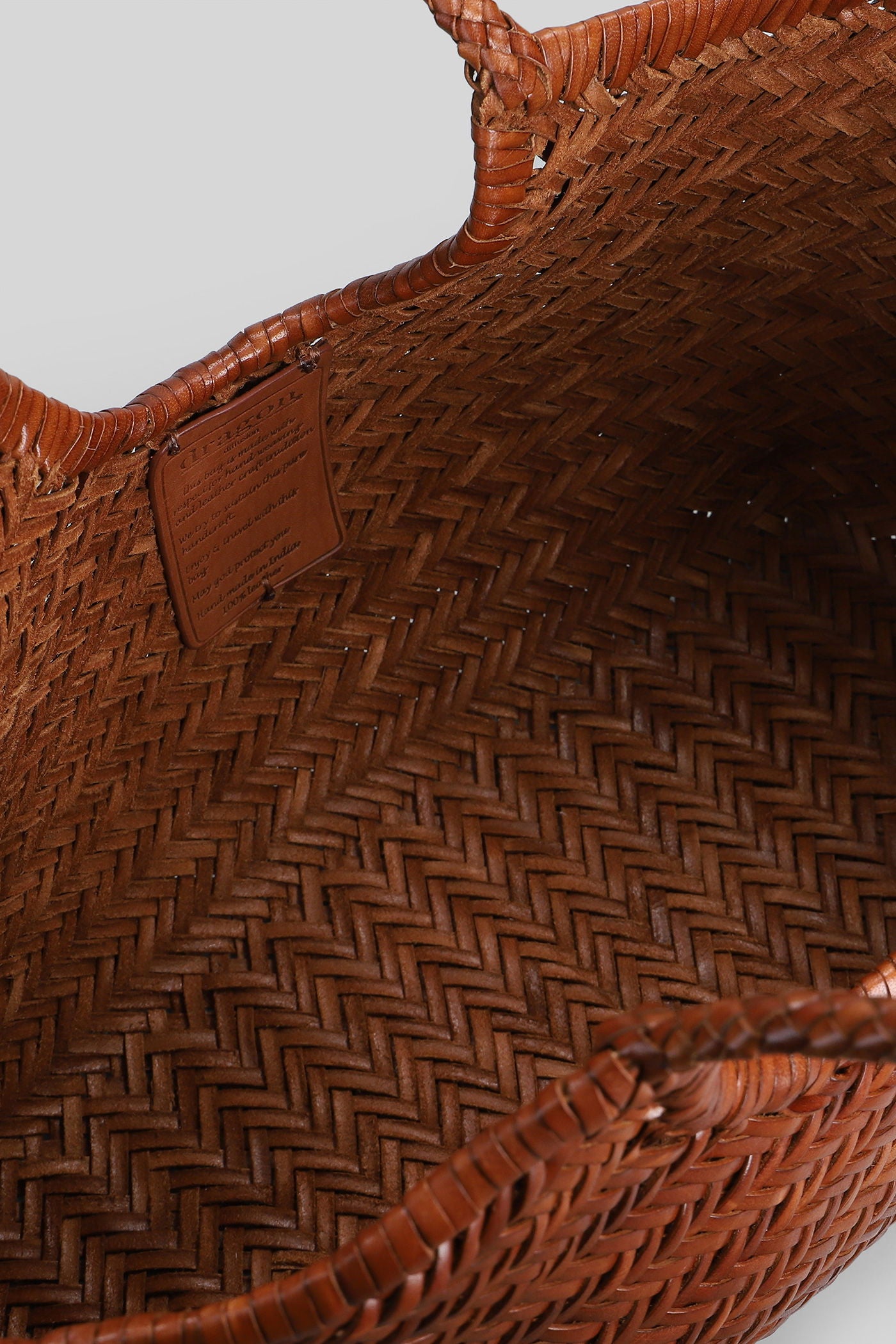 Box Weave Basket Tote in brown leather