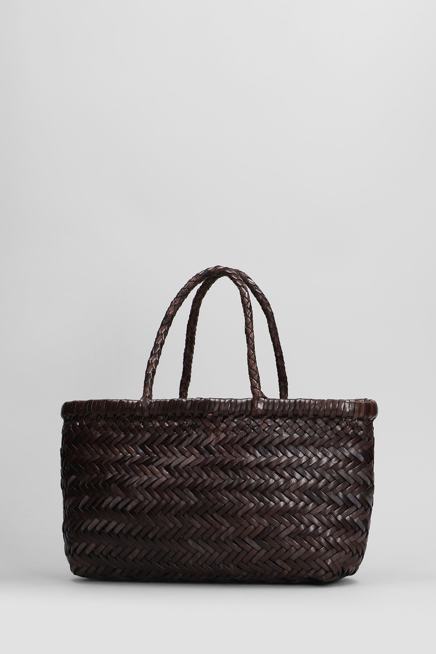 Mini Flat Gora Baskt Hand bag in brown leather