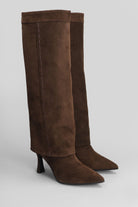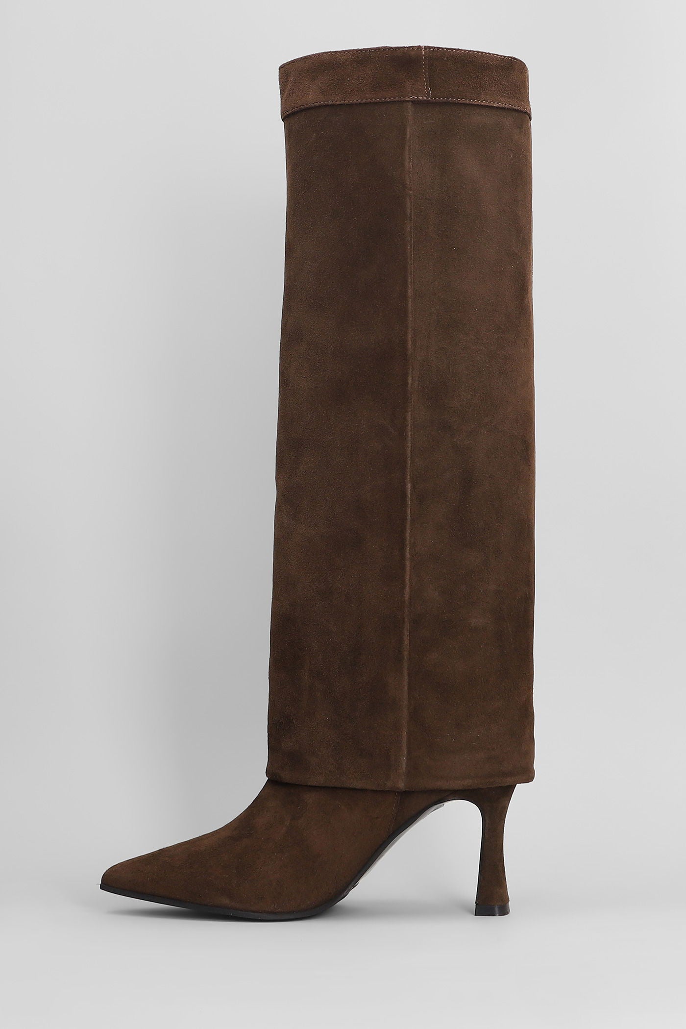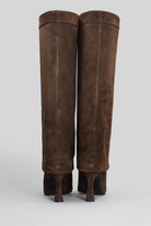 High heels boots in brown suede