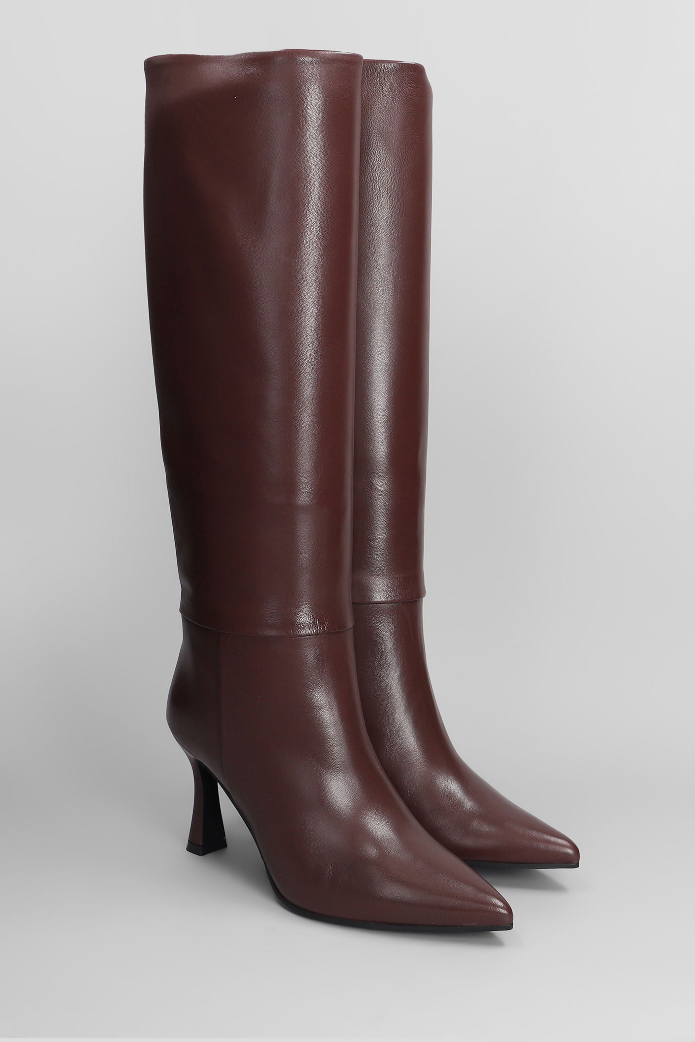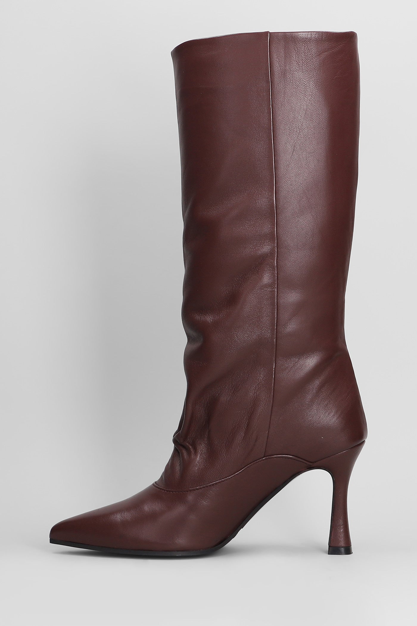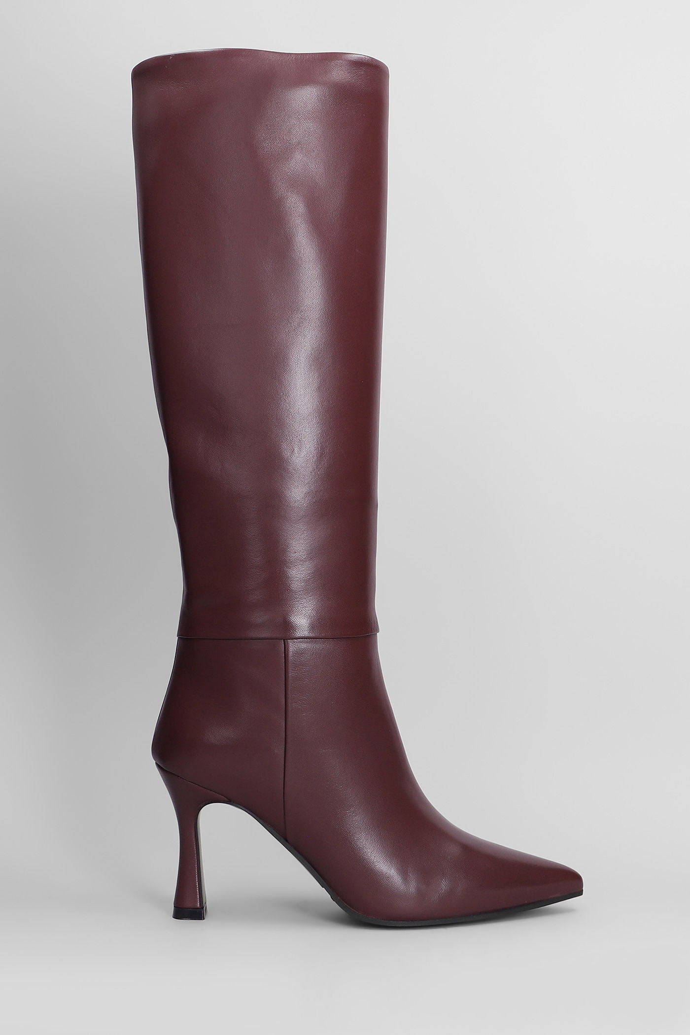 High heels boots in bordeaux leather
