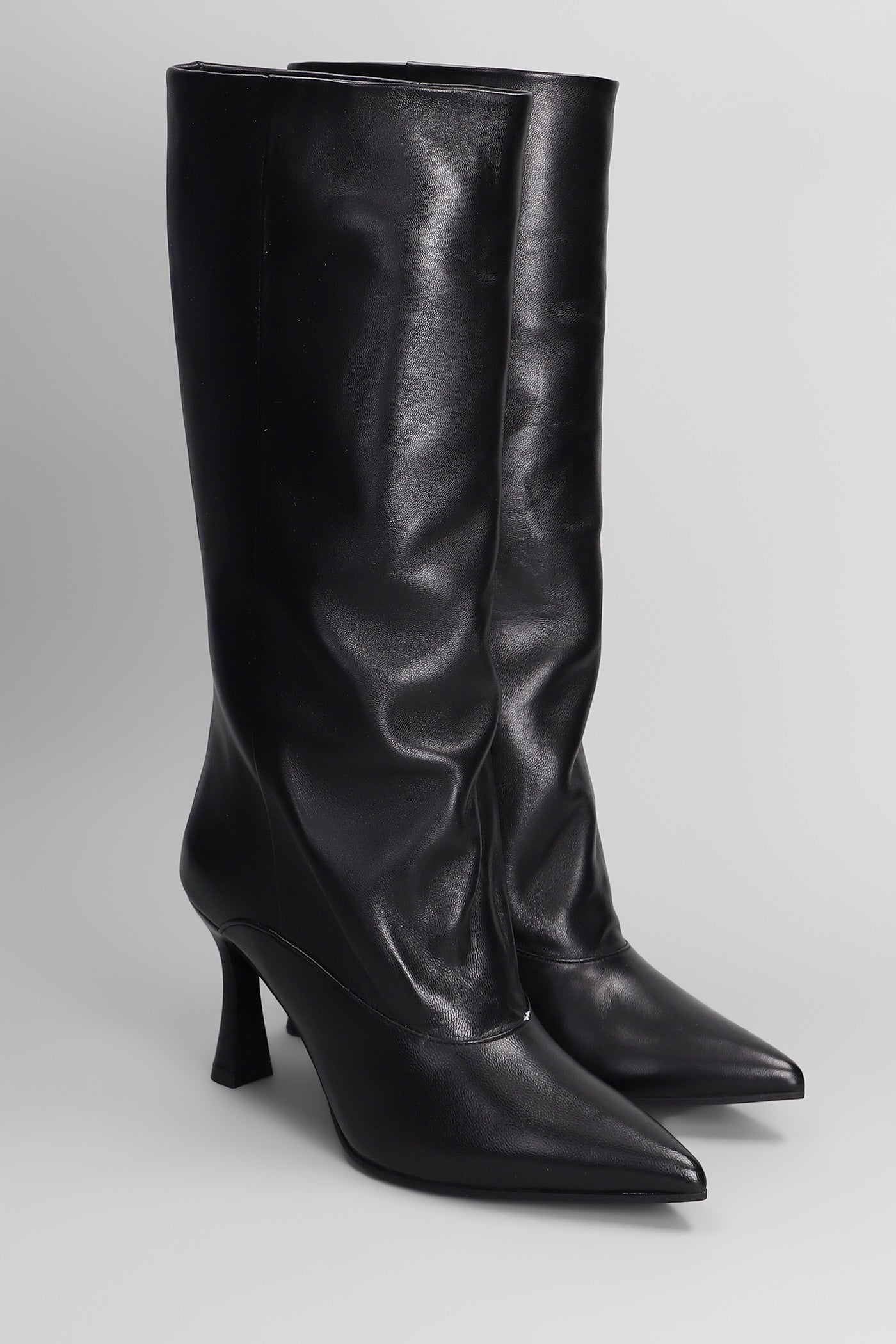 High heels boots in black leather