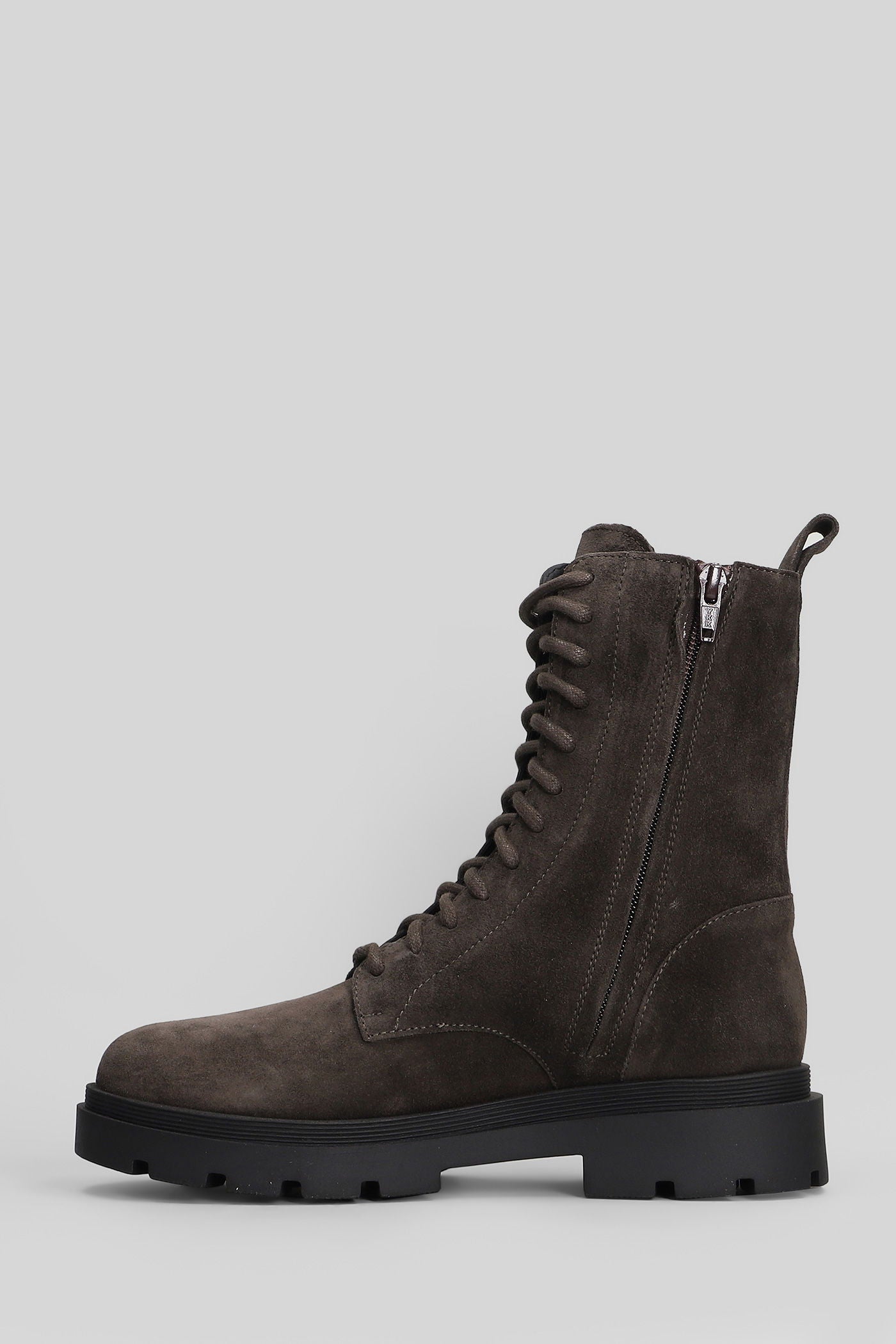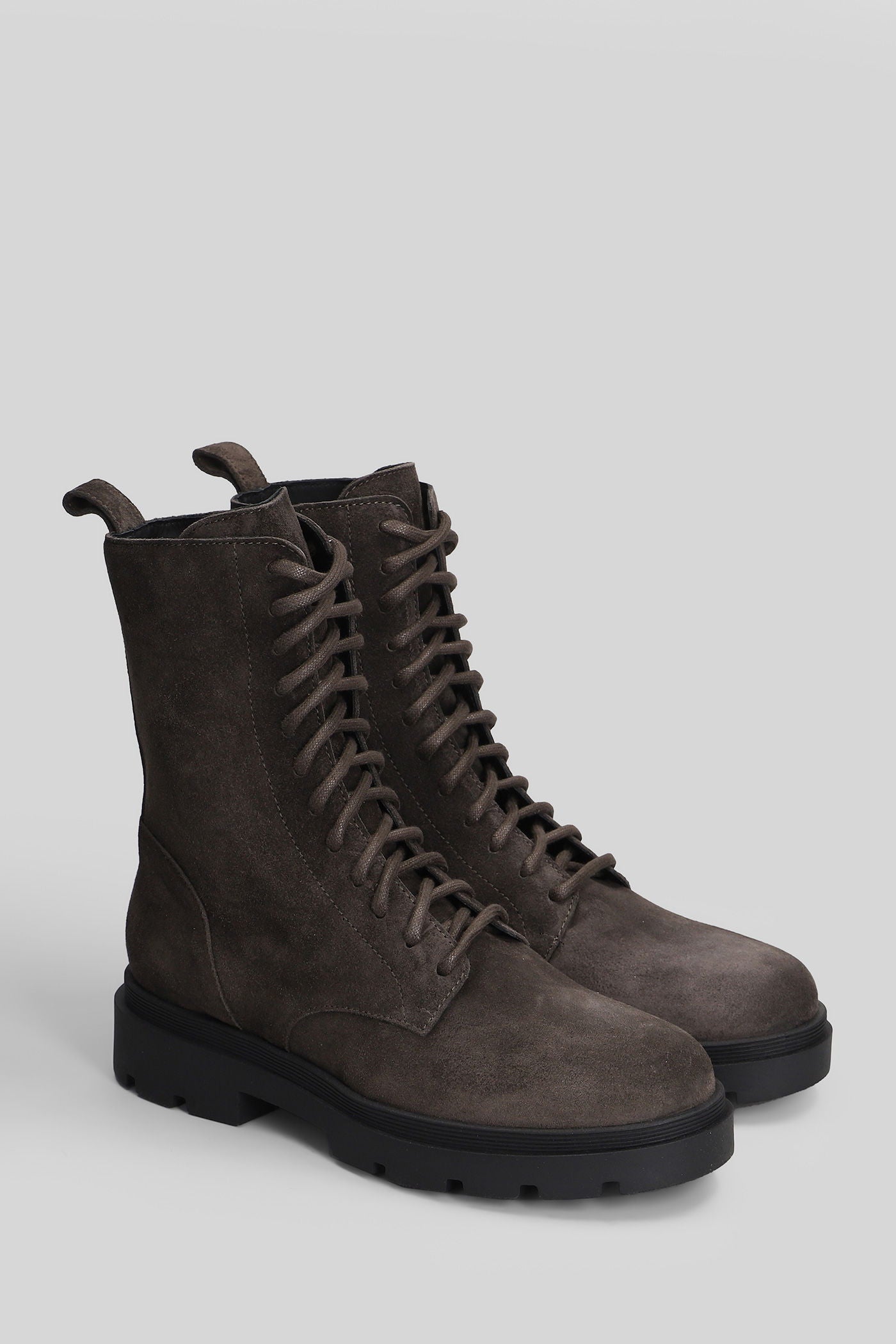 Combat boots in brown suede