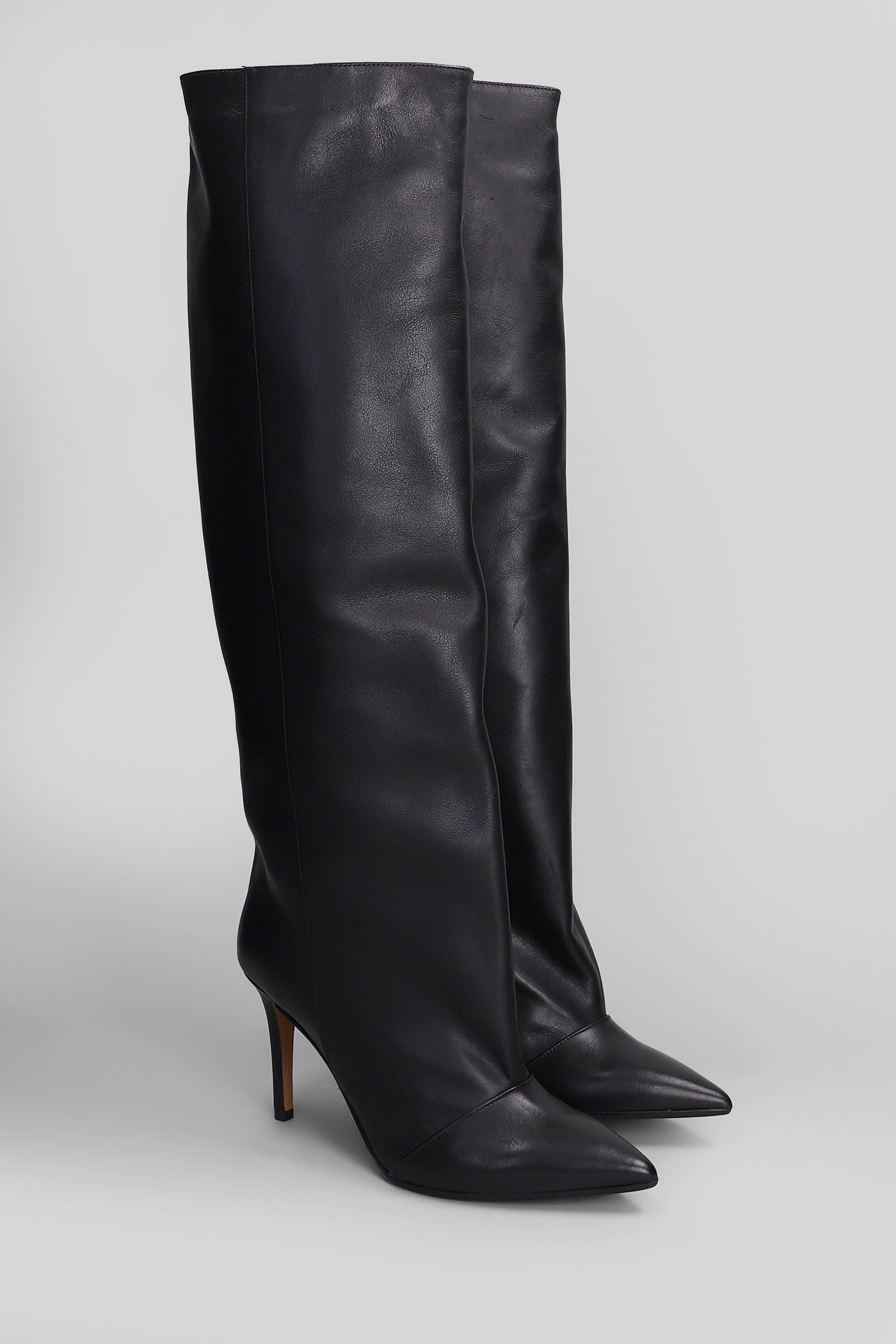 High heels boots in black leather