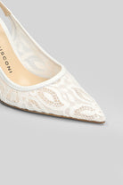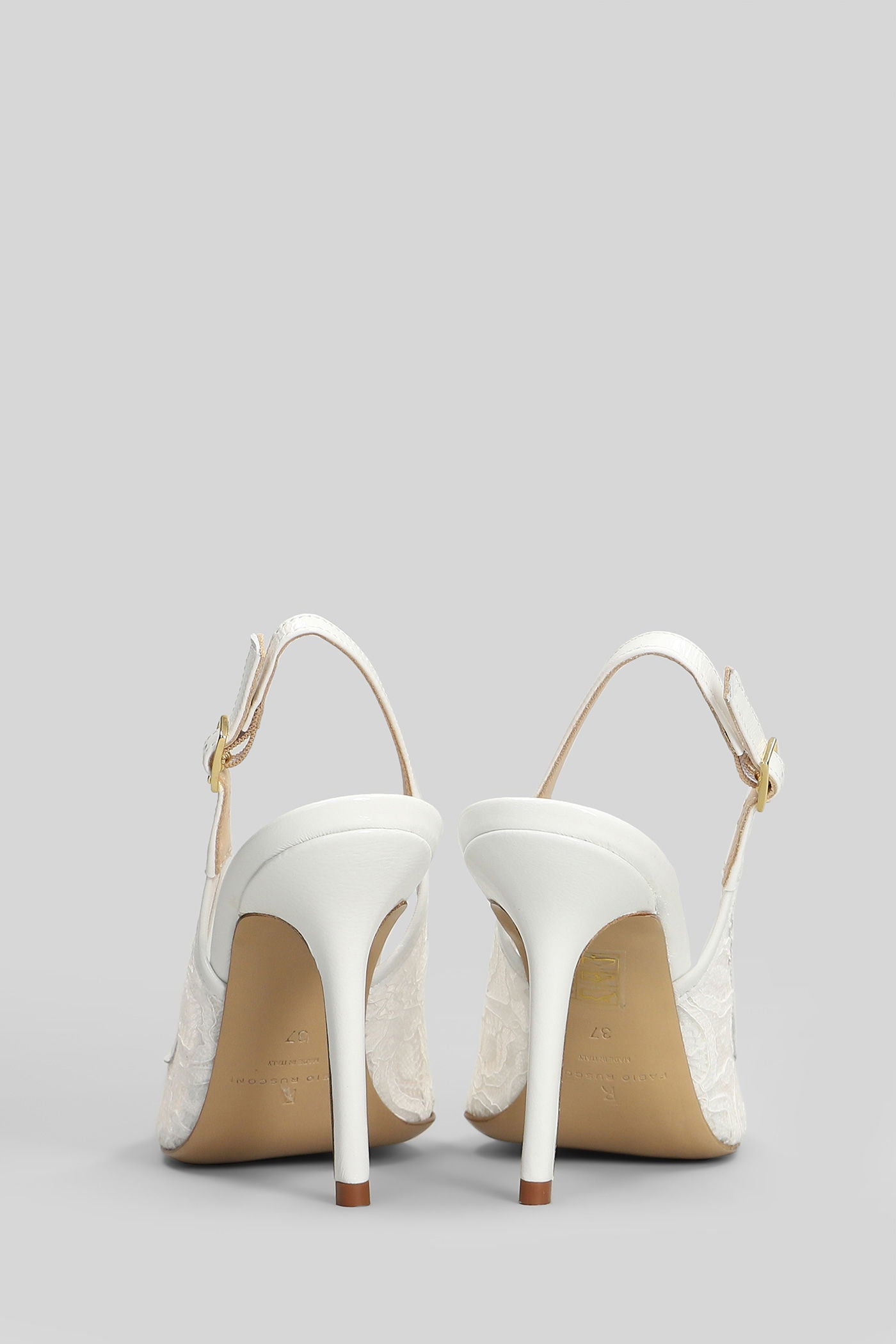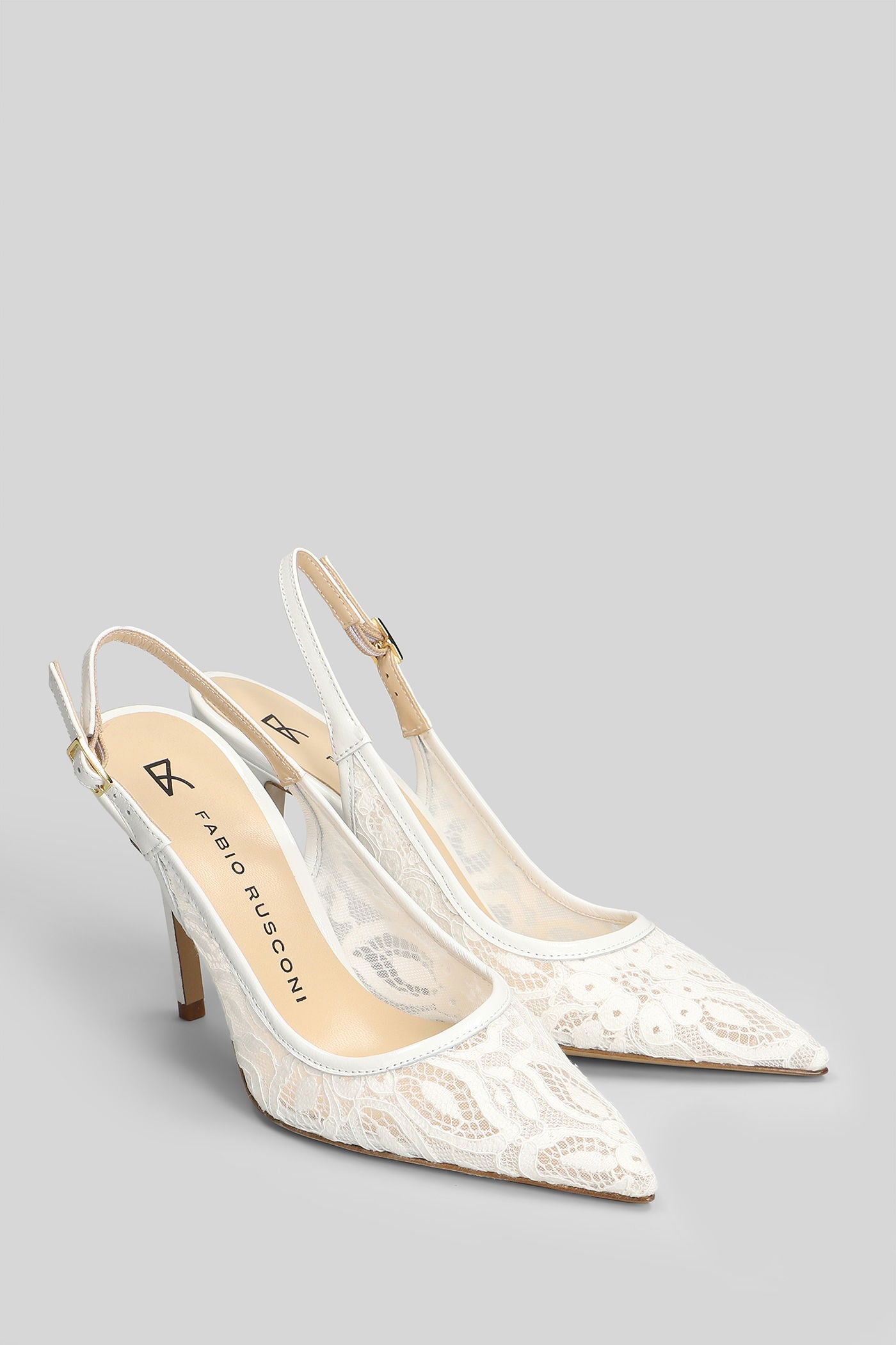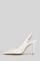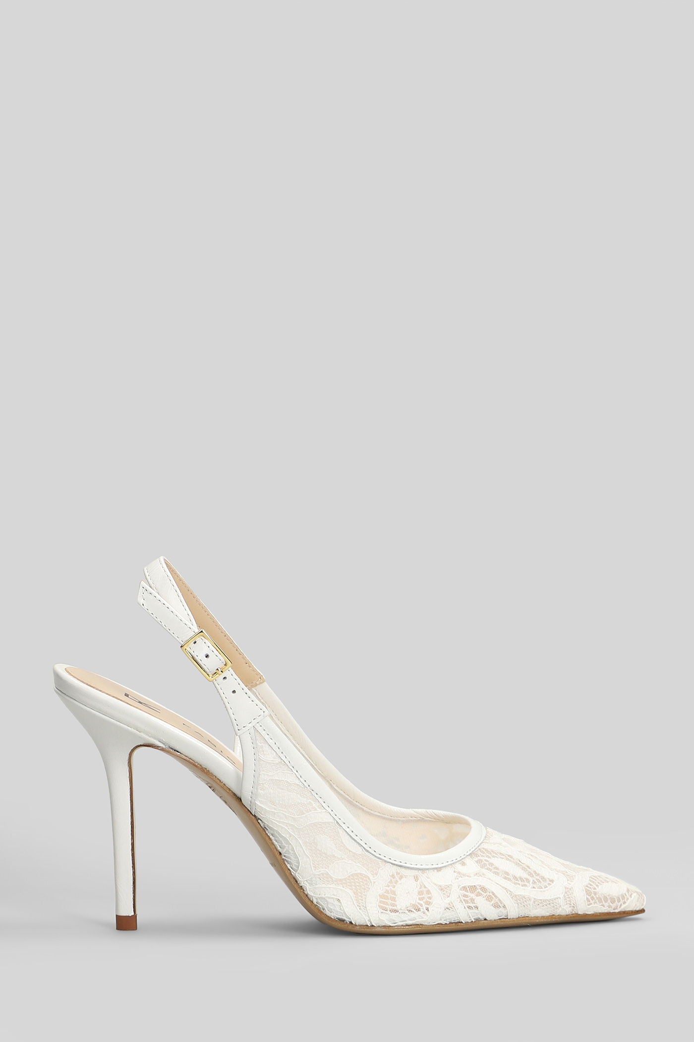 Pumps in white leather and fabric