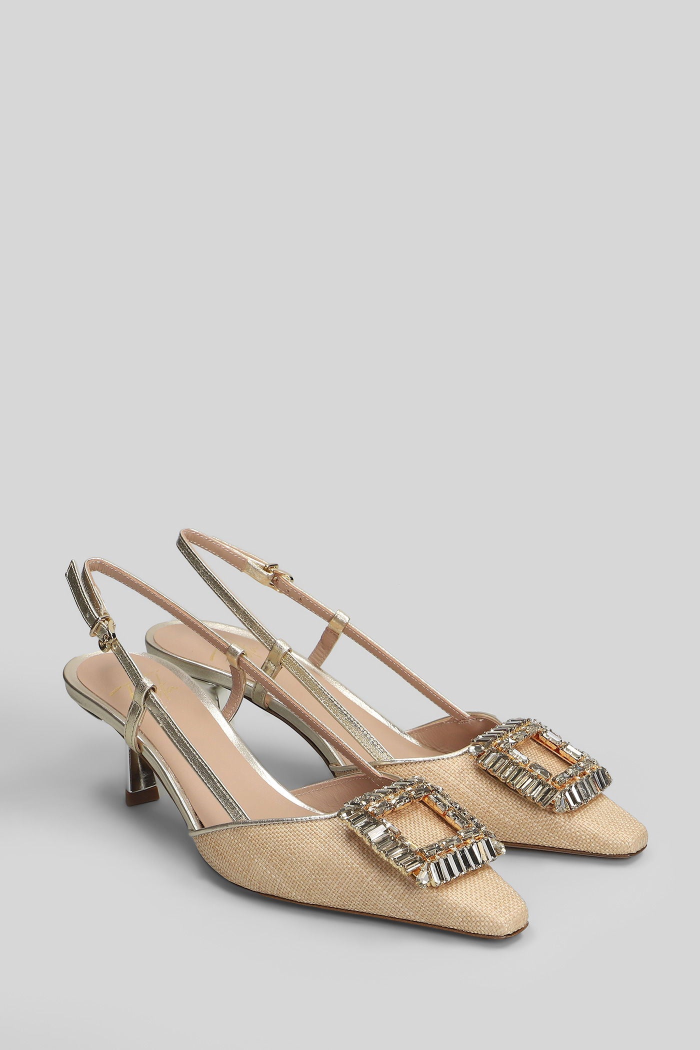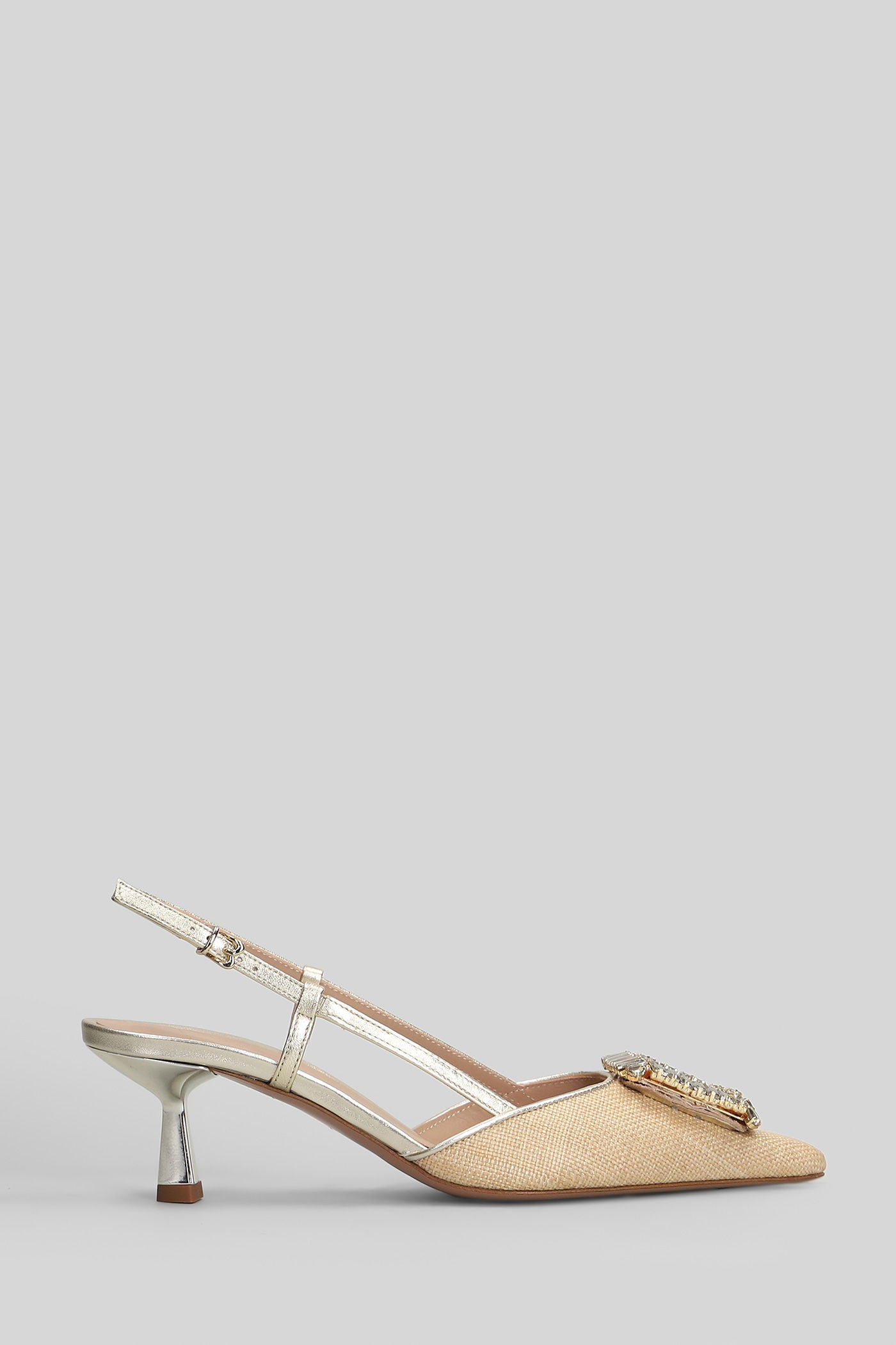 Julien Pumps in beige leather and fabric