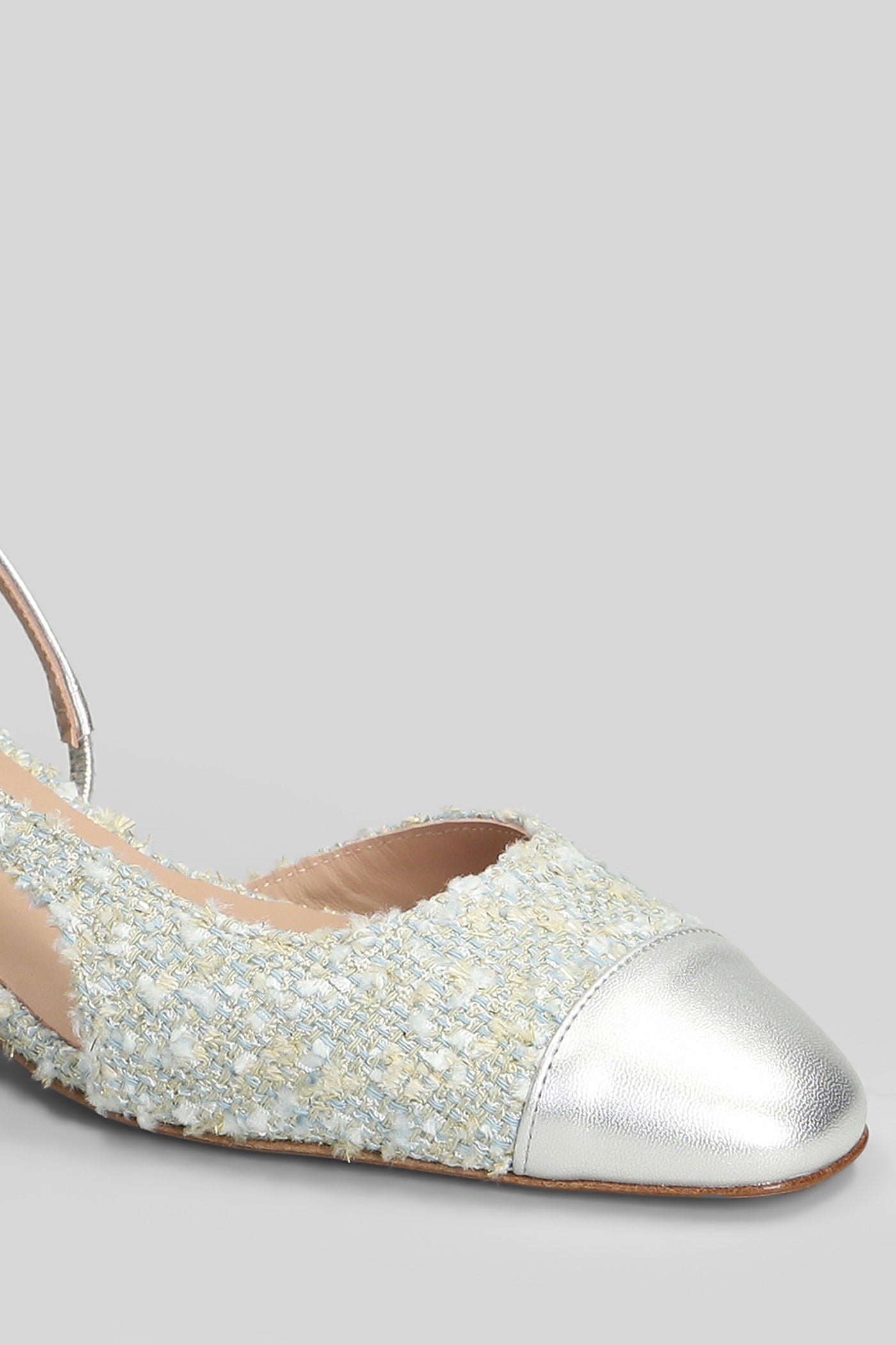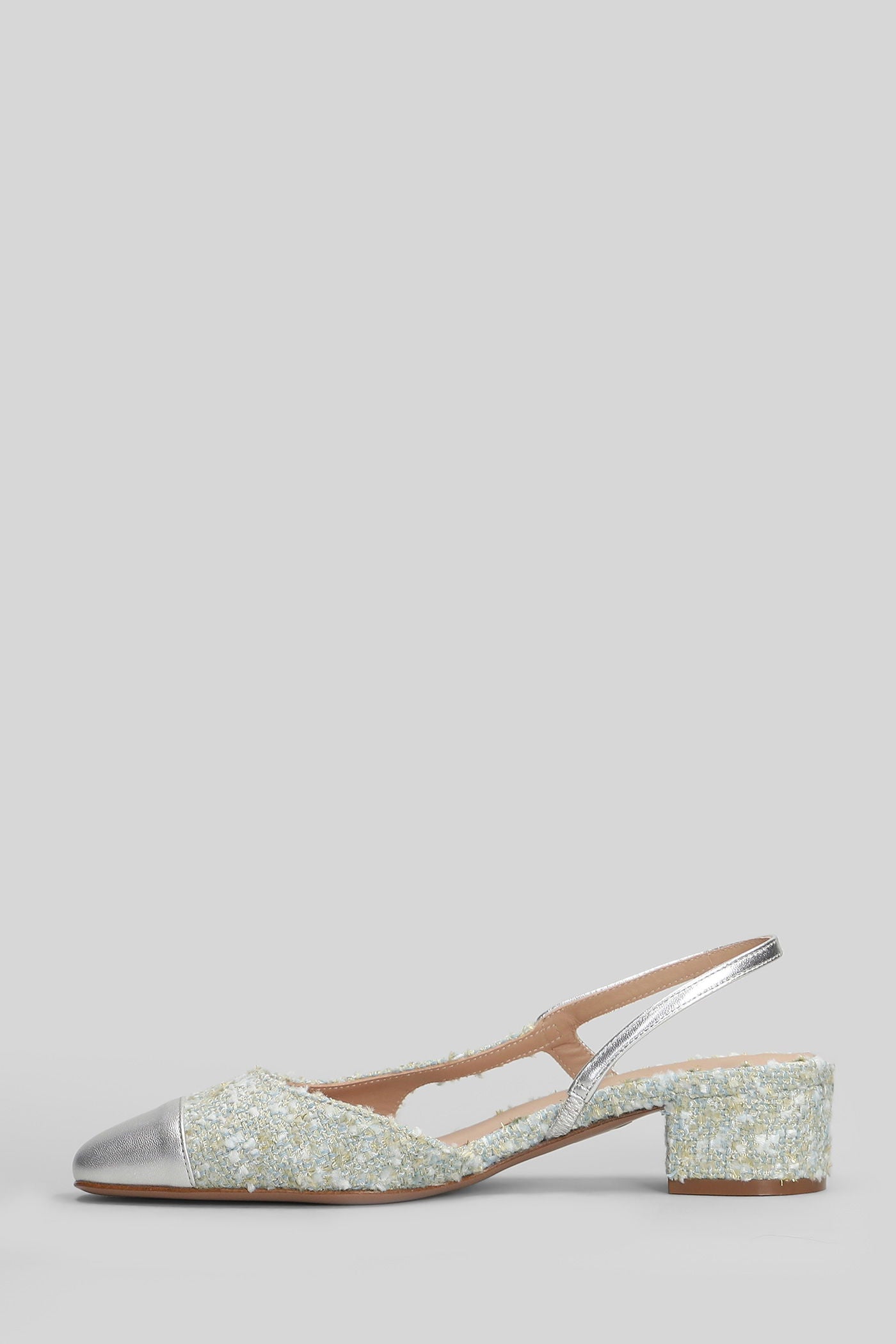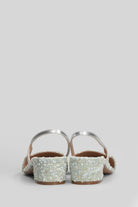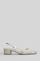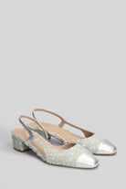 Rosette Pumps in silver leather and fabric