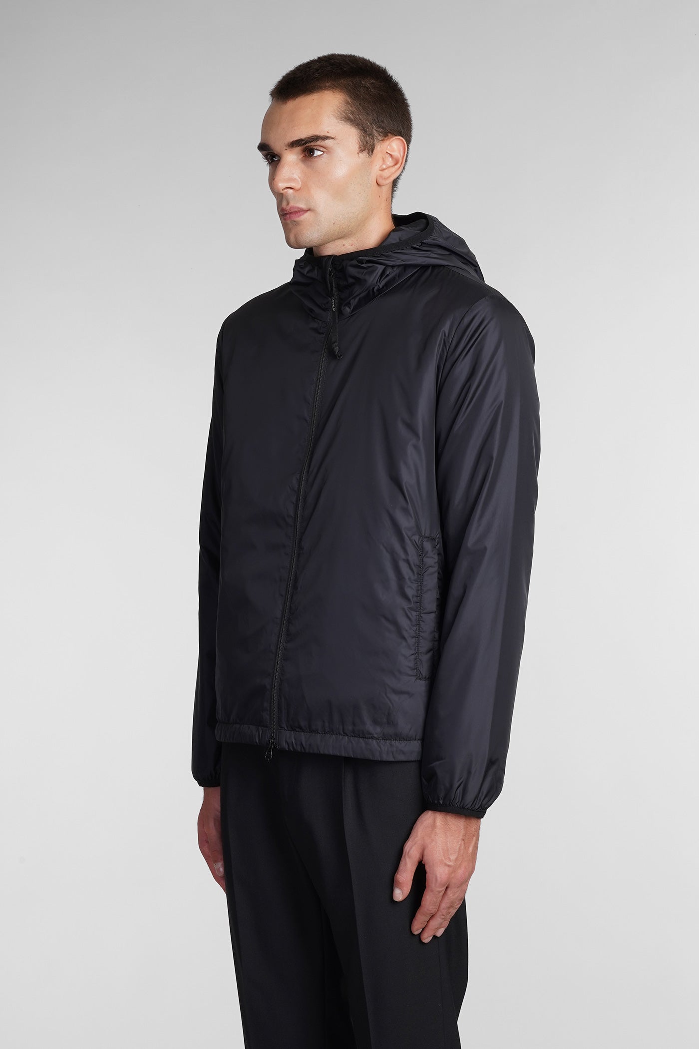 Giubb. Cappuccio Flt puffer in black polyamide