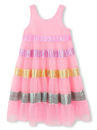 Dress woman in rose-pink polyester