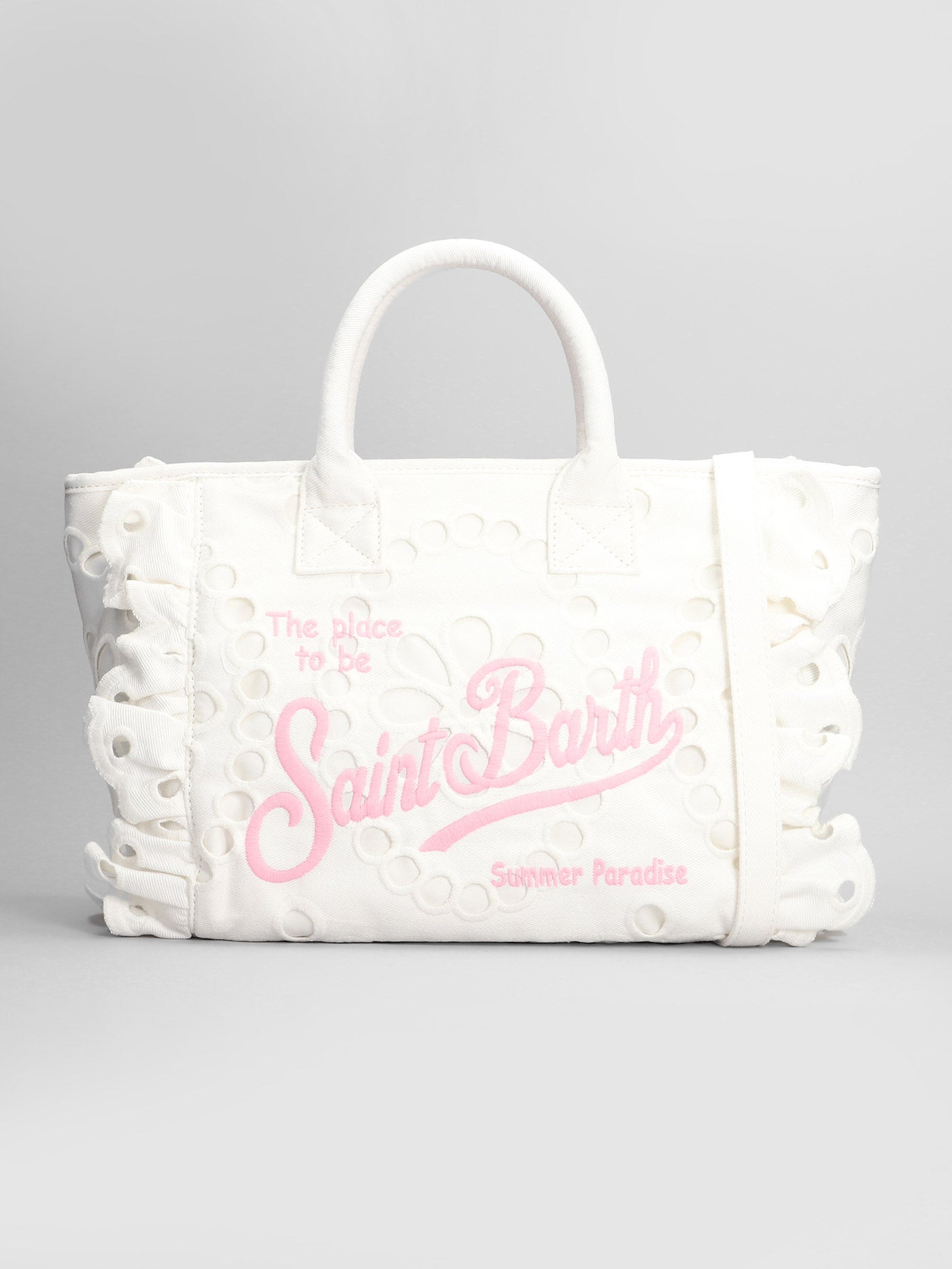 Colette volant n Tote in white cotton