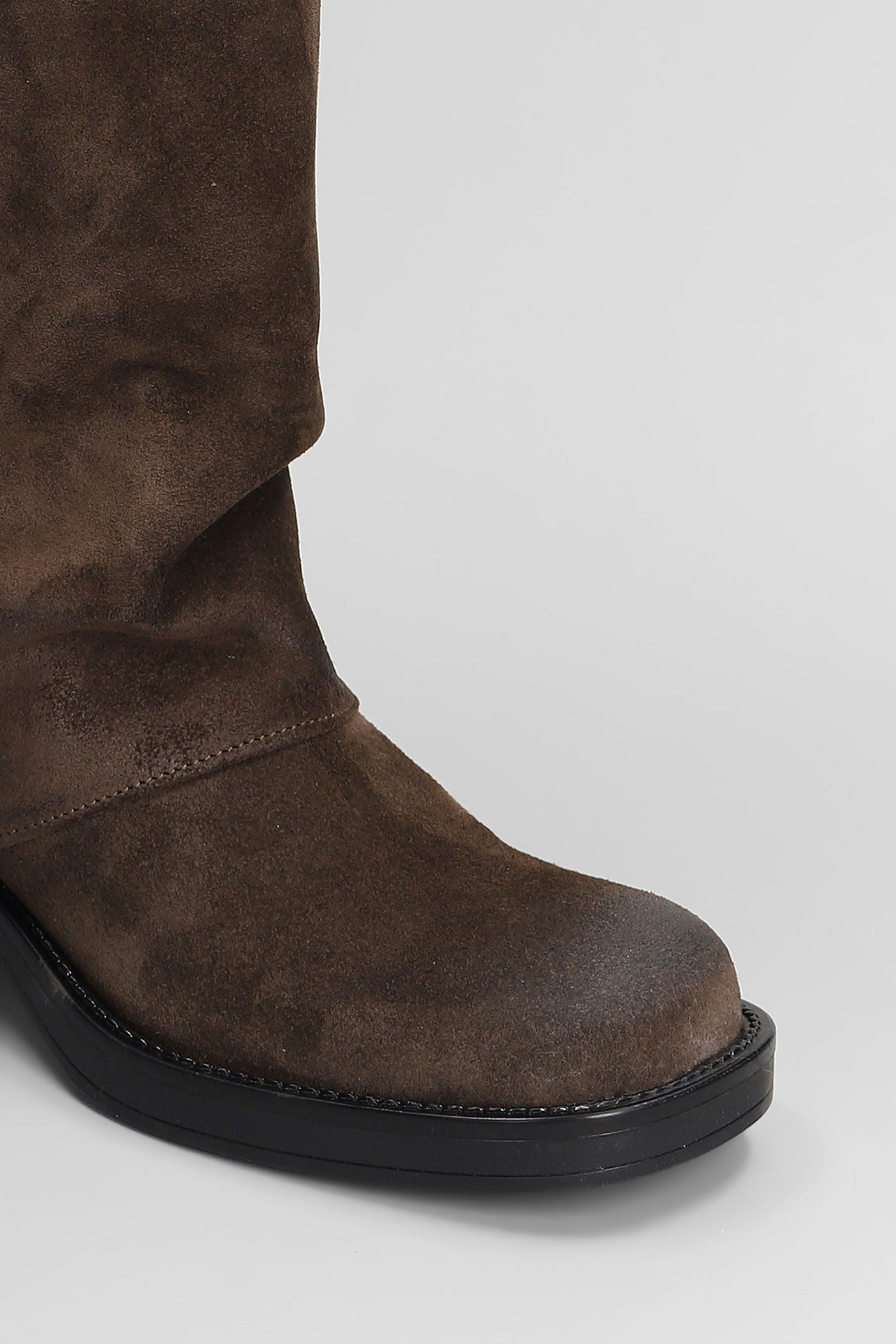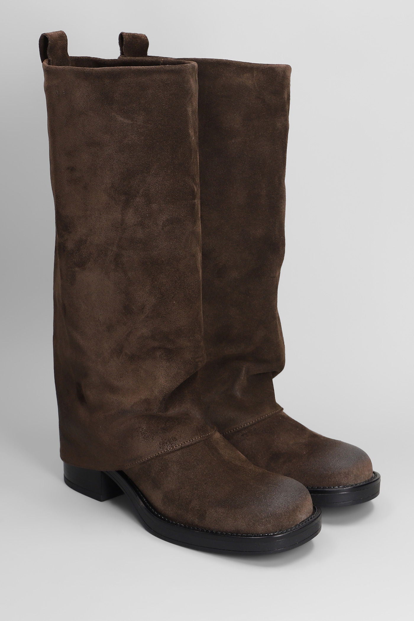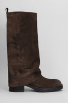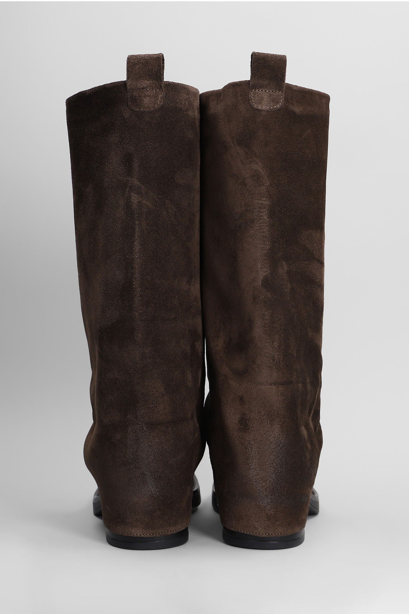 Manchester low heels boots in dark brown suede