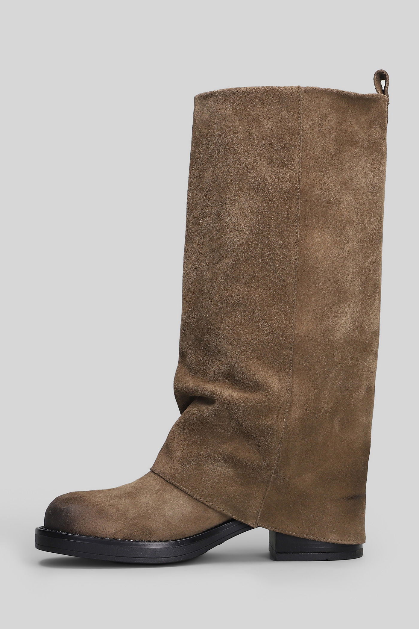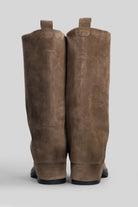 Manchester low heels boots in taupe suede