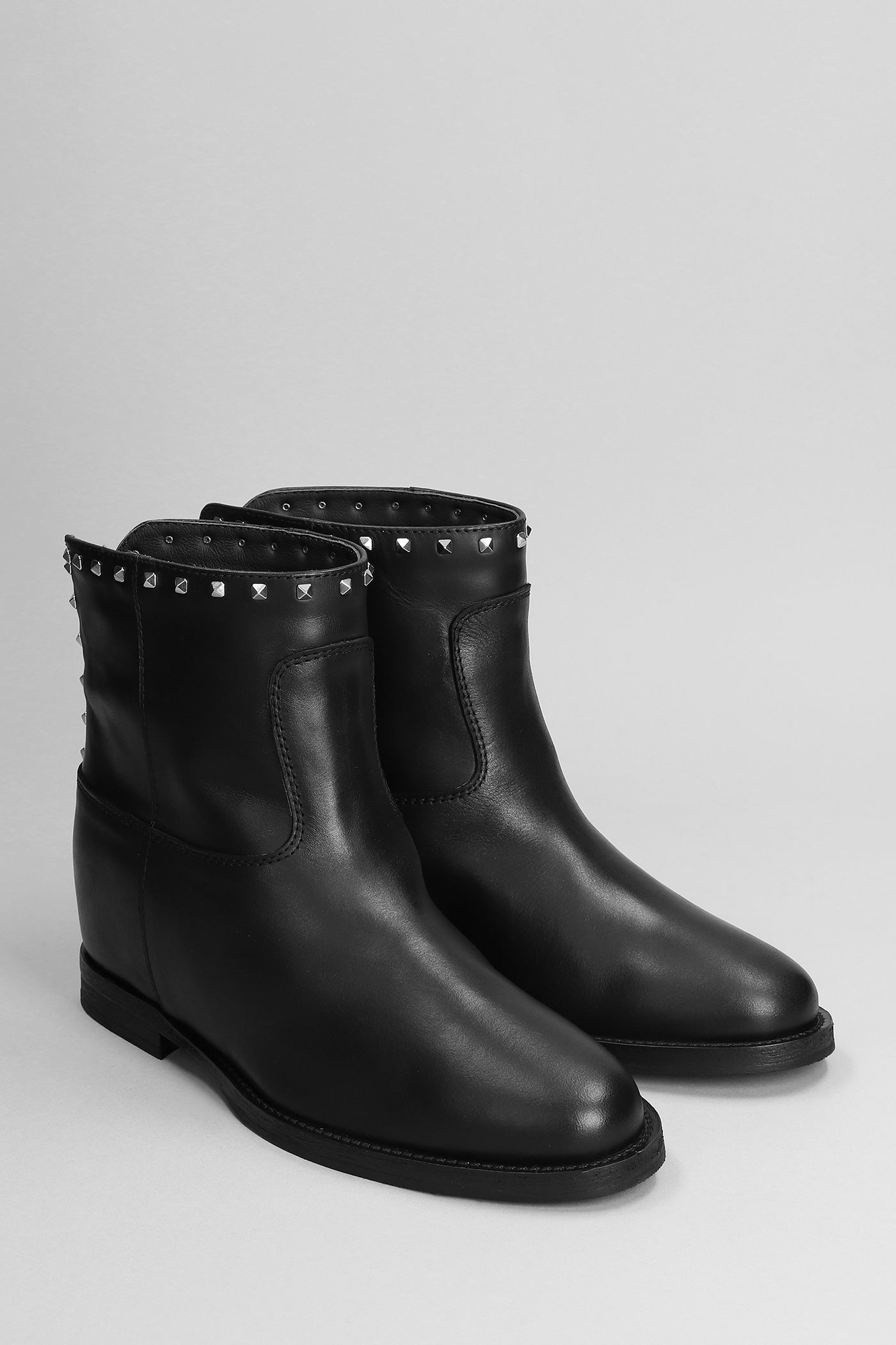 Ankle boots inside wedge in black leather