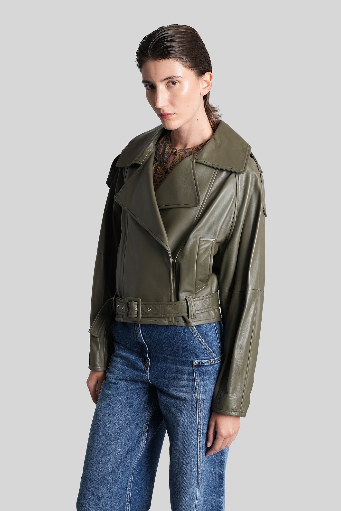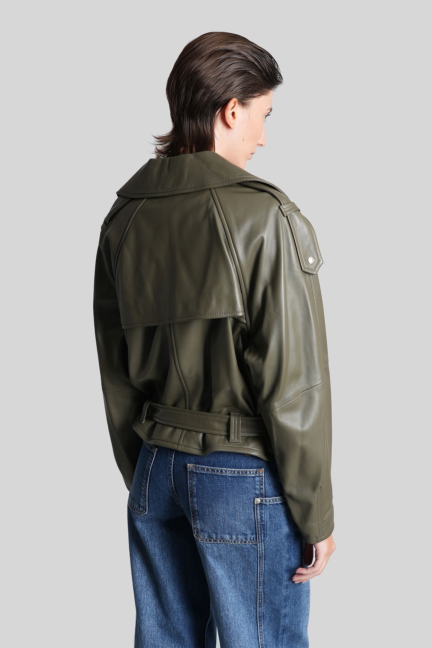 Yuria Biker jacket in green leather