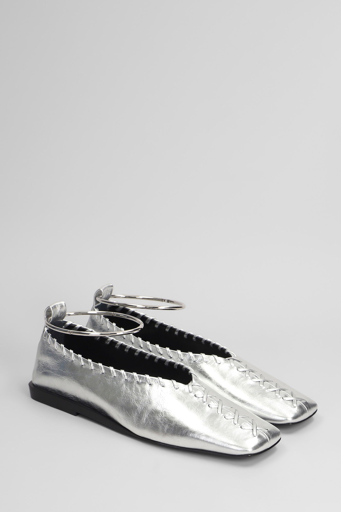 Ballet flats in silver leather