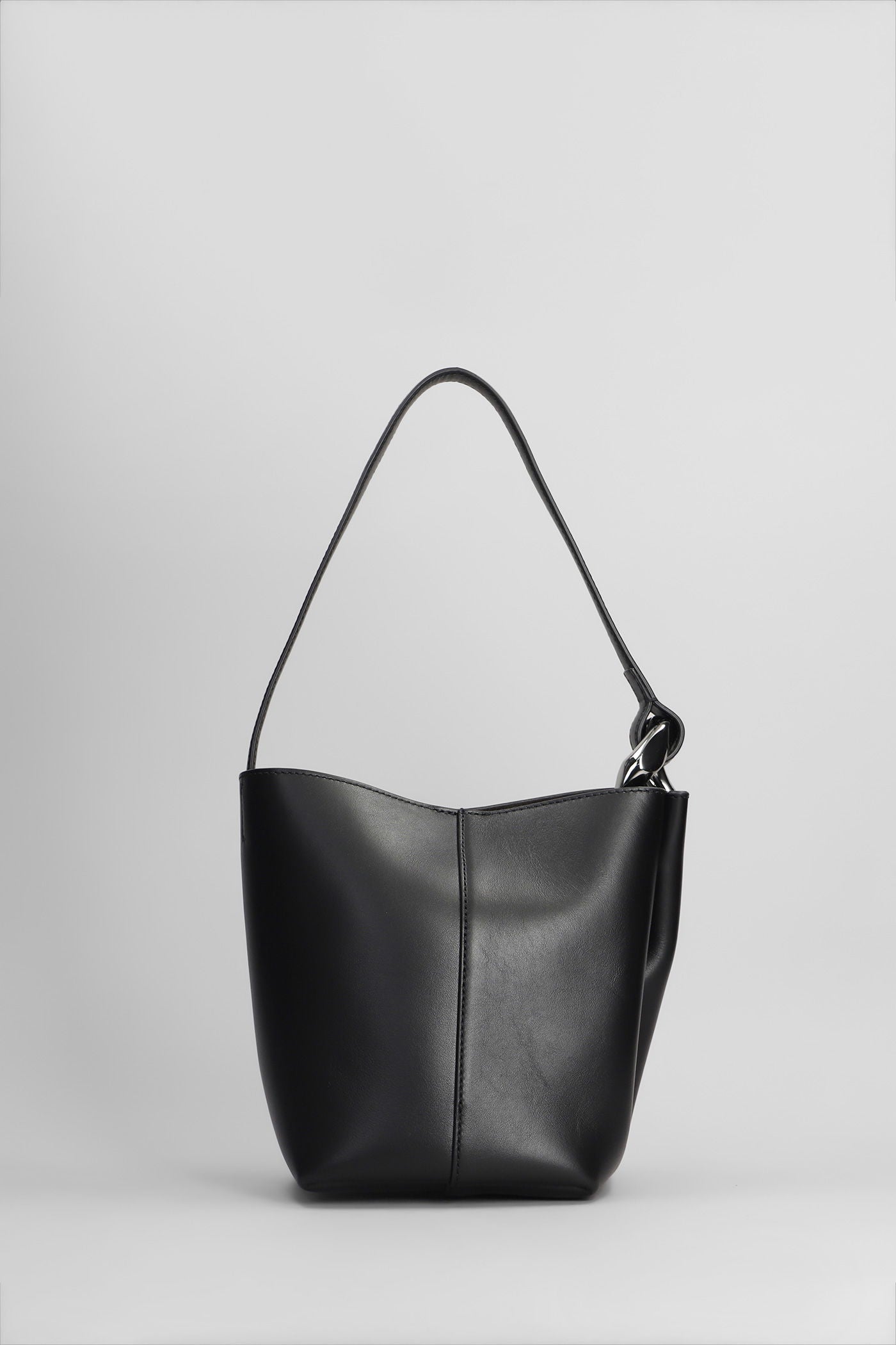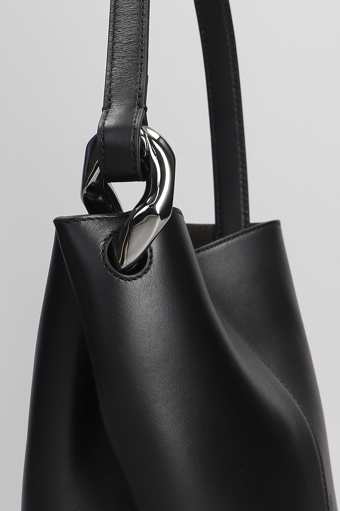 Corner bucket Shoulder bag in black leather