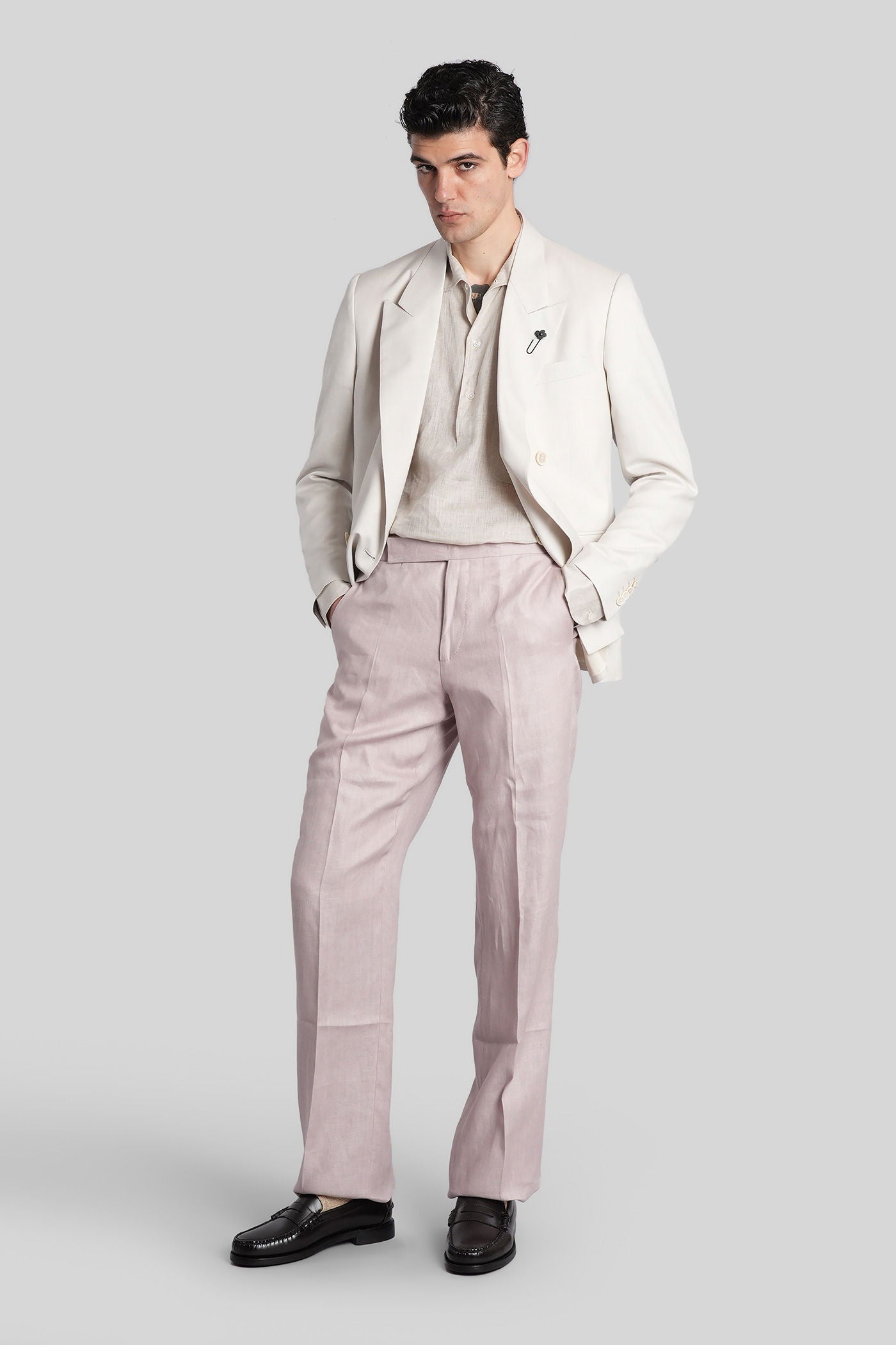 Pants in rose-pink linen