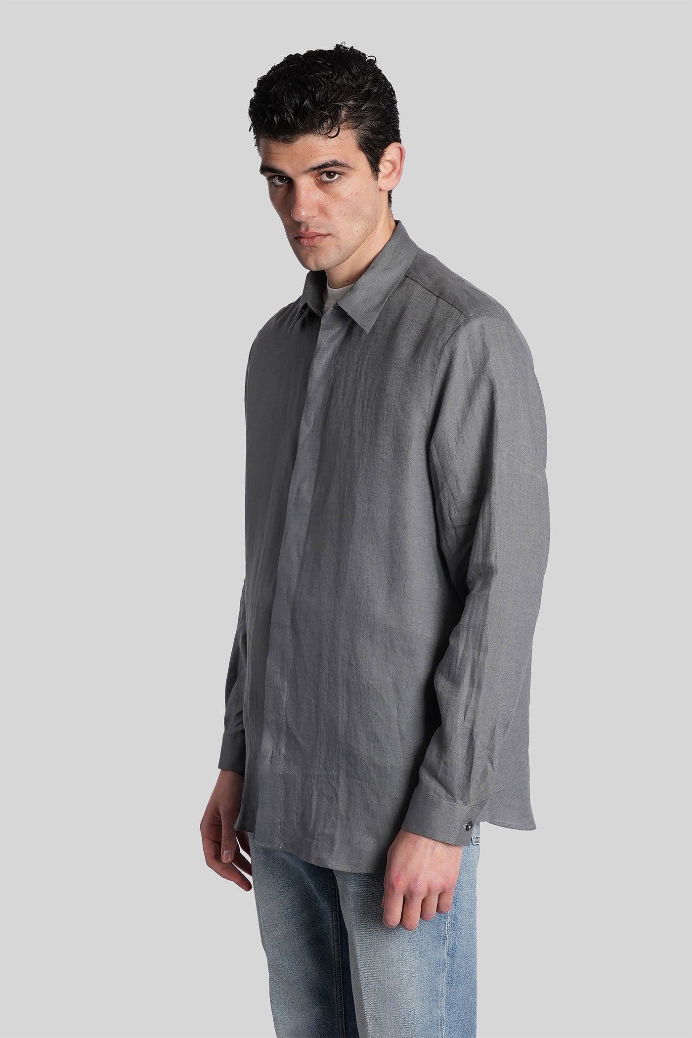 Shirt in grey linen