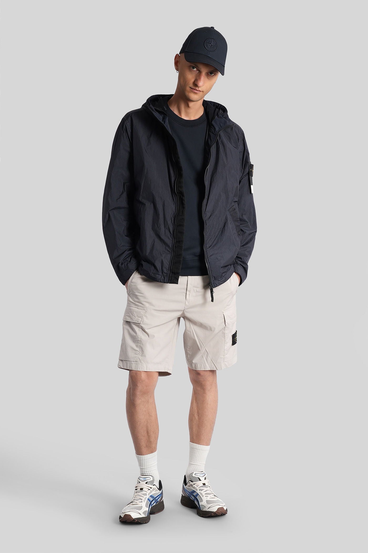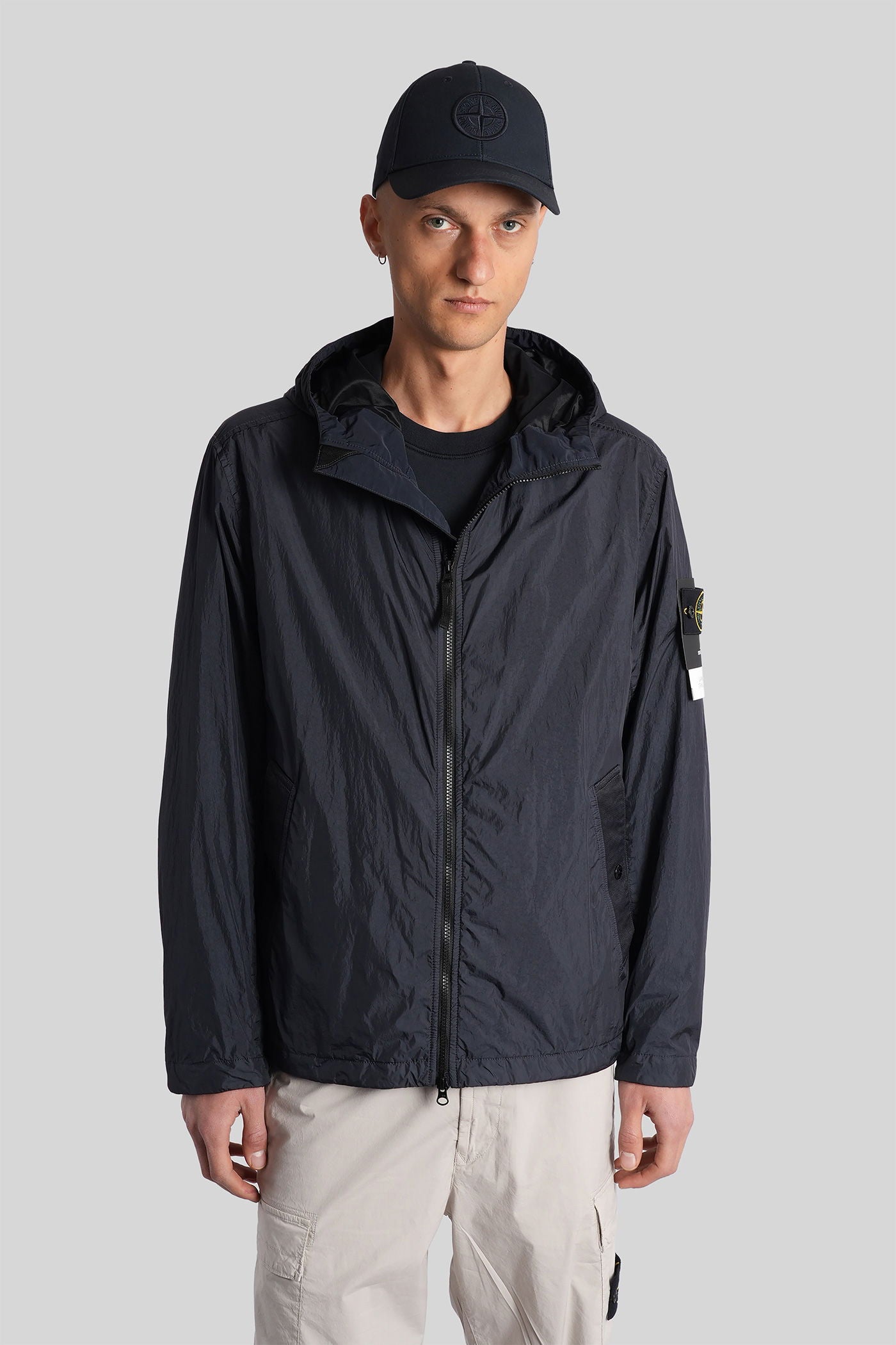 Casual jacket in blue polyamide