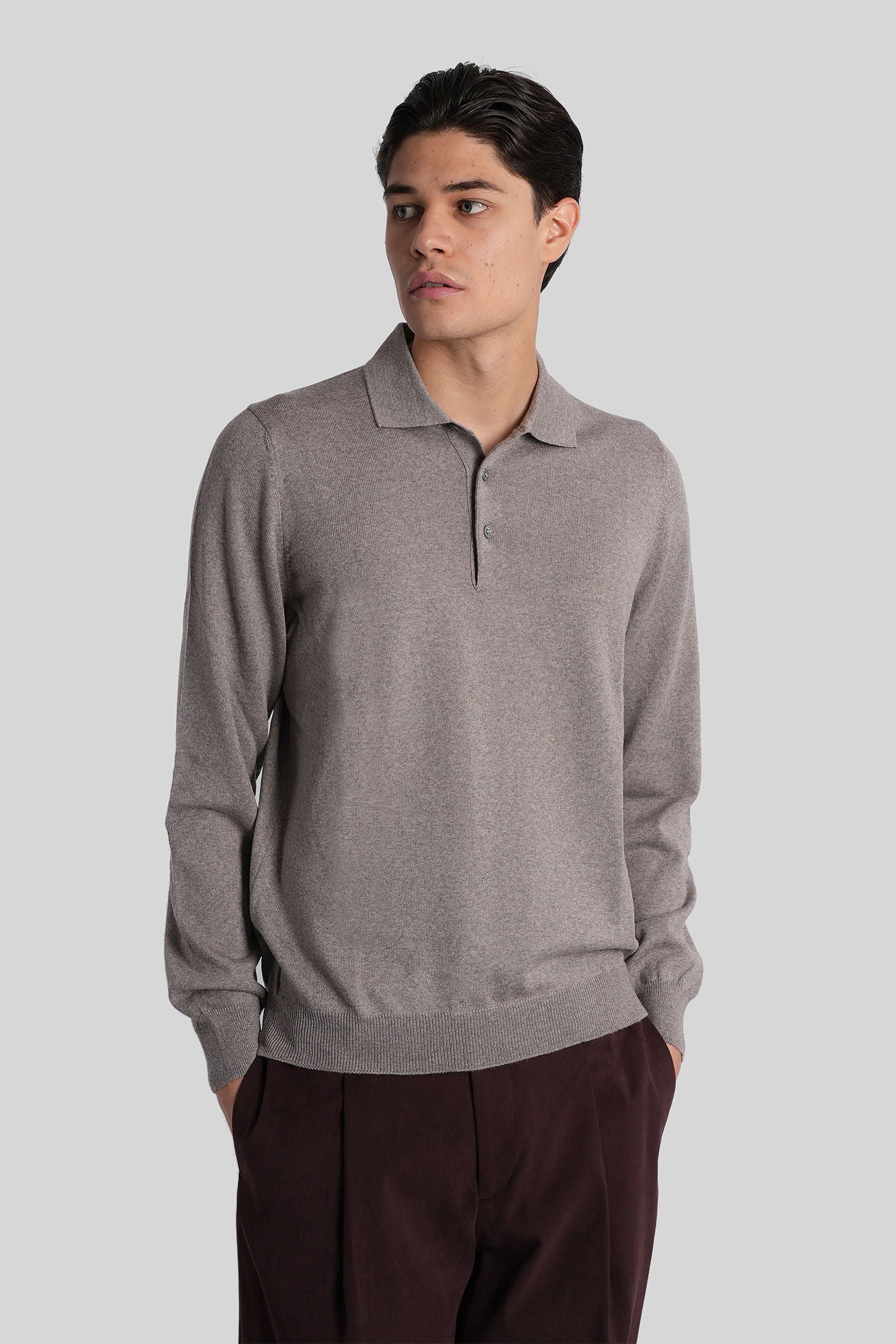 Polo in taupe wool