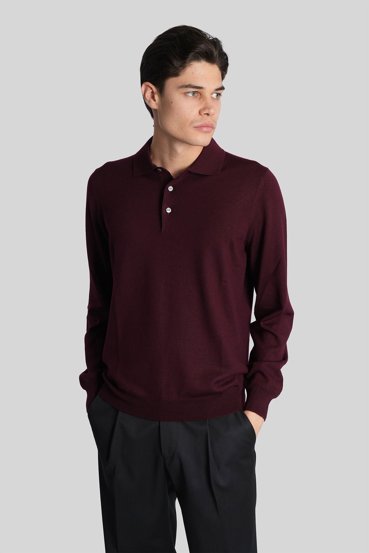 Polo in bordeaux wool