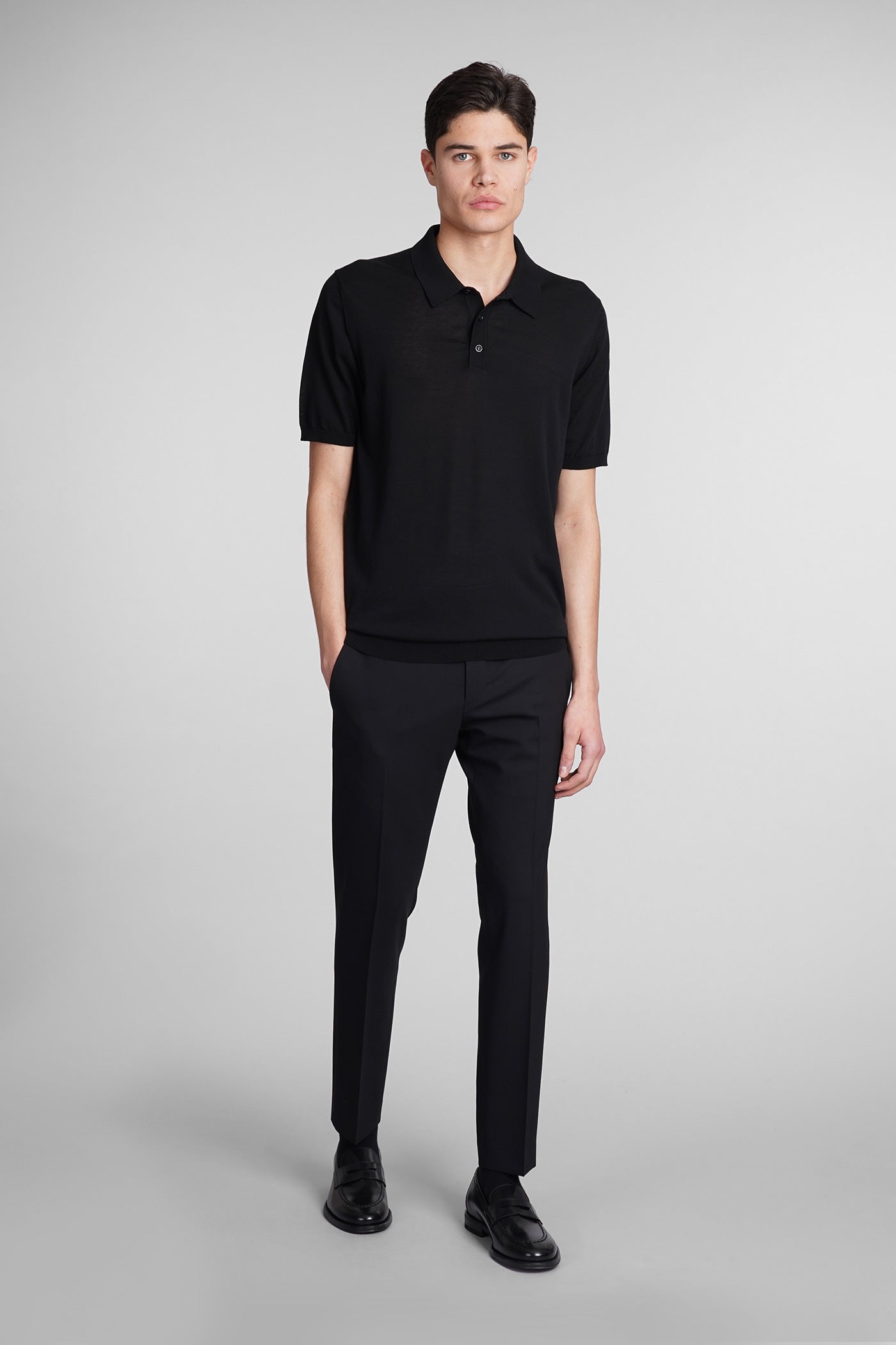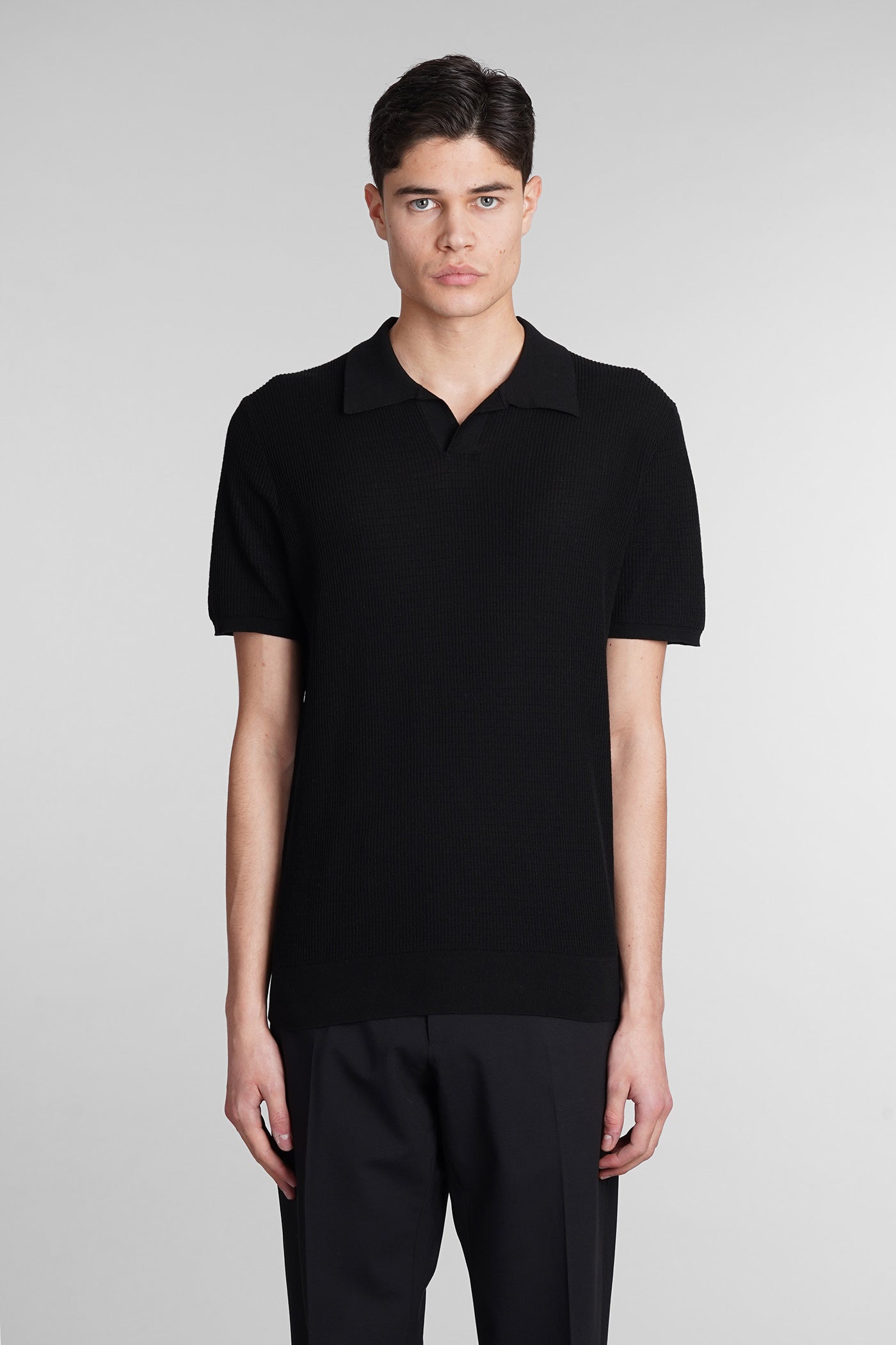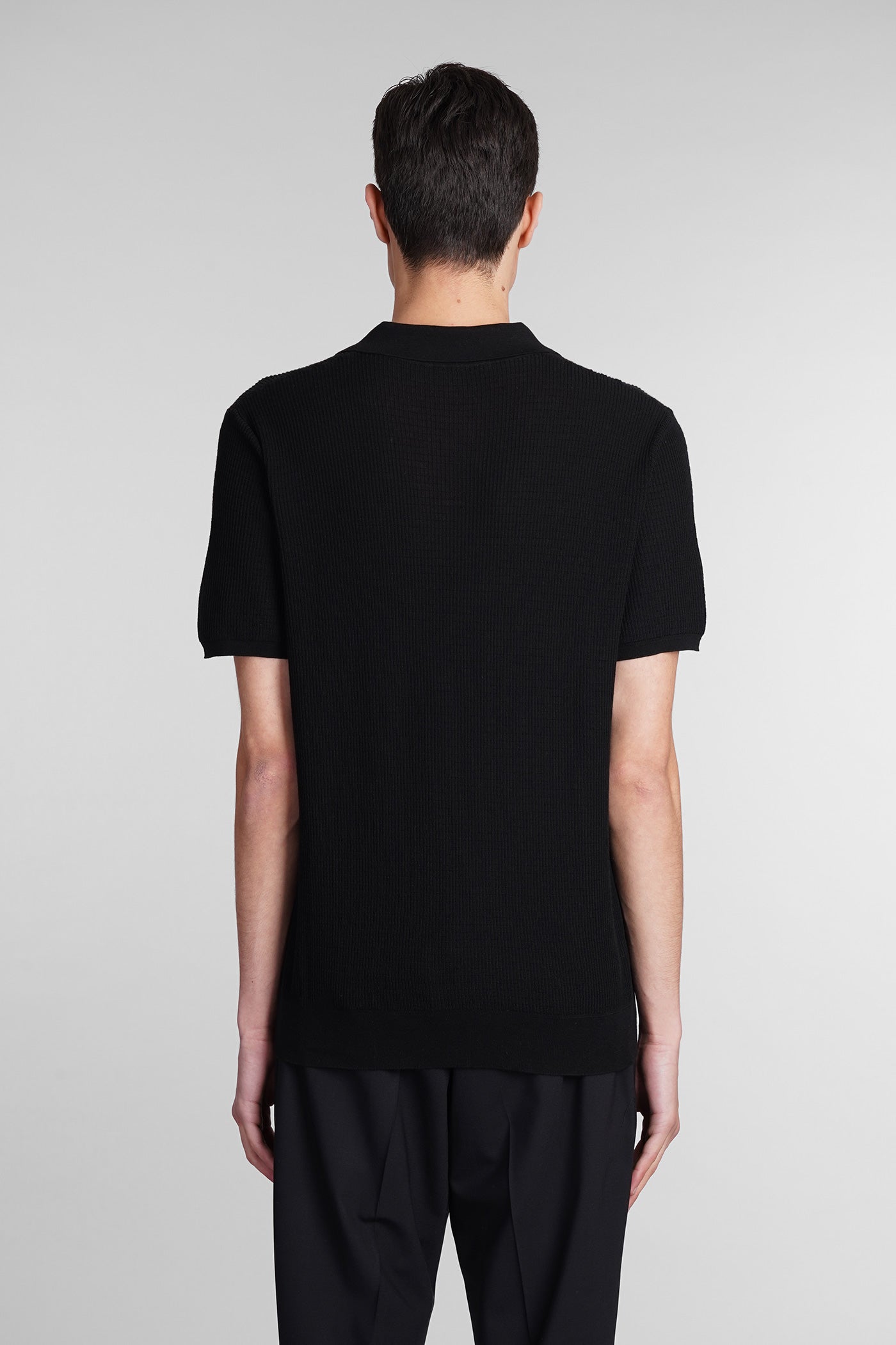 Polo in black wool and polyester