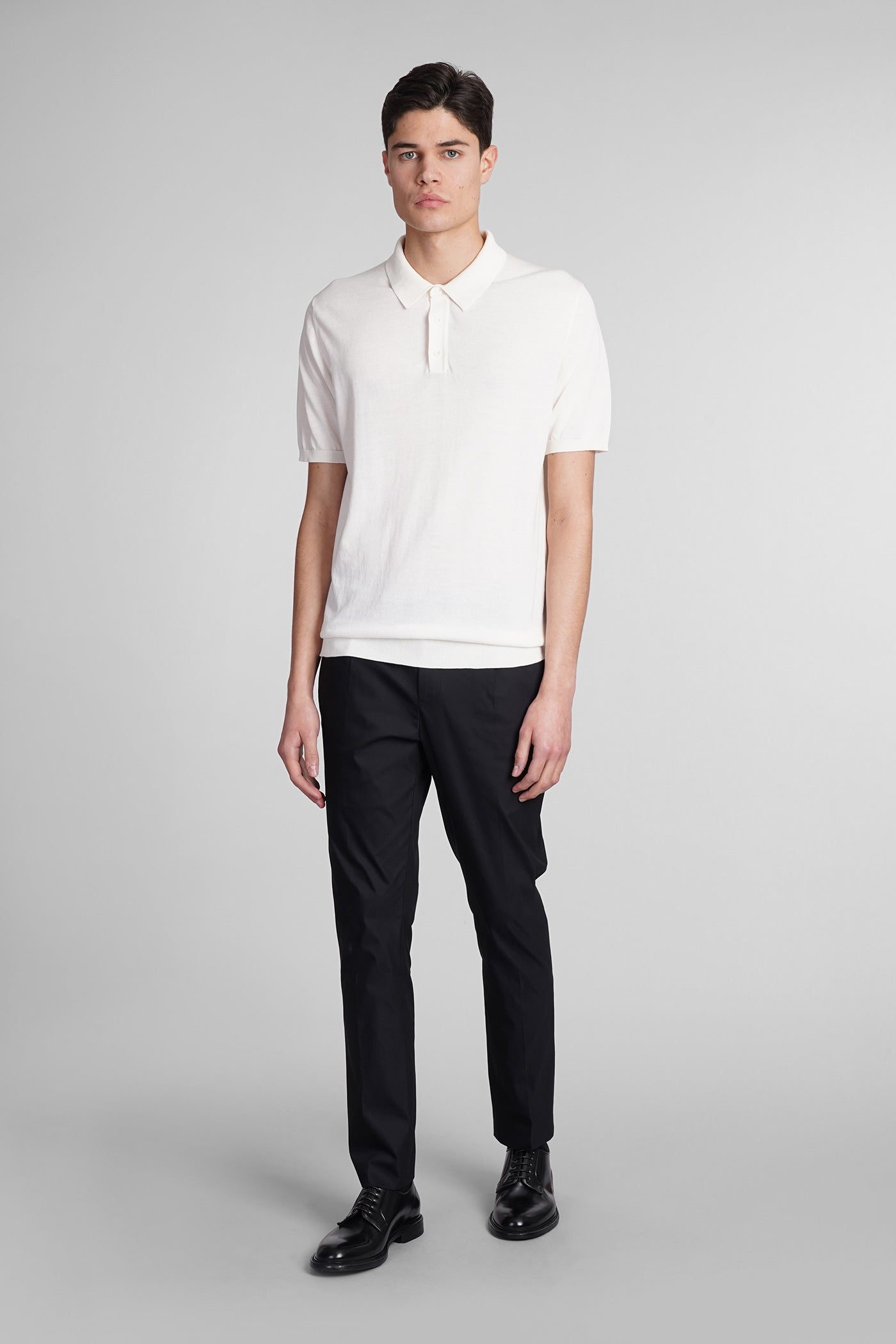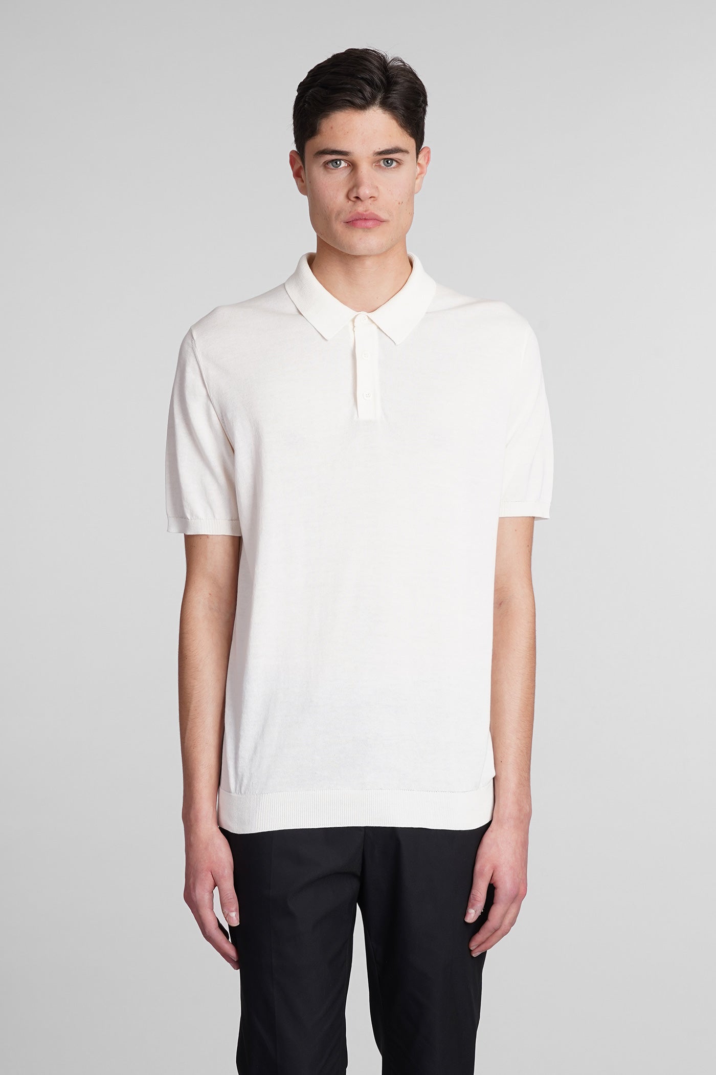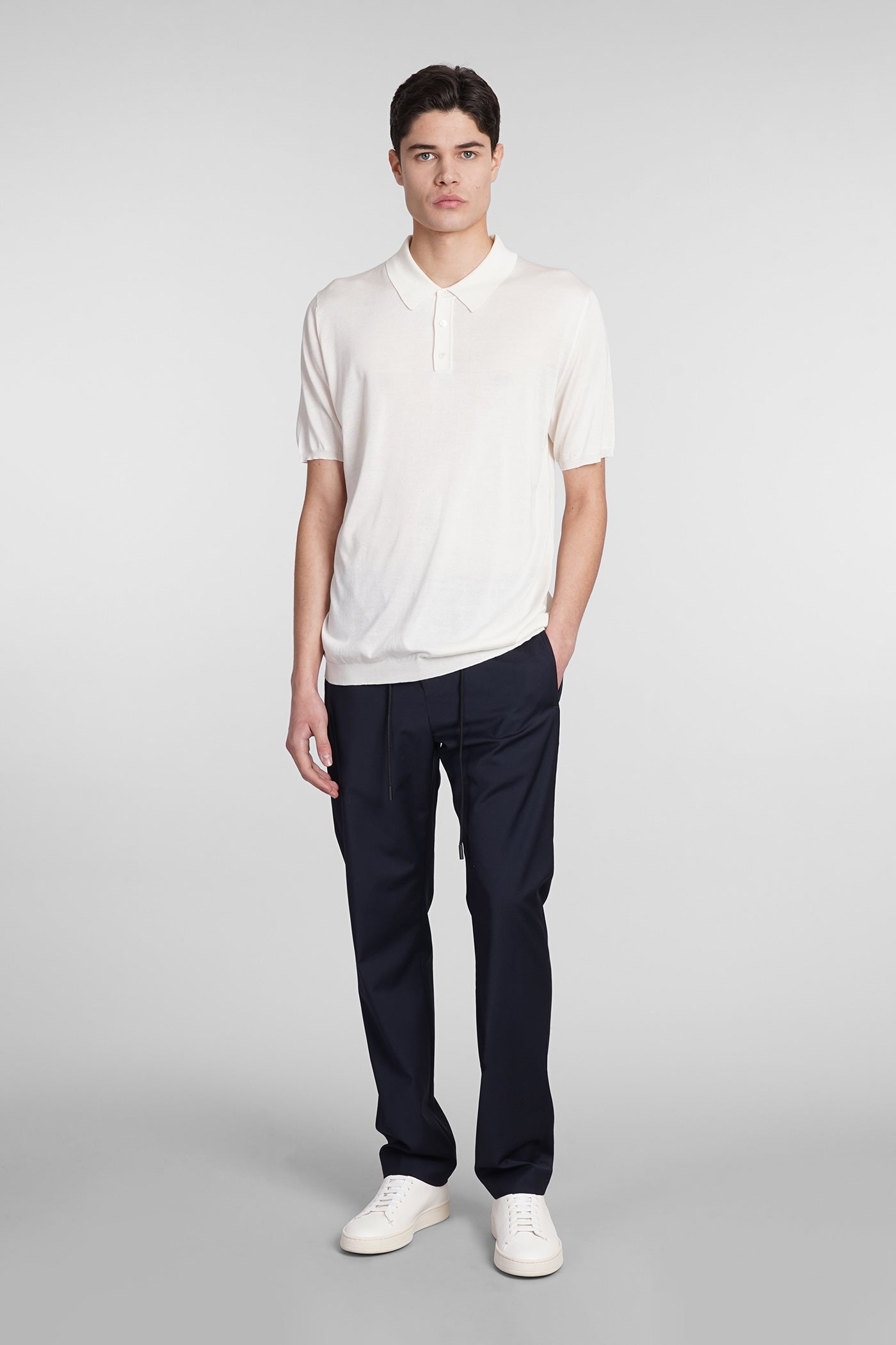 Polo in white wool and polyester