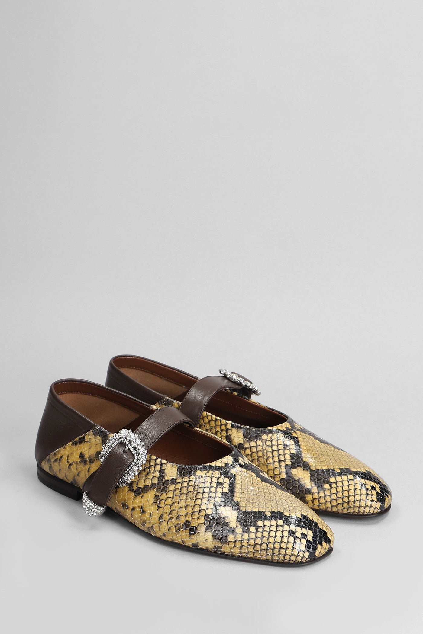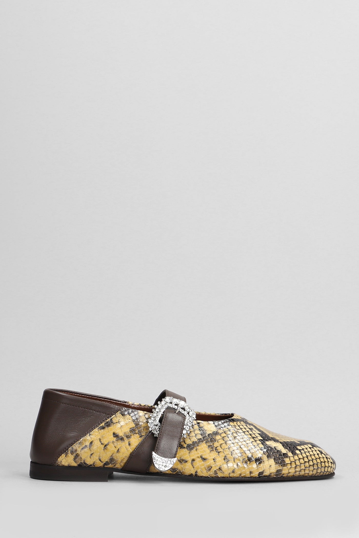 Ballerina Buckle Ballet flats in python print leather