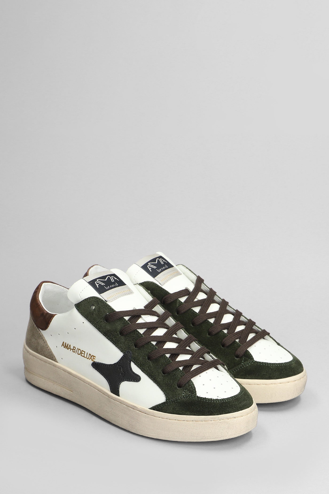 Sneakers in white suede and leather