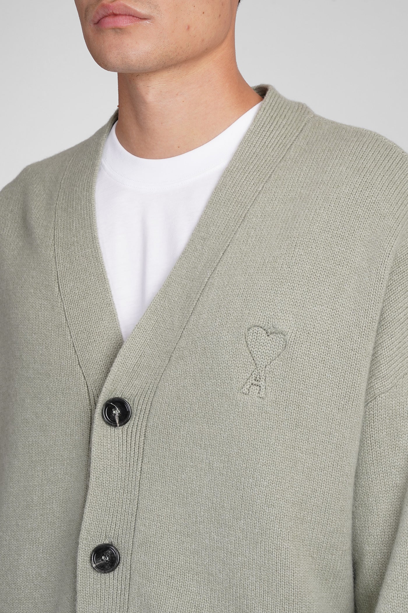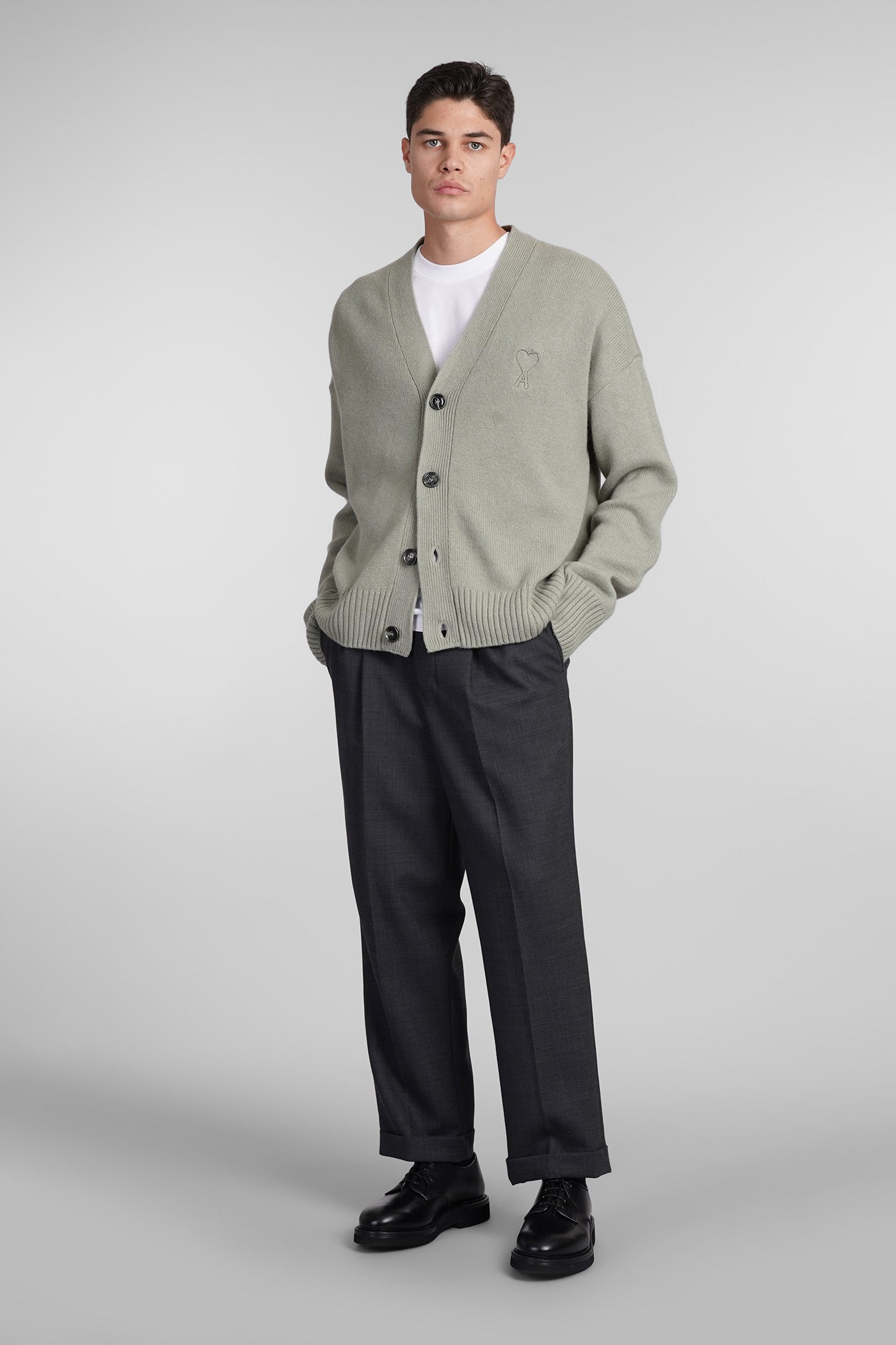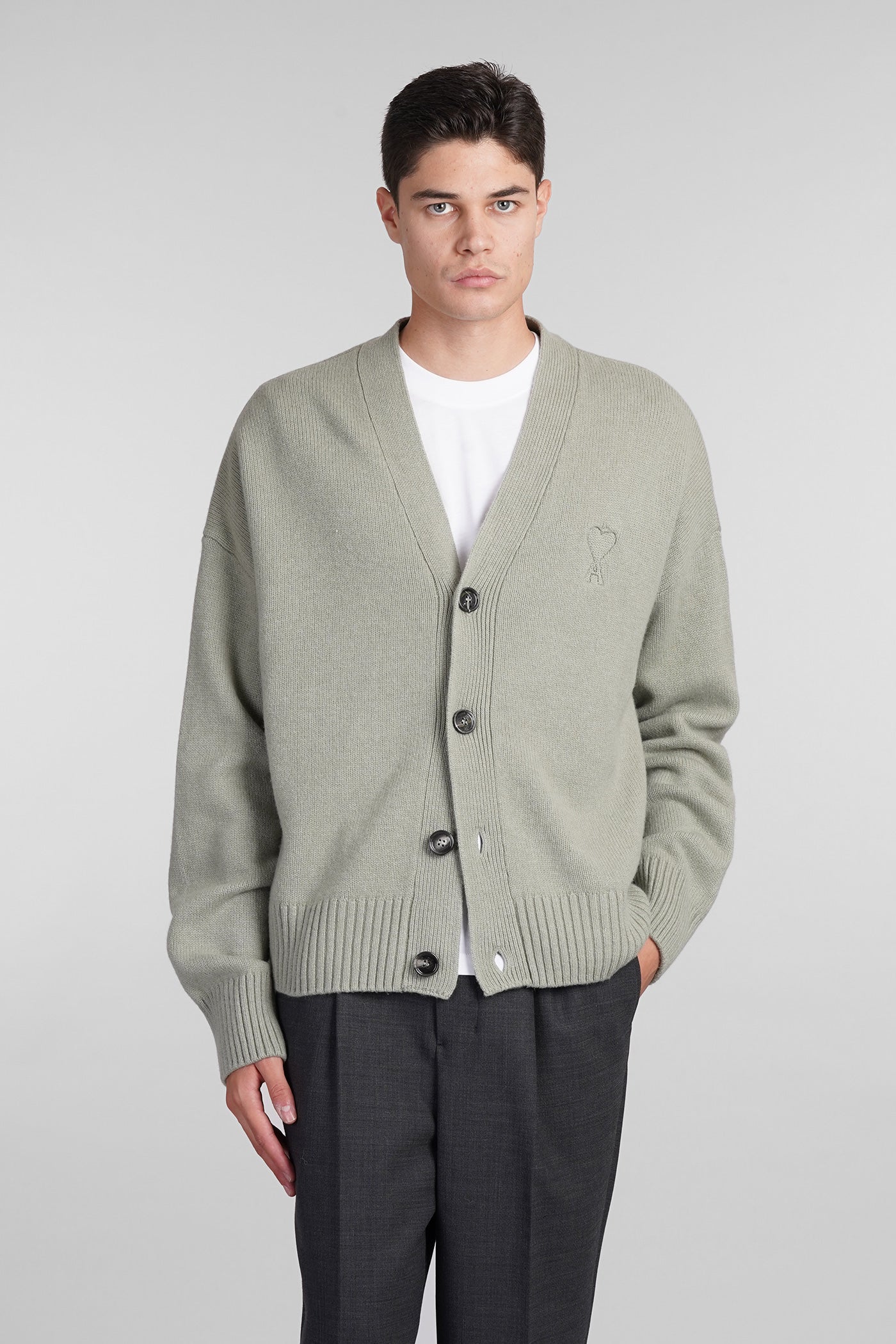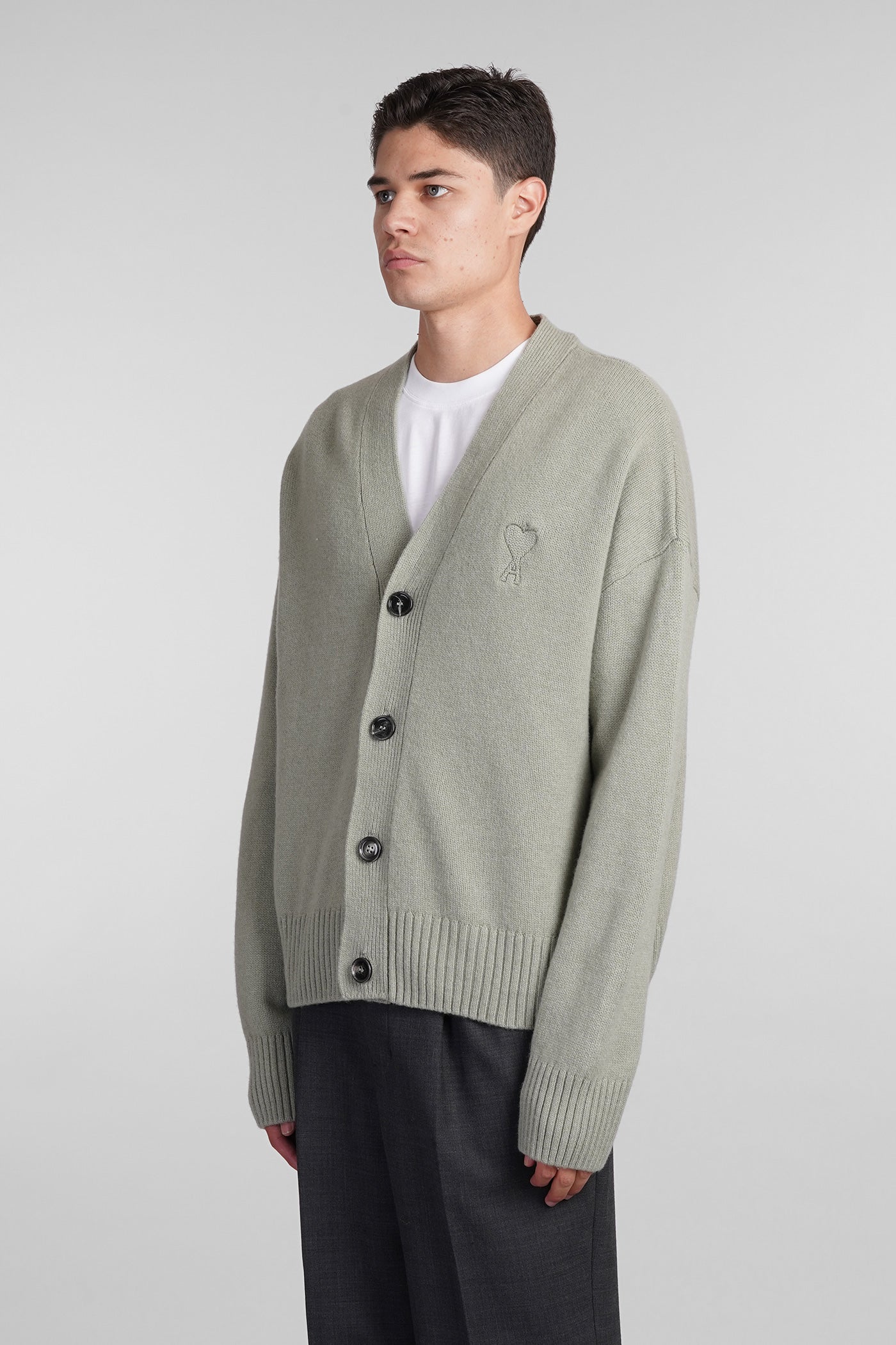 Cardigan in green wool