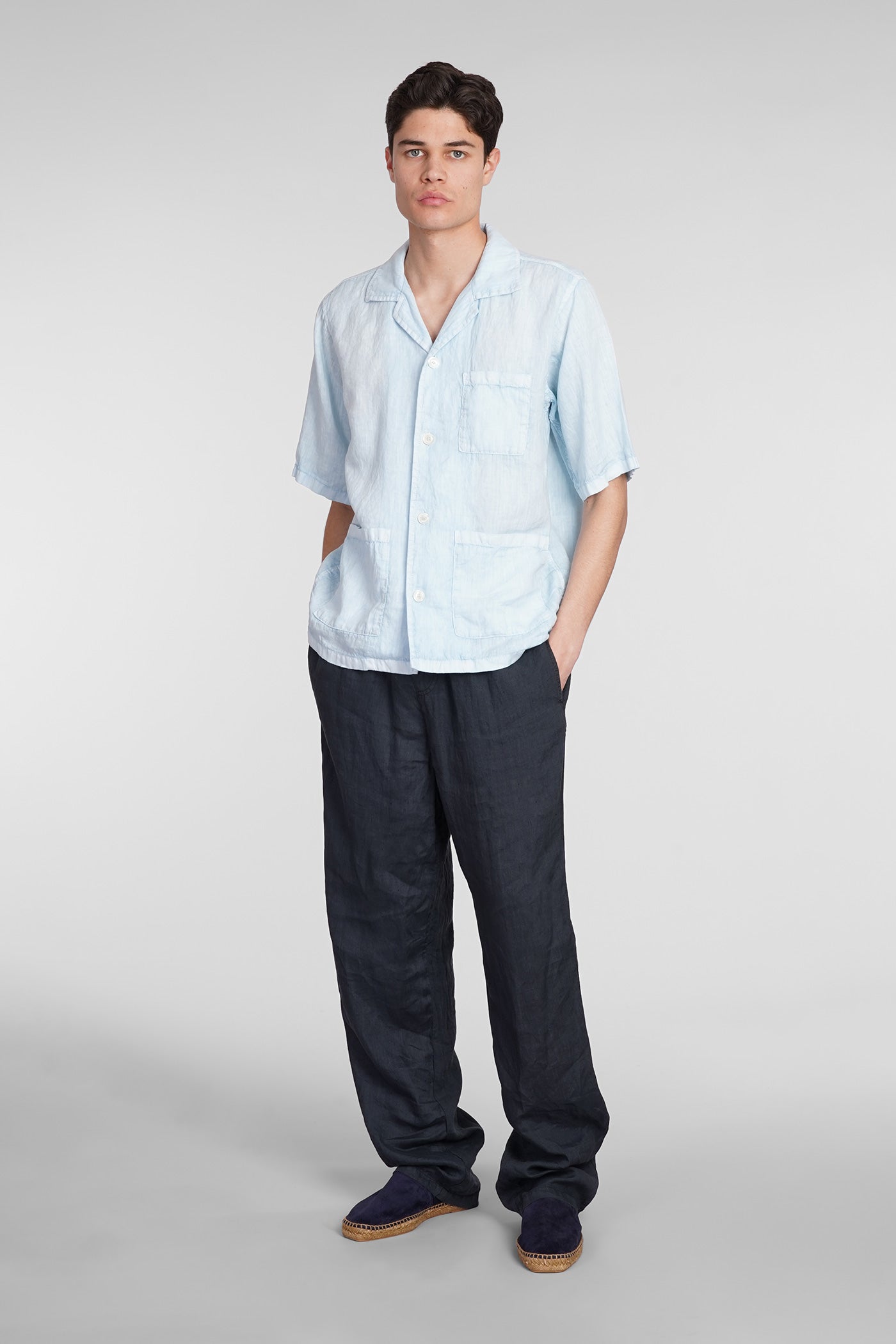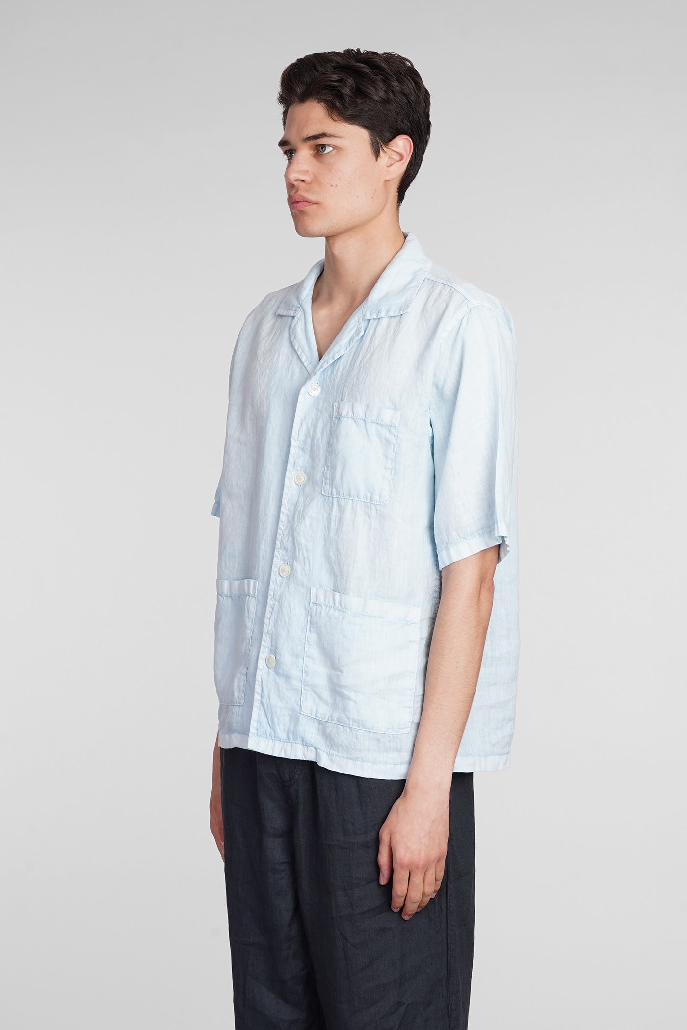 Camicia Ago Shirt in cyan linen
