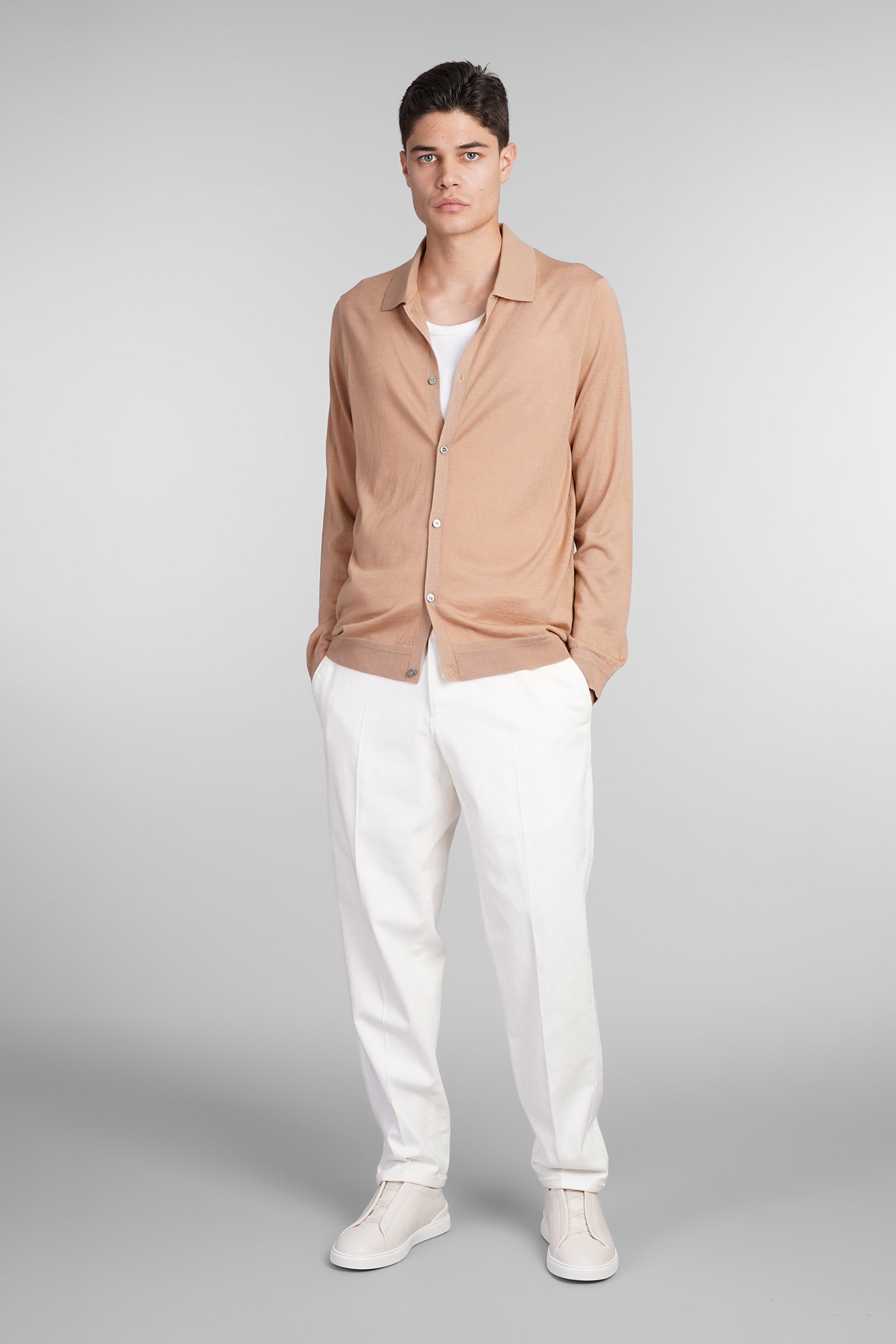 Cardigan in beige wool
