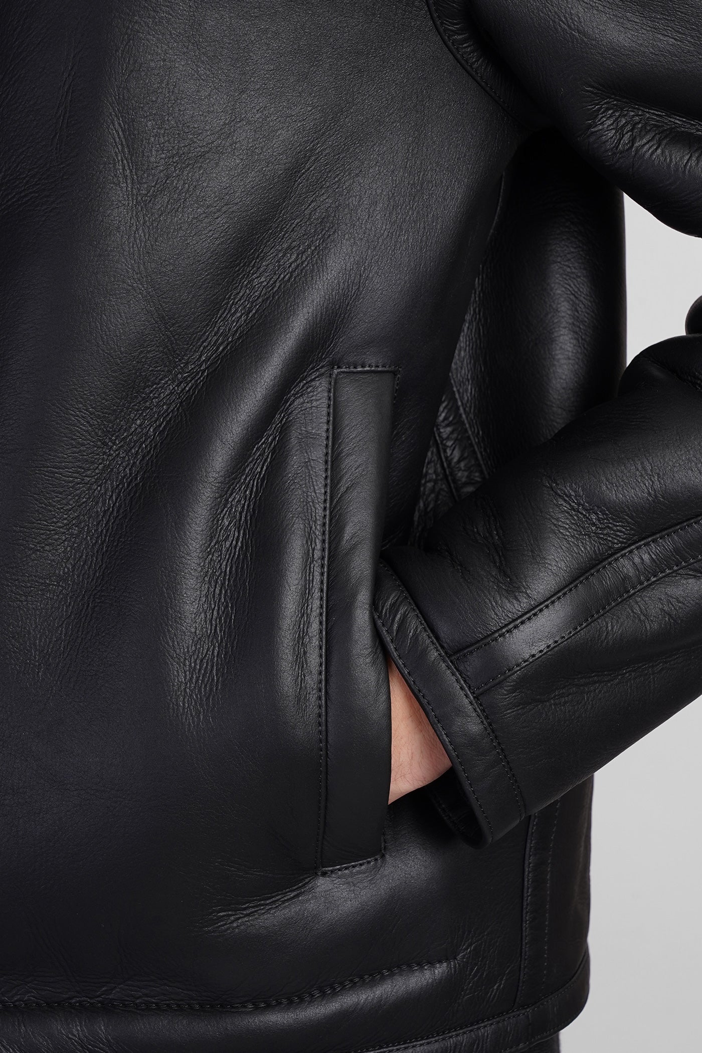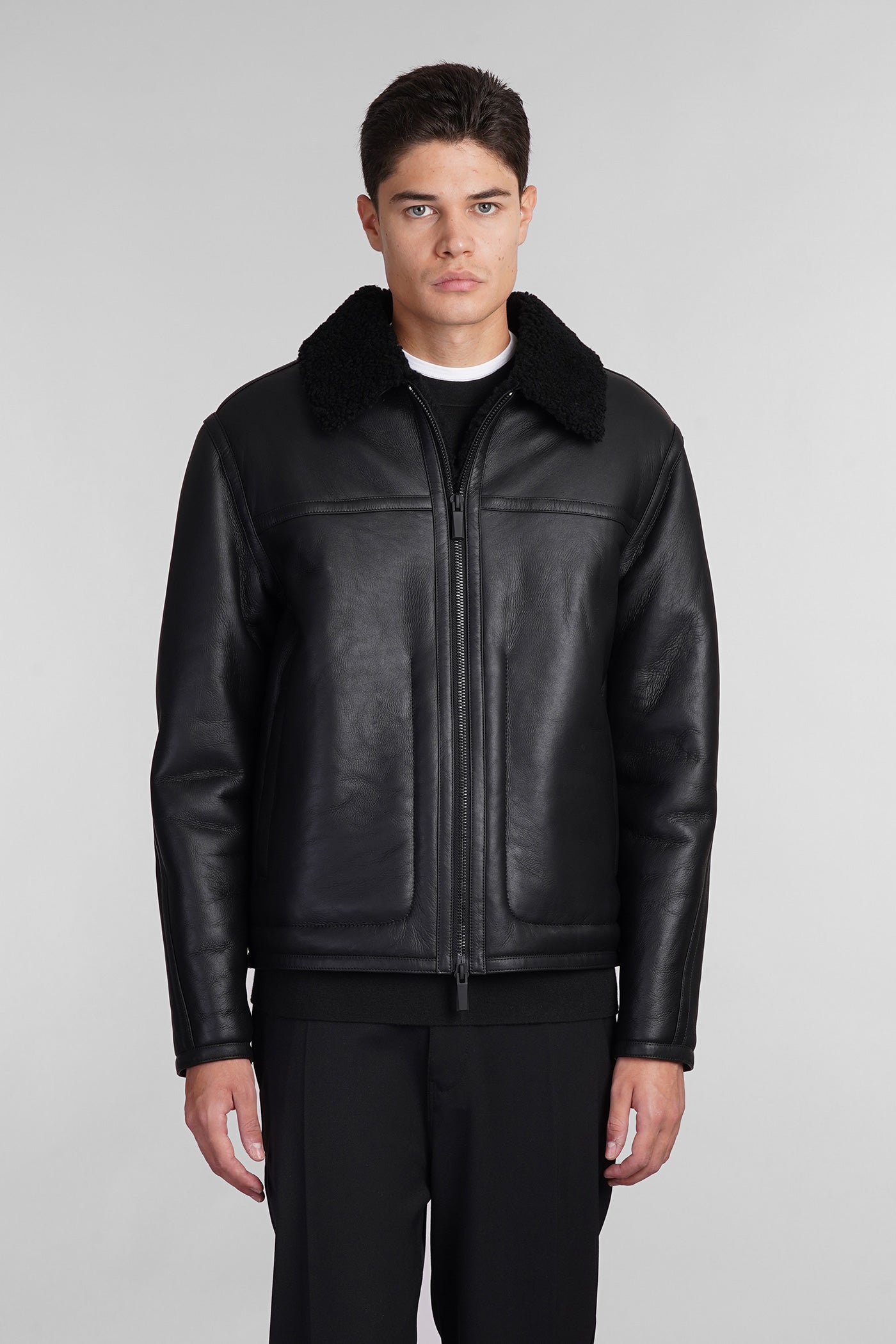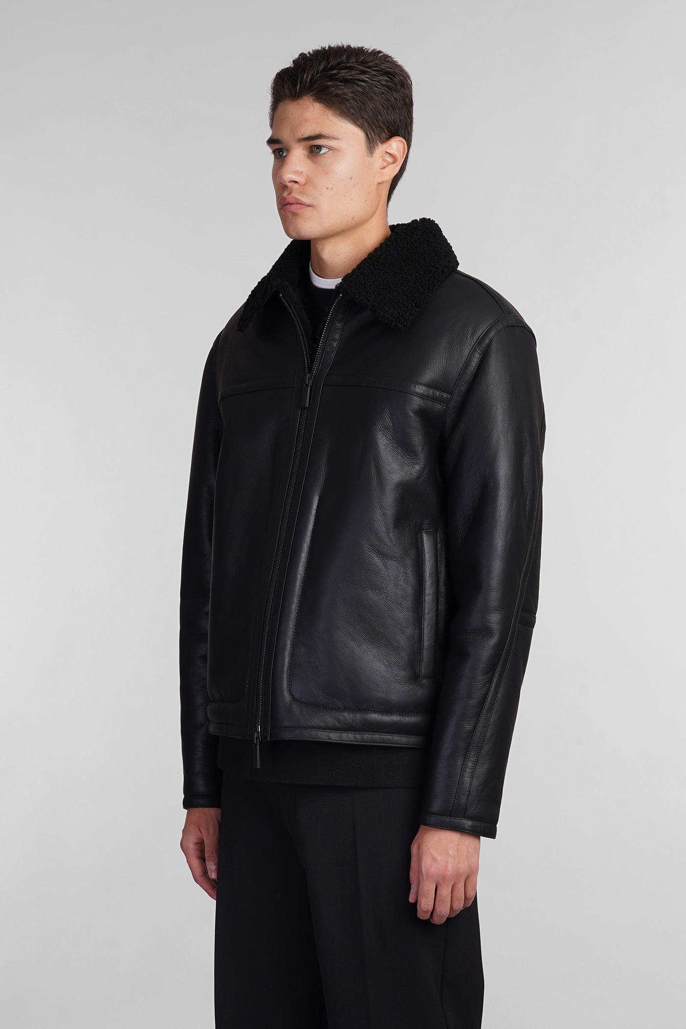 Shearling in black leather