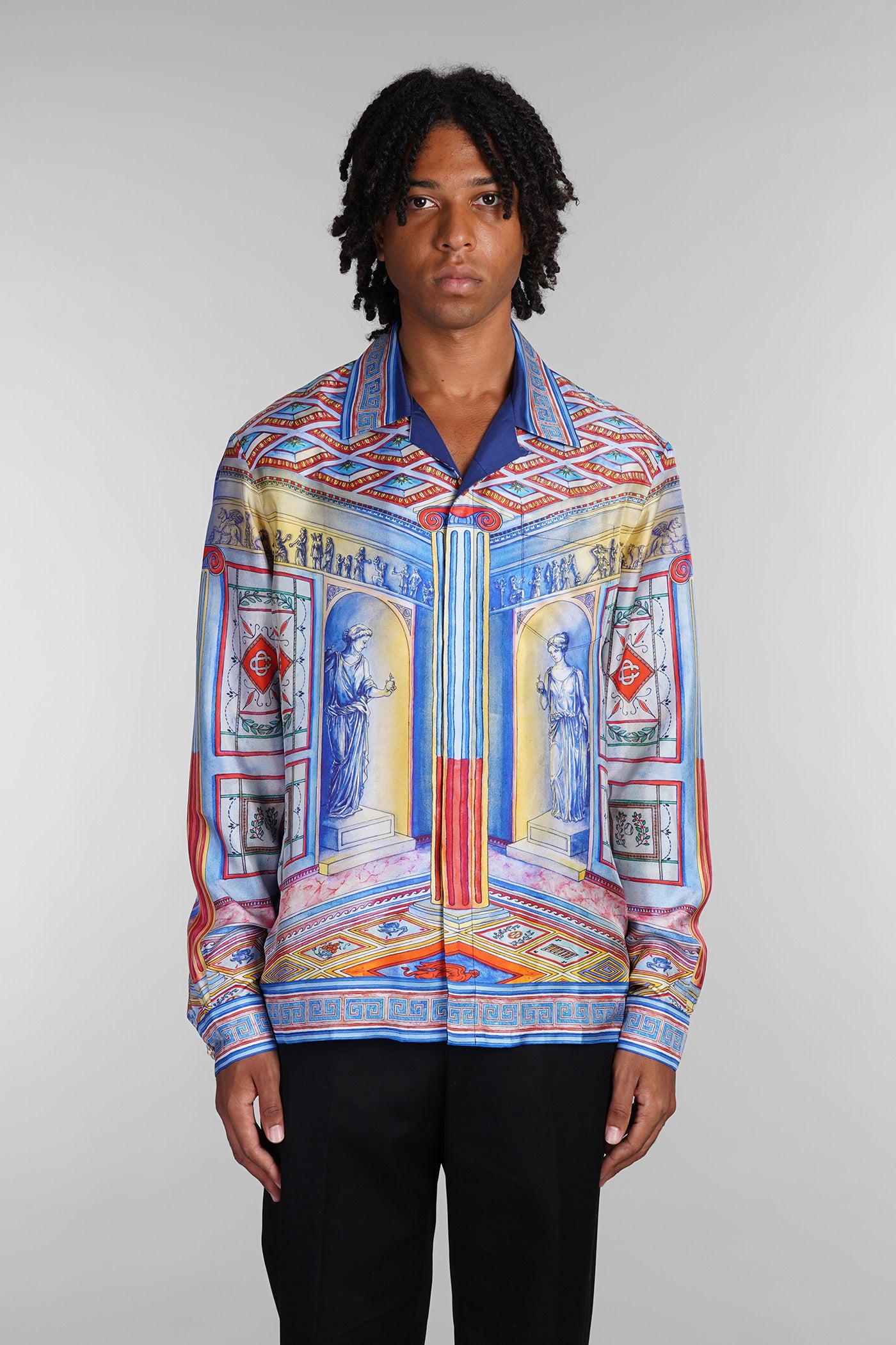 Shirt in blue silk