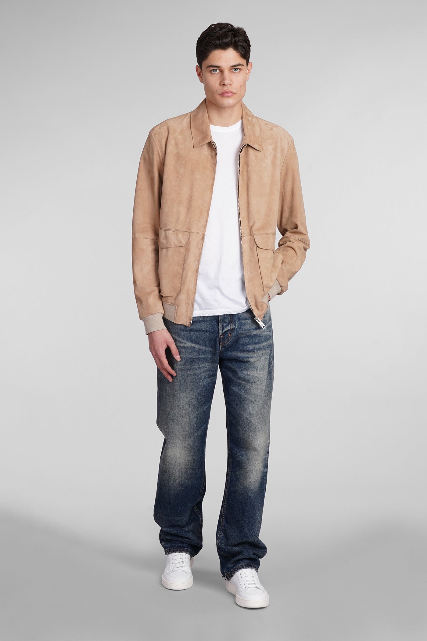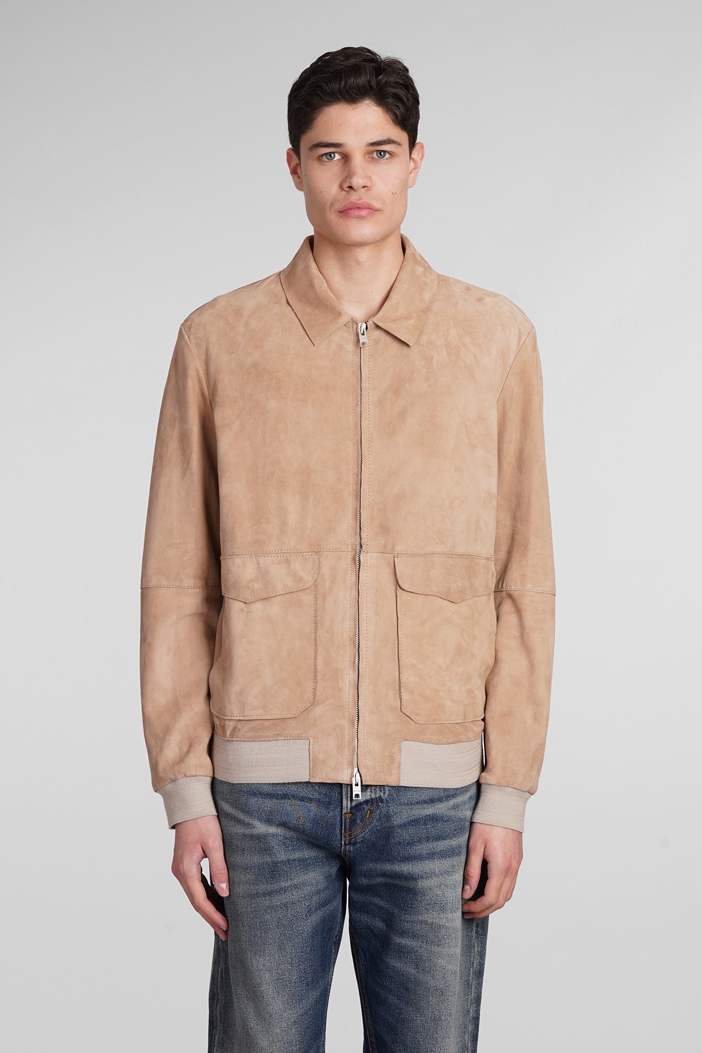 Leather jacket in beige leather